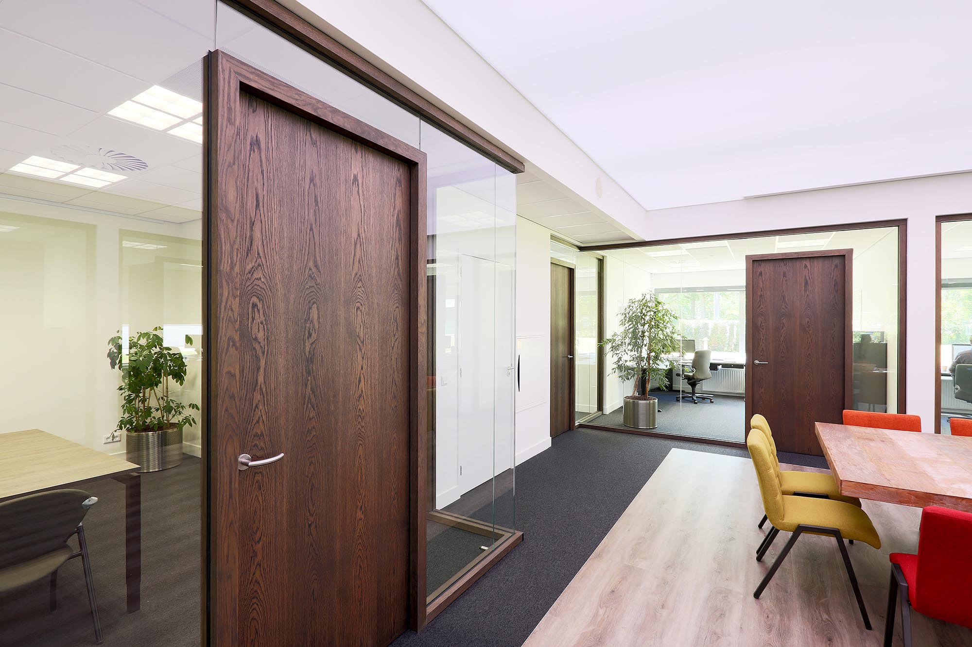 In de praktijk betekent dit dat sommige zones vragen om glazen kantoorwanden voor maximaal daglicht en zichtlijnen, terwijl andere ruimtes beter functioneren met dichte wanden met een hoge geluidsisolatiewaarde. Ook combinaties zijn mogelijk, waarbij glas en dichte panelen elkaar afwisselen om balans te creëren tussen openheid en rust. Door te werken met demontabele systeemwanden kan de indeling later worden aangepast, uitgebreid of verplaatst. Zo ontstaat een werkomgeving die niet alleen vandaag past bij de wensen van gebruikers en beheer, maar ook voorbereid is op toekomstige veranderingen.