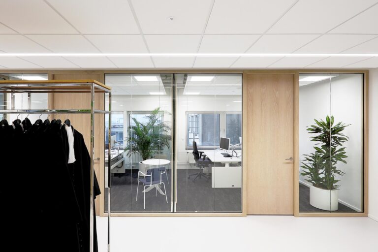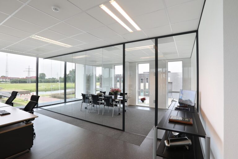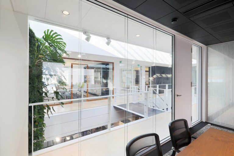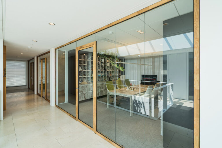 Wand-dikke glasdeur voor optimale geluidsisolatie.