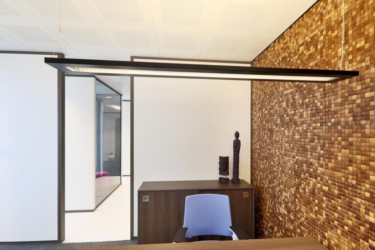 De IM 1000 VNM is een melamine systeemwand met nulvoeg en zwevend karakter, volledig demontabel en geschikt voor hergebruik.