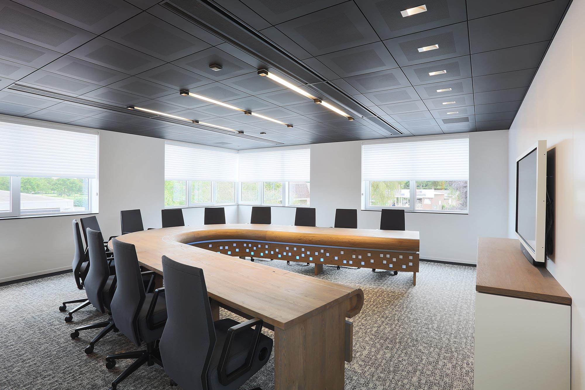 Een hightech design systeemplafond is onze metalen variant. Dit metalen systeemplafond geeft uw directiekamer direct een luxe uitstraling.