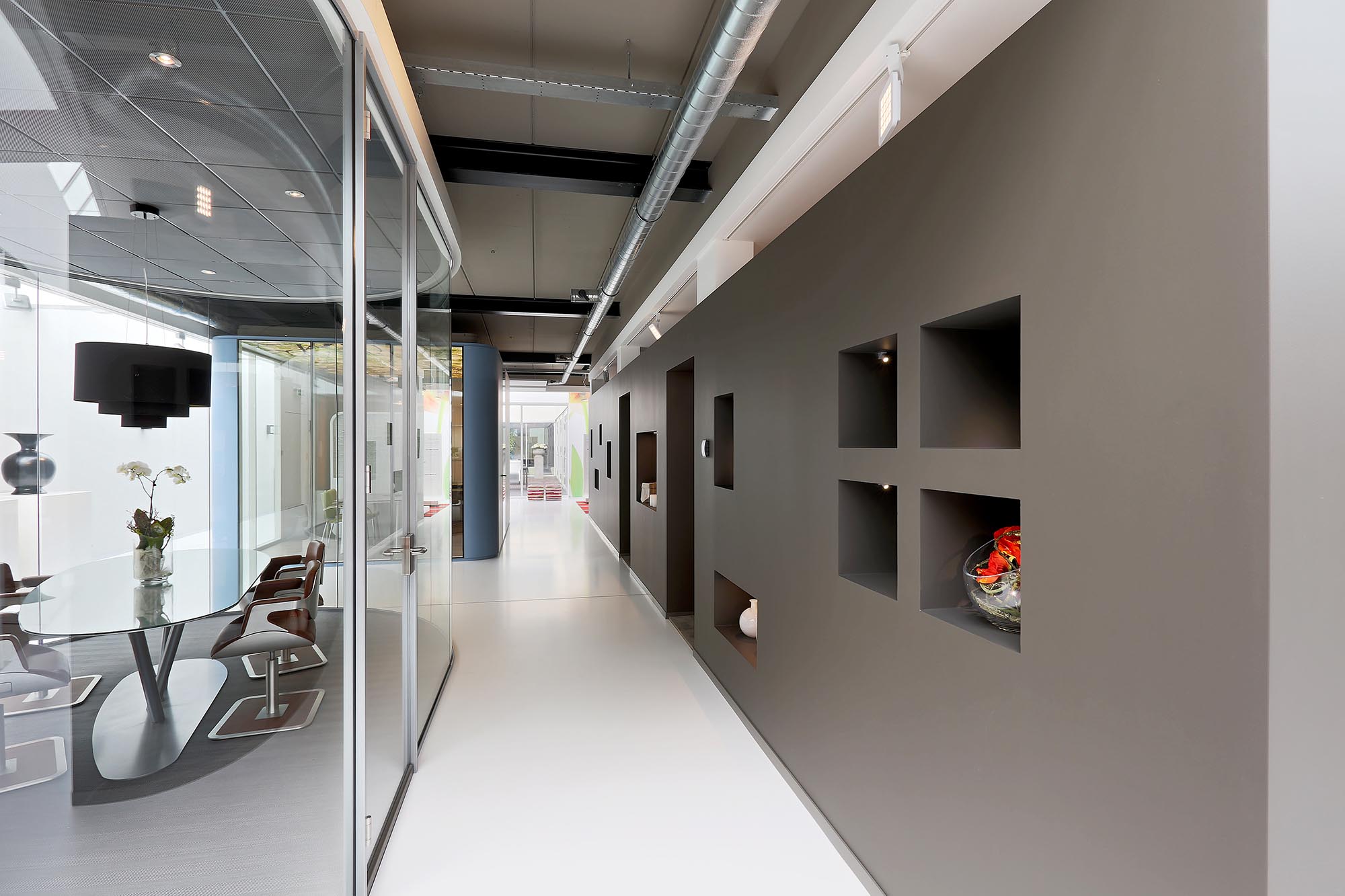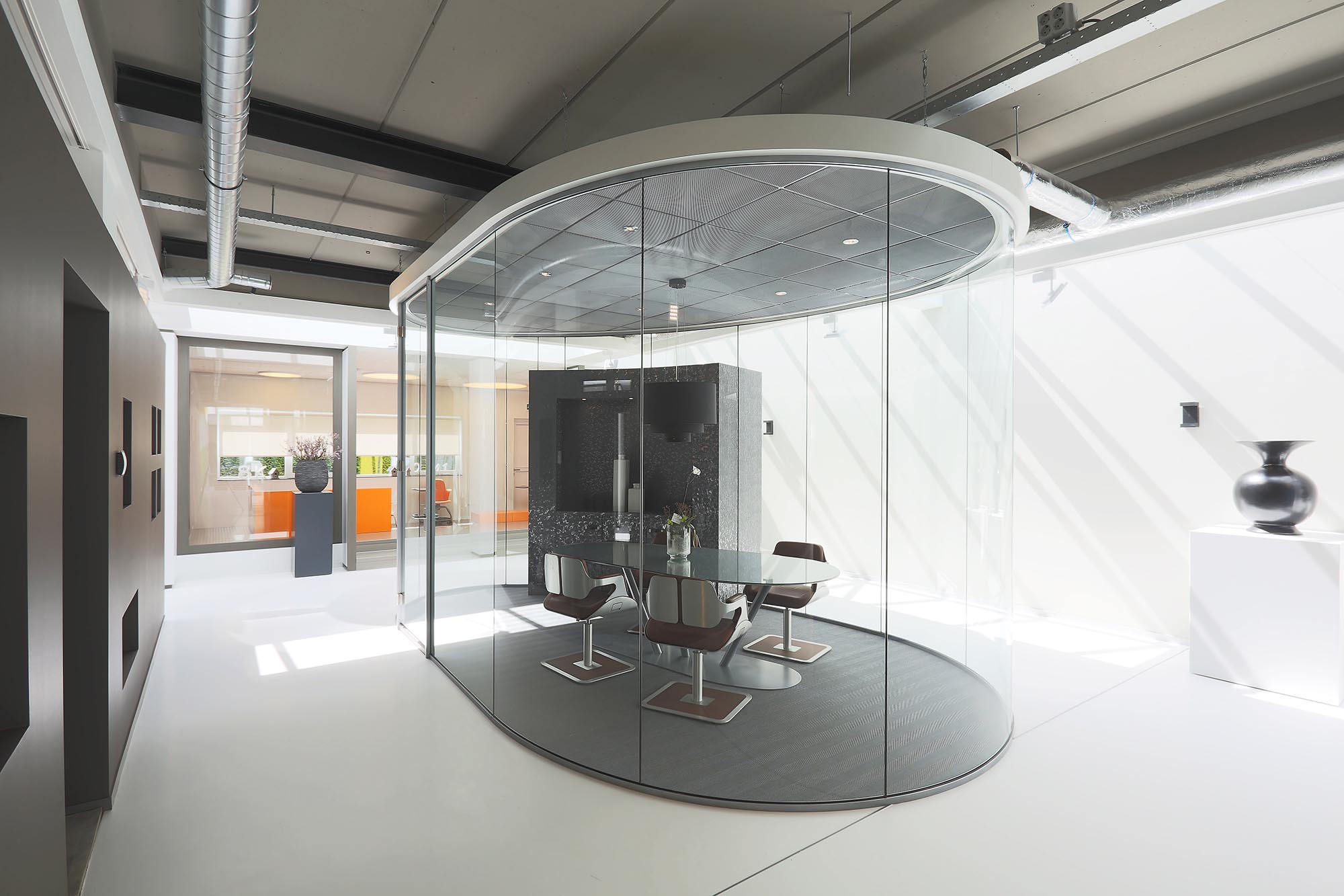 Zicht – Met een systeemwand van glas heeft u zicht op de ruimte erachter.