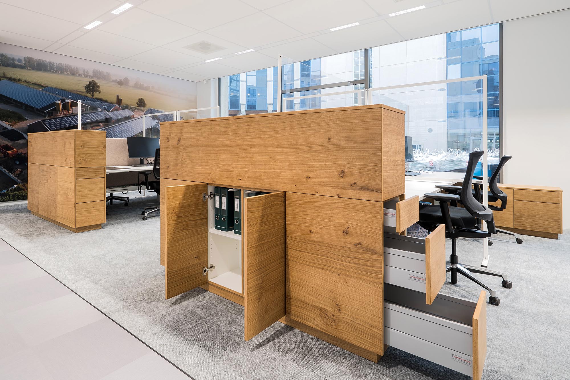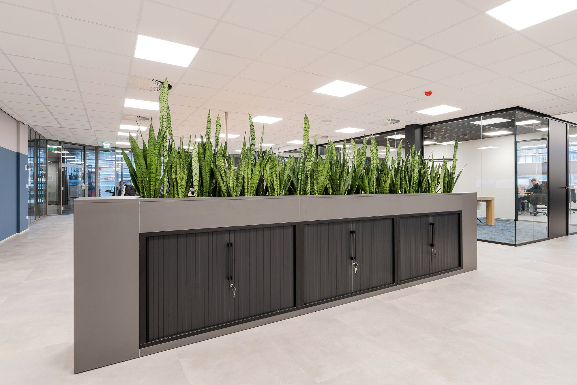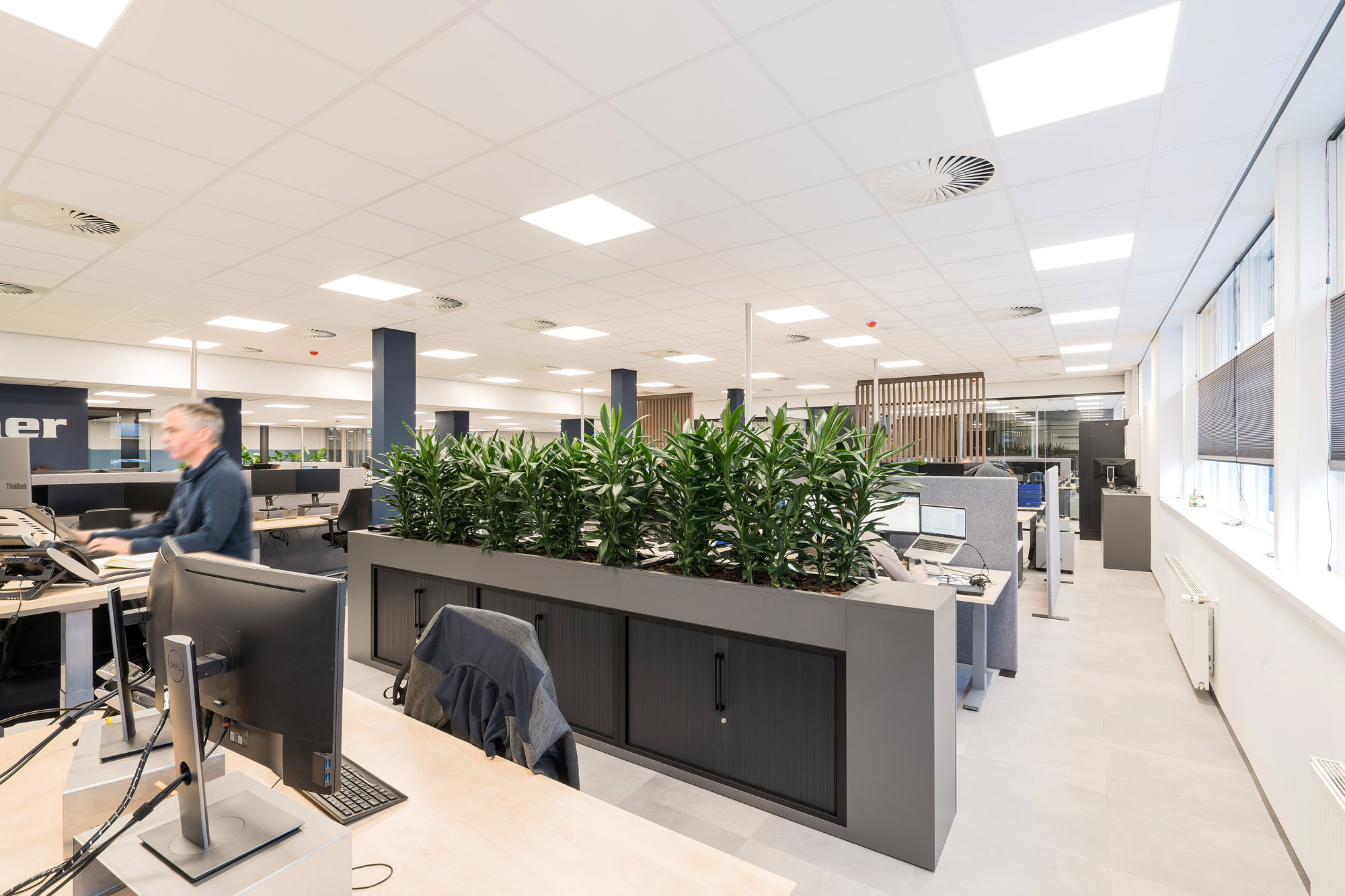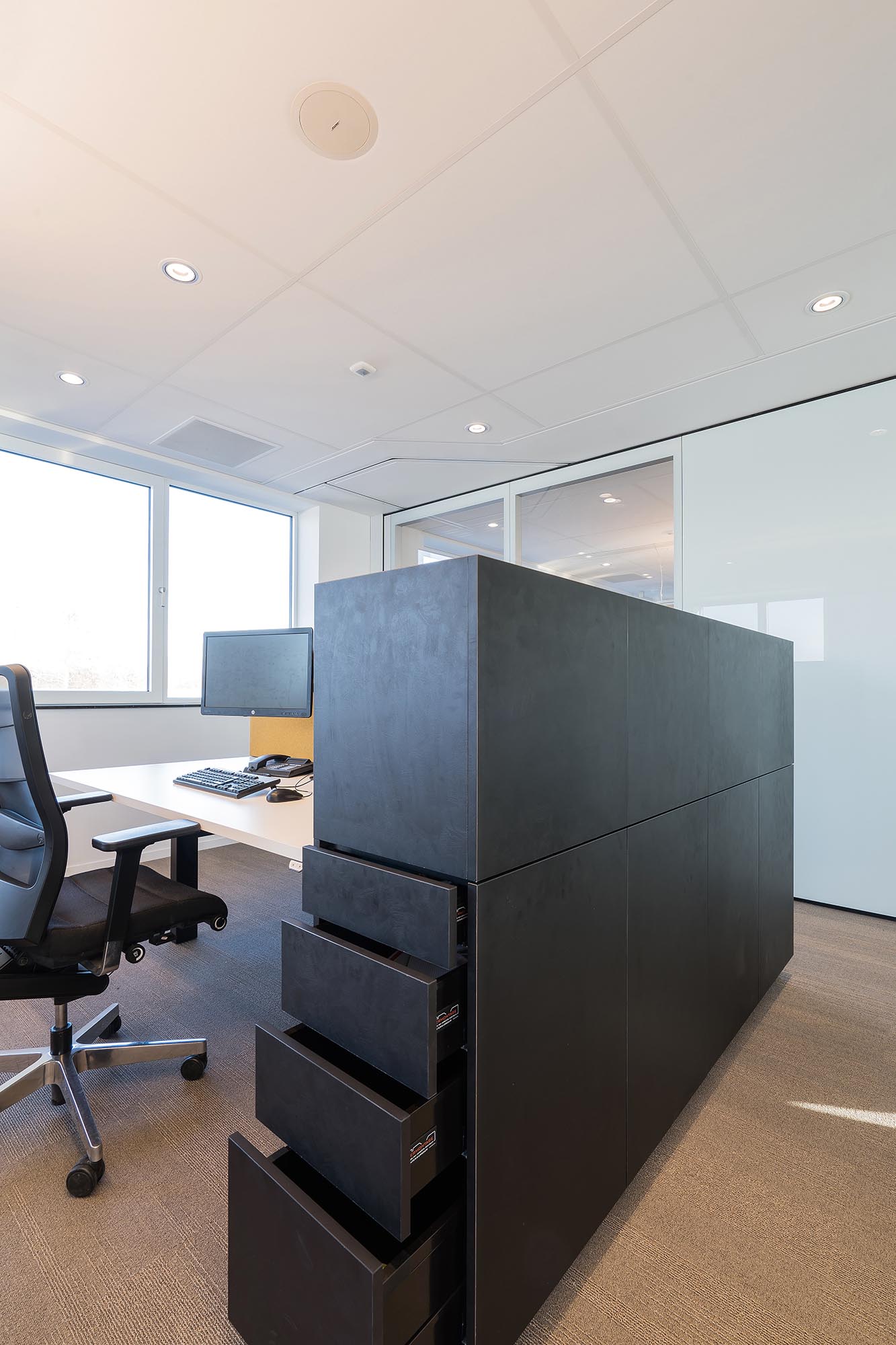 Met de Office Divider krijgt iedere werkplek maximale opbergruimte. Deze maatwerk kast dient tevens als afscherming tussen het looppad en de werkplek. Door de hoogte van 1300 mm is het makkelijk om een korte stand up-meeting te houden met een collega op de werkvloer.