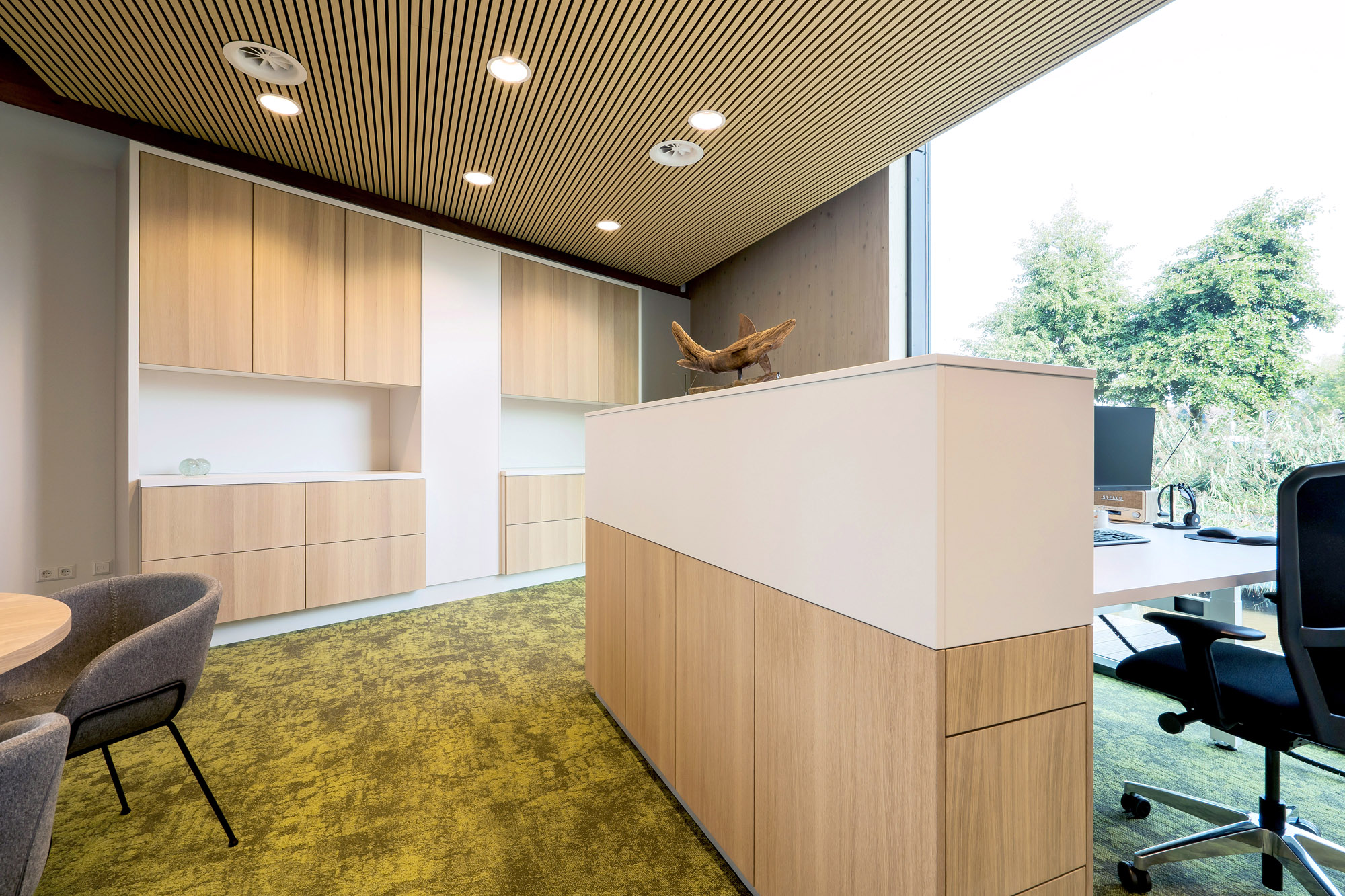 Maatwerk kast als afscherming tussen werkplek en looppad