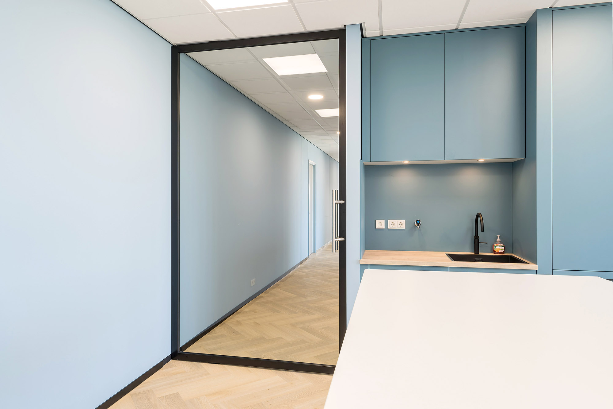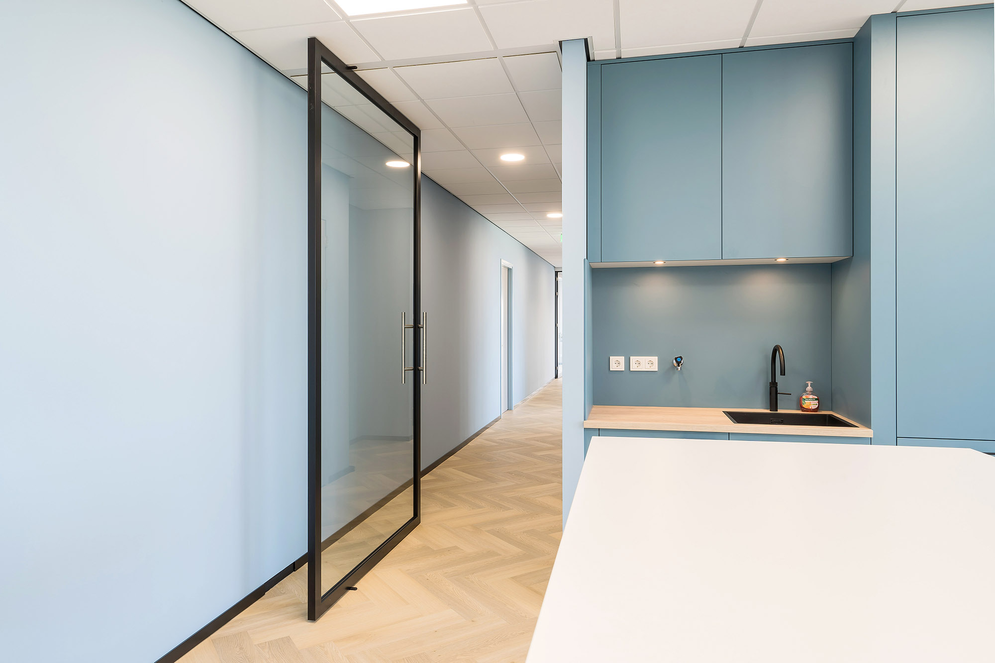 Er is veel vraag naar licht en helderheid op de werkplek. Transparantie wordt vaak gerealiseerd door middel van glaswanden. Door te kiezen voor een slanke kaderdeur optimaliseert u het glasoppervlak met behoud van een stevige en elegante deur.