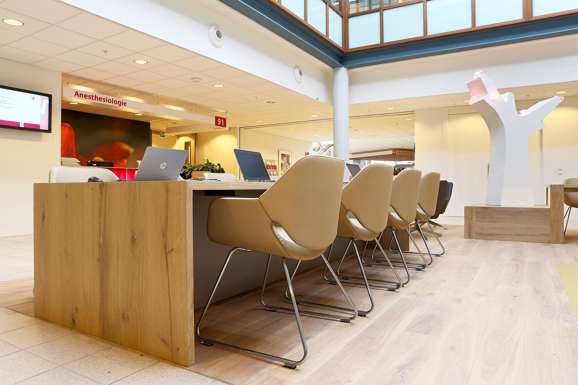 Het welzijn van medewerkers is een belangrijk item. Een goede werkplek en actieve houding draagt hieraan bij. Zo produceren wij in hoogte verstelbare bureau’s waar men zowel zittend als staan kan werken. Een tafelblad draagt ook bij aan de look van de afdeling. Er staan immers vele bureautafels in uw kantoortuin. Laat u inspireren door onze voorbeelden en maak een afspraak om de verschillende soorten materialen te beoordelen.