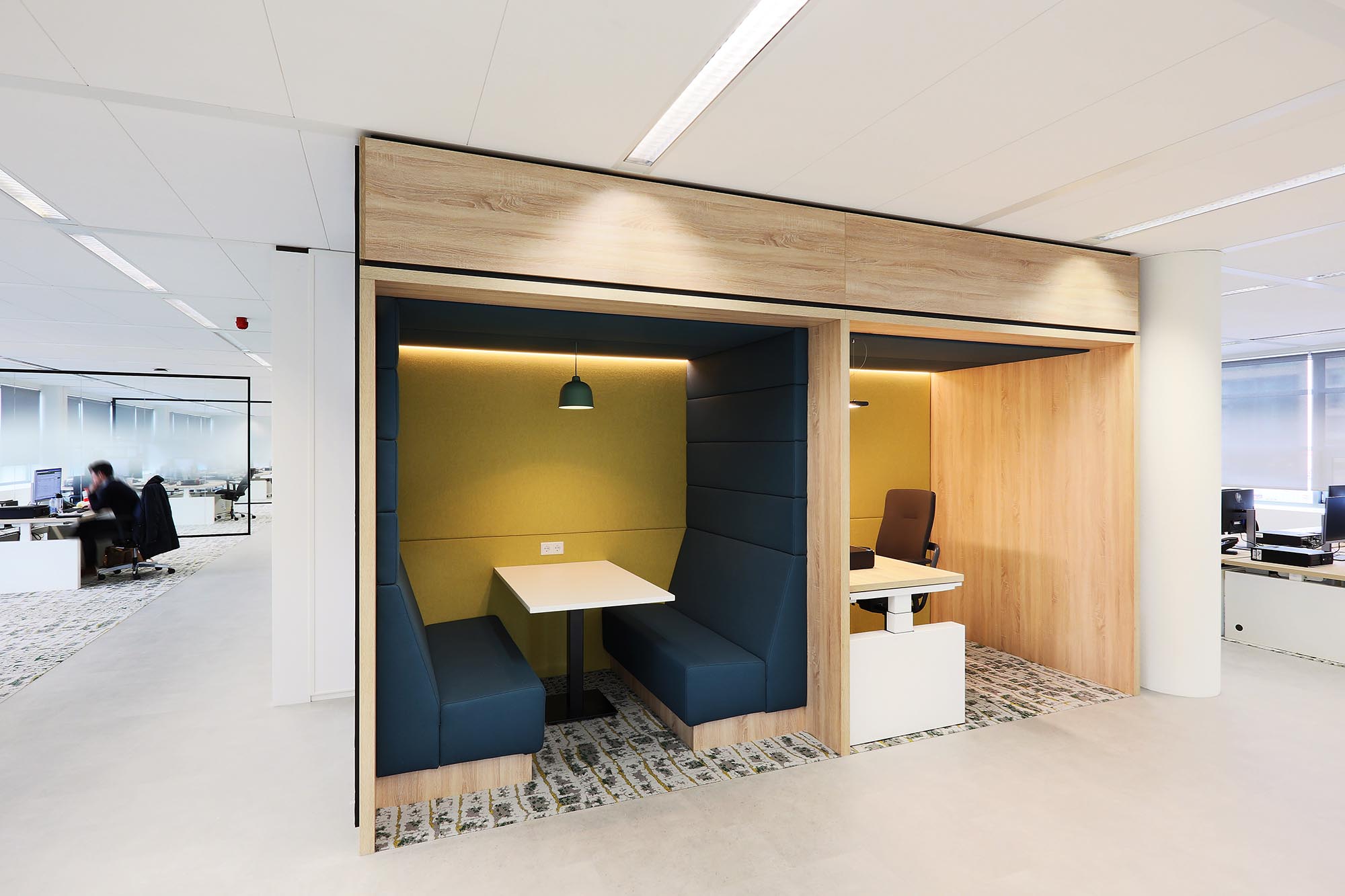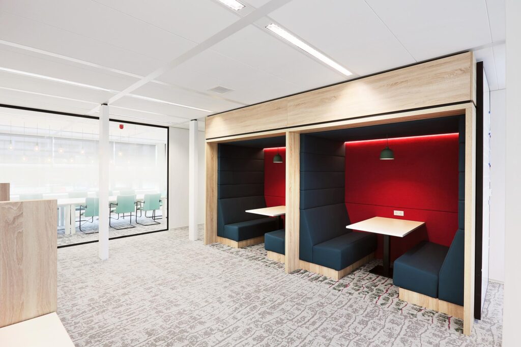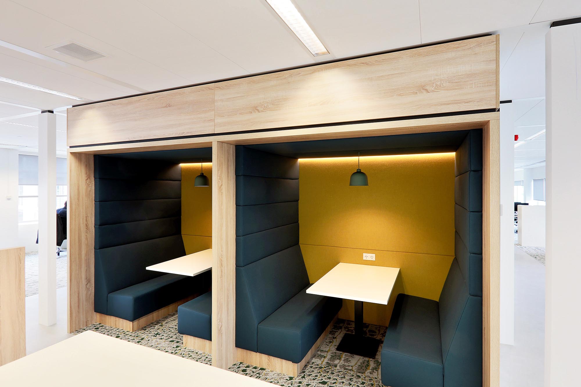 Ook voor een snel overleg zijn treinzits, of treincoupés, een gewilde werkplek. Op de grote, open werkvloer heb je met een treinzit de mogelijkheid om te werken in een open ruimte, maar met extra privacy.