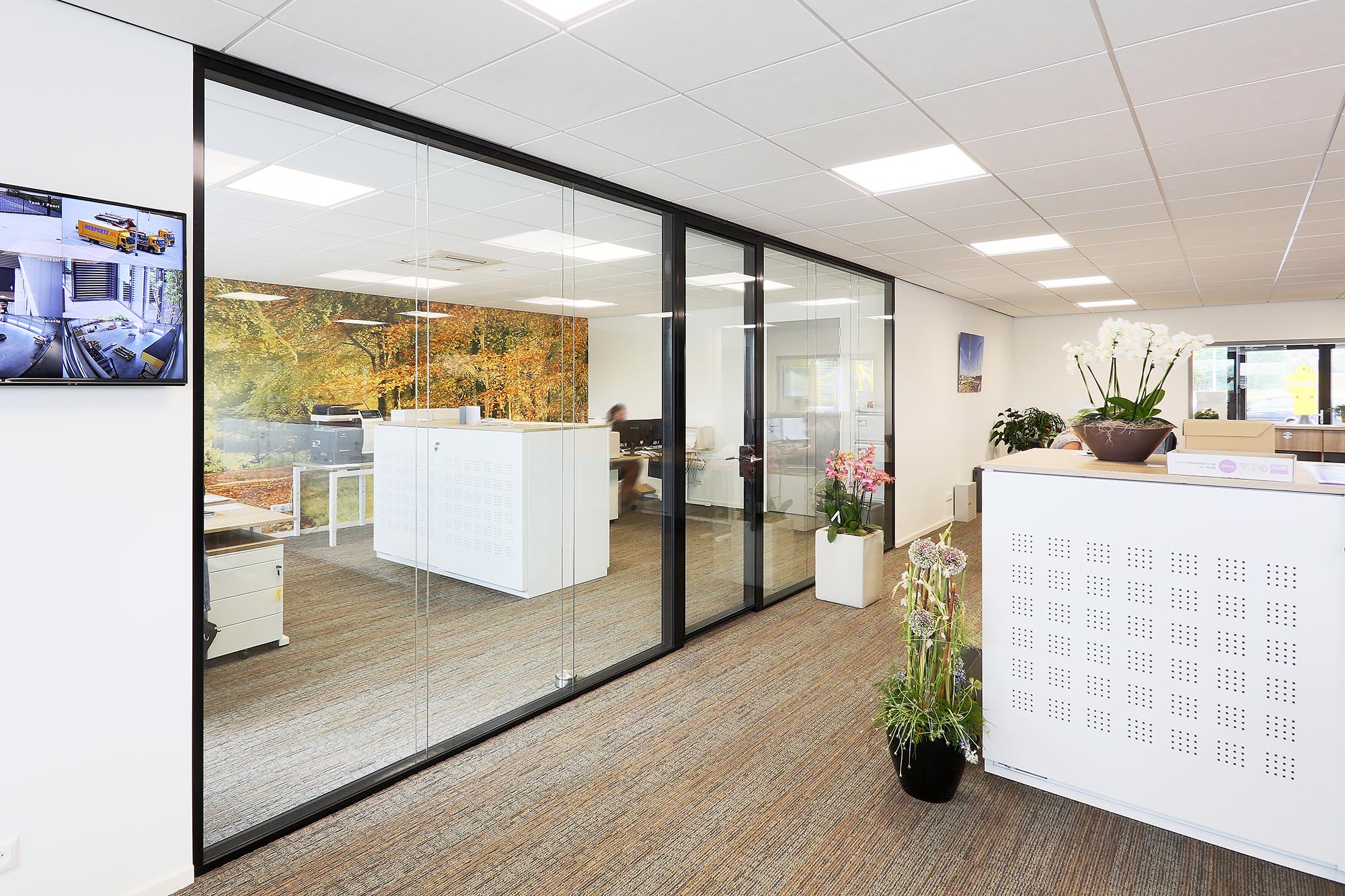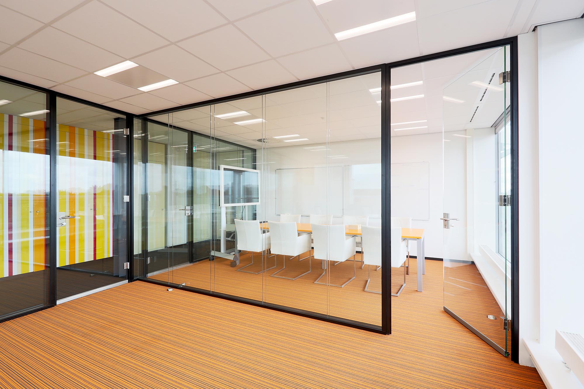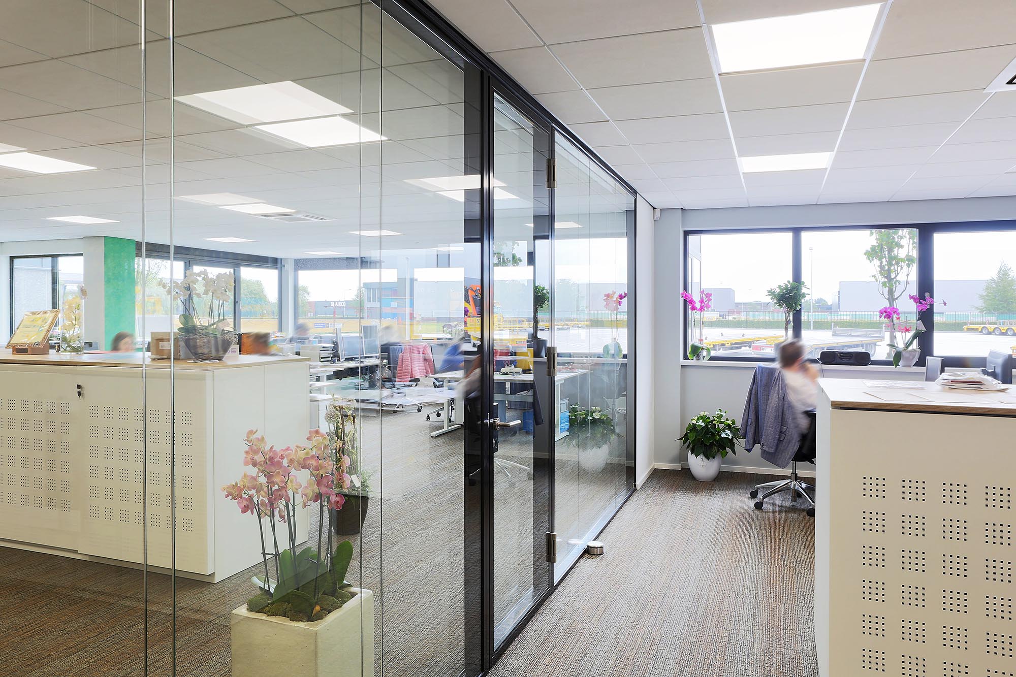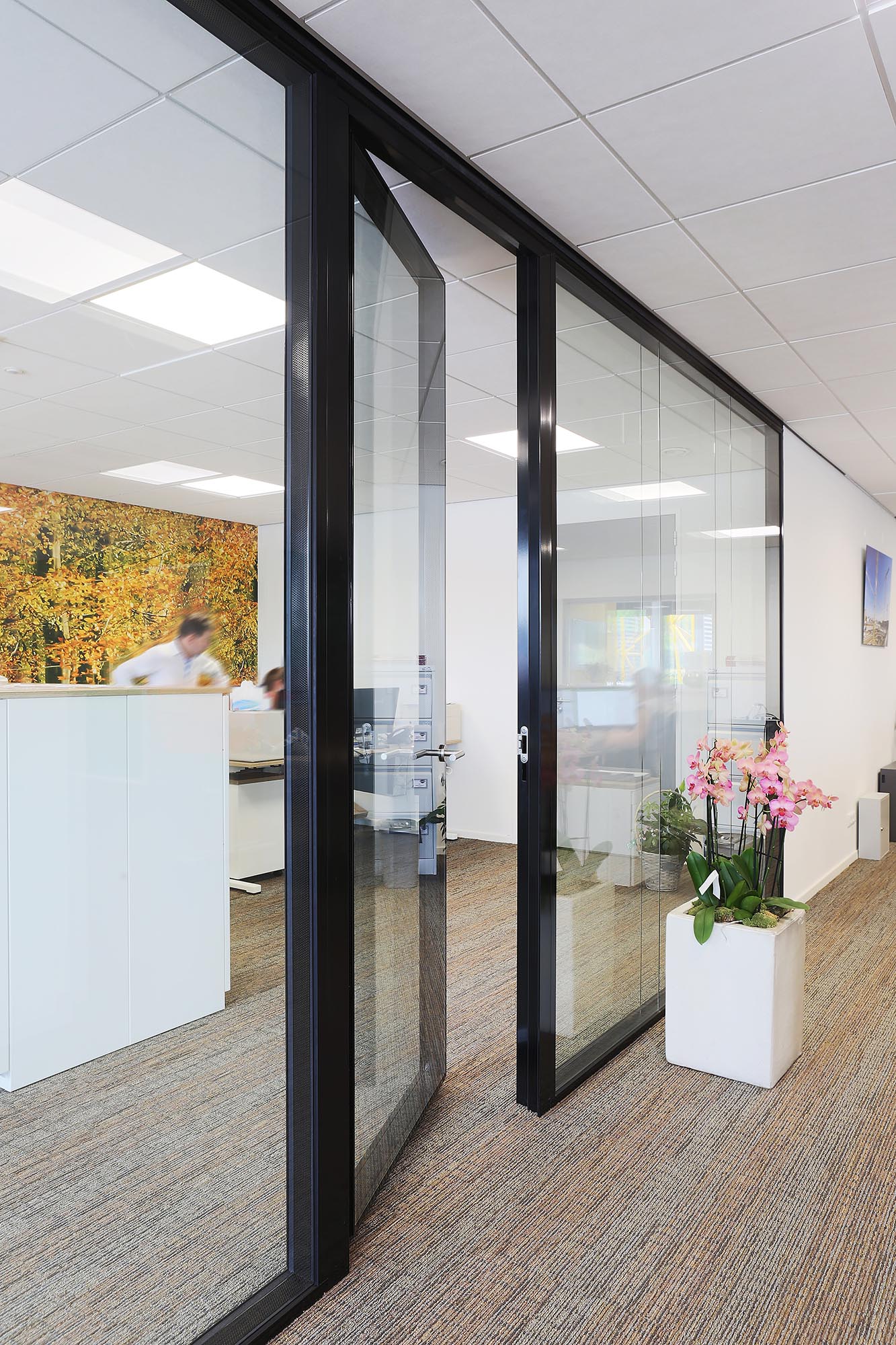 Dubbelglas systeemwand op kantoor