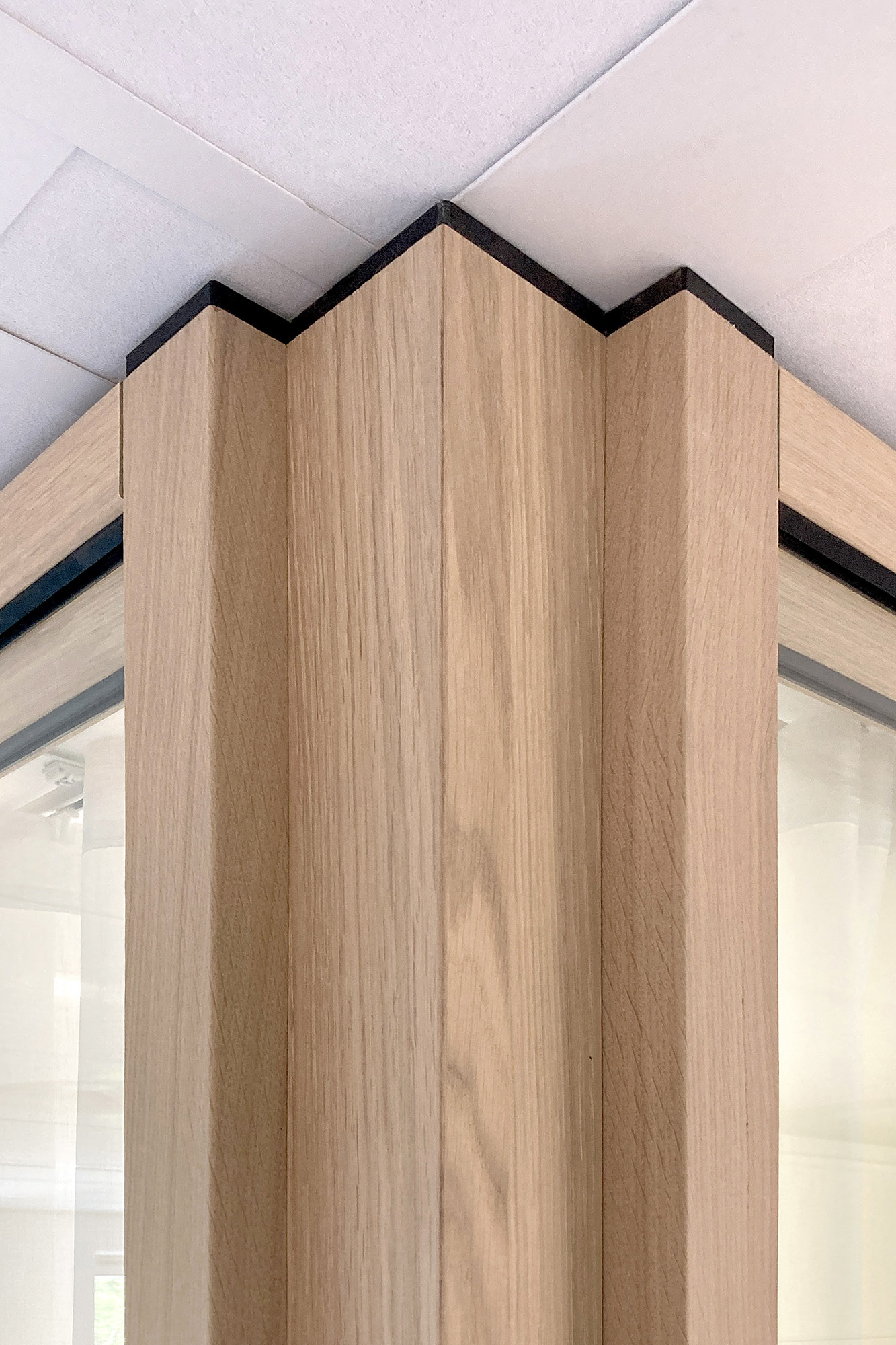 Warmte: de massief eiken profielen stralen warmte uit en versterken het gevoel van duurzaamheid.