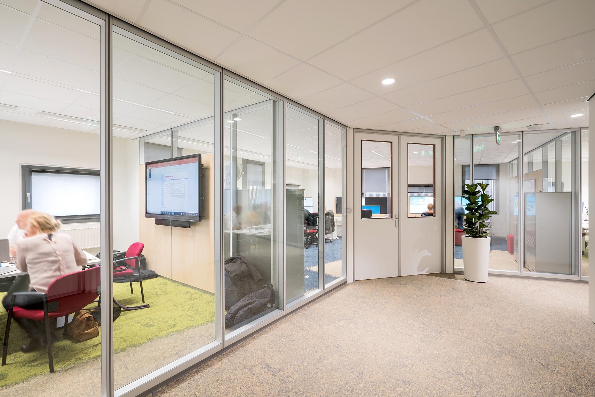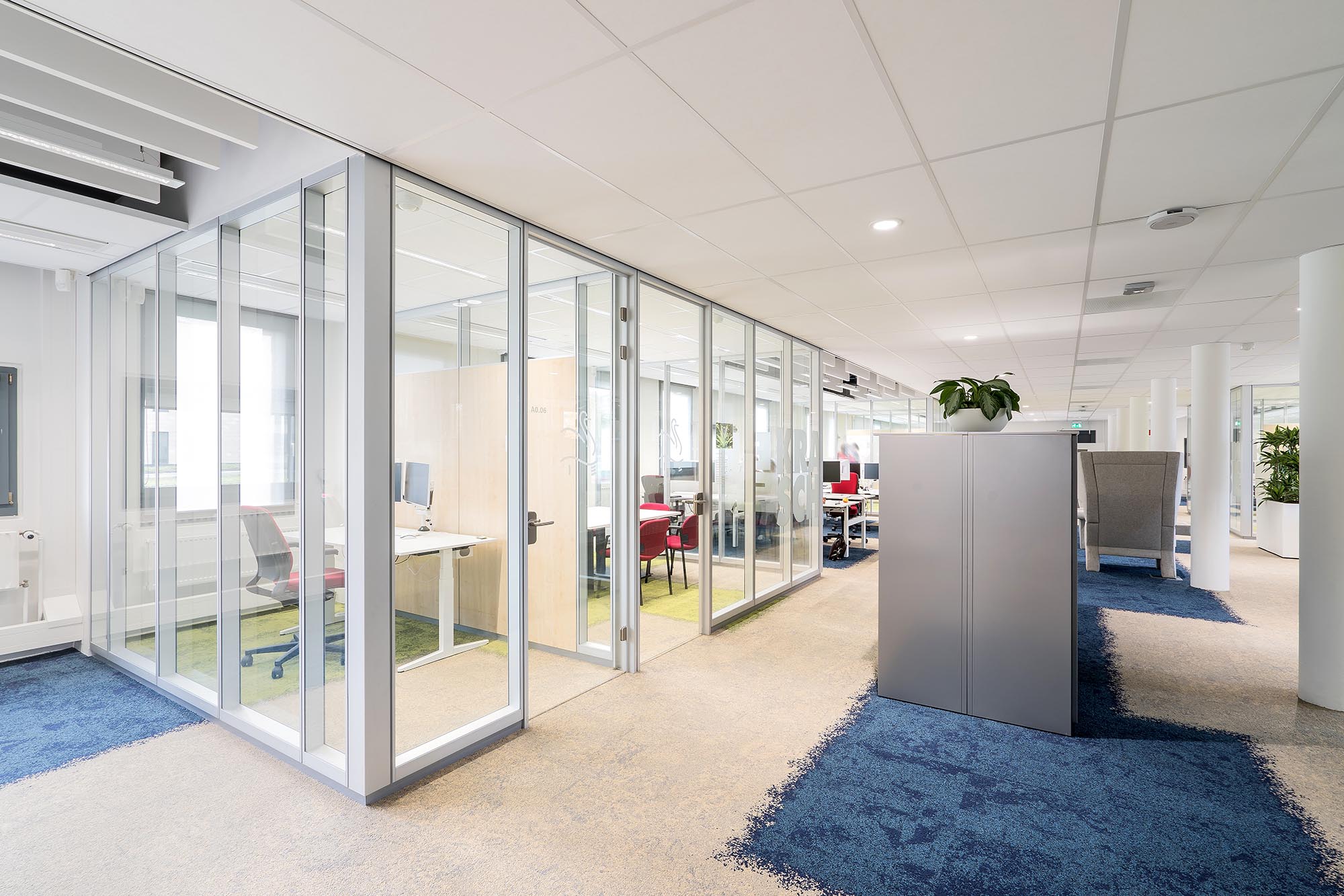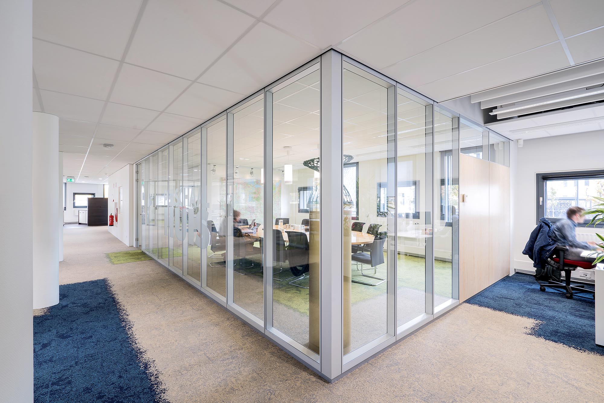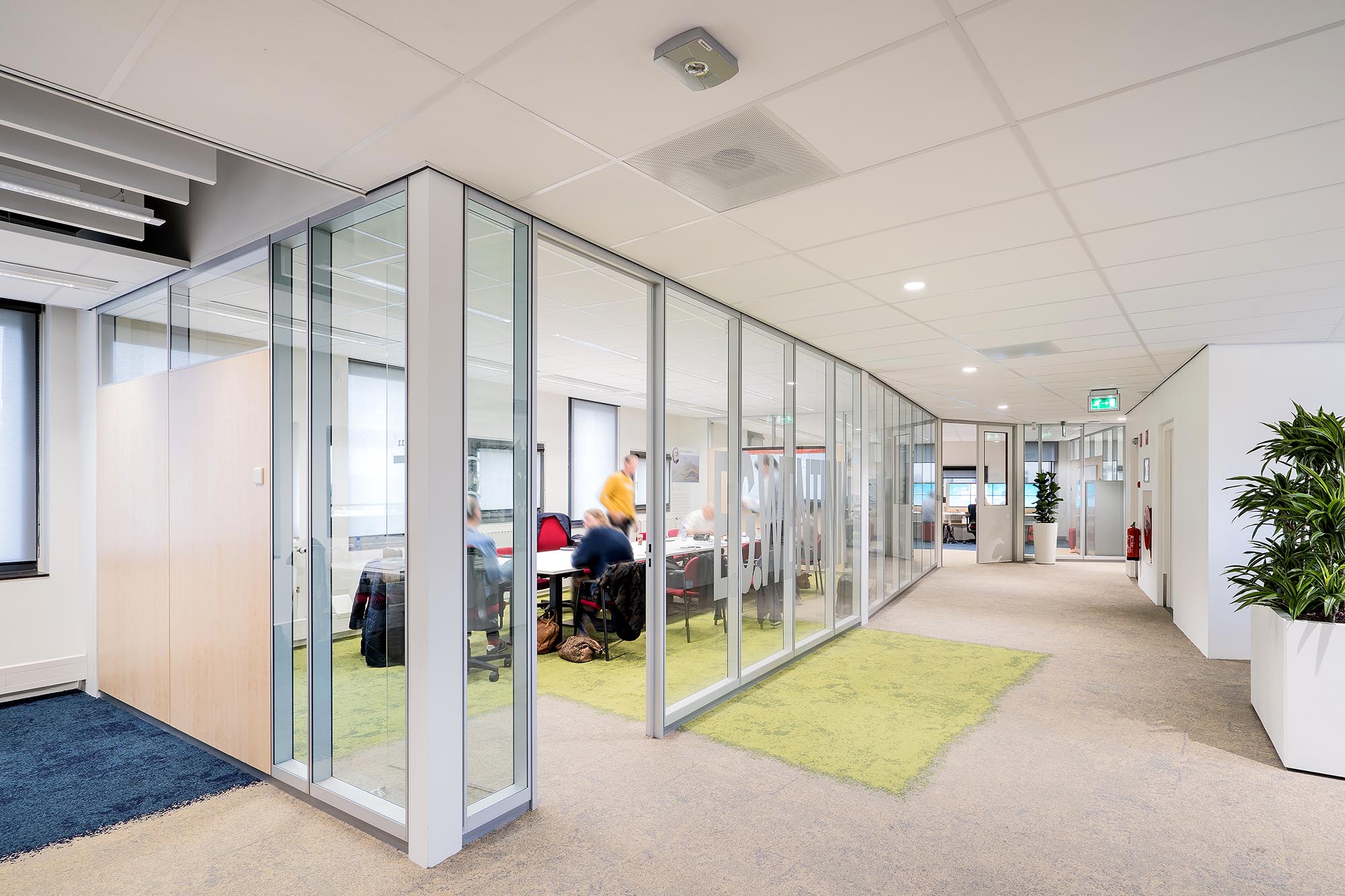 Met deze bestaande systeemwanden is er een indeling gerealiseerd die overeen komt met de gevraagde uitstraling van het waterschap. Om met de maatvoering goed uit te komen is een gedeelte van de systeemwanden vermaakt in onze eigen productielijnen. Zo is Waterschap HDSR, net als het Waterschapshuis in Lelystad, een prachtig voorbeeld van het hergebruik van bestaande systeemwanden.