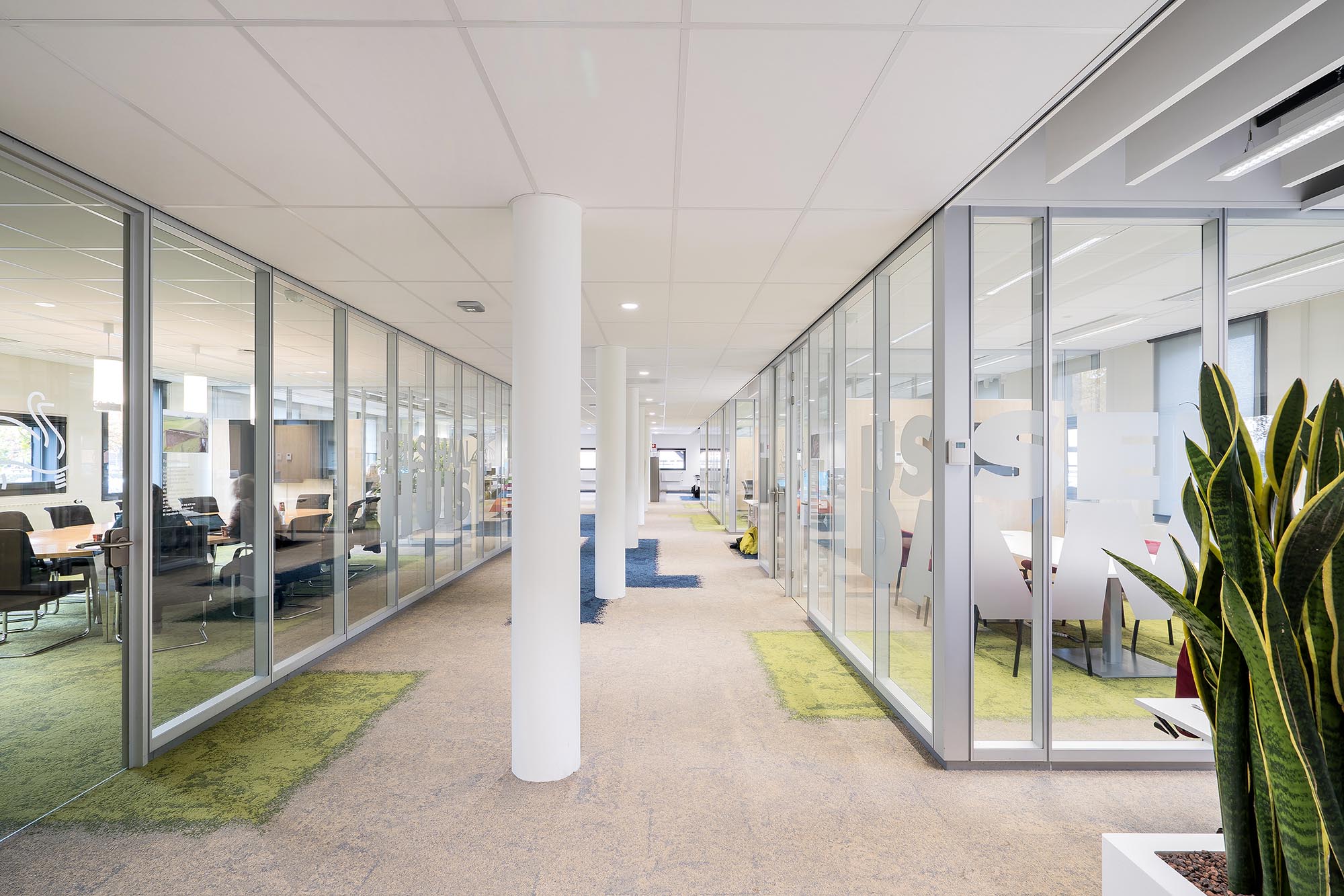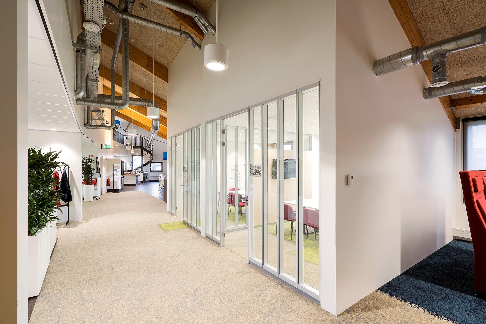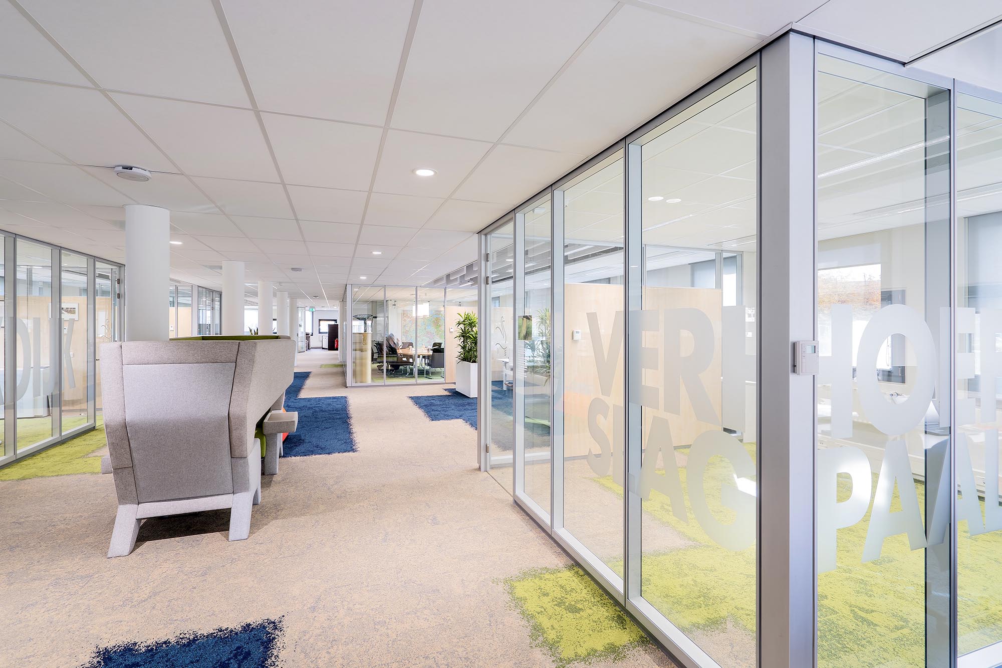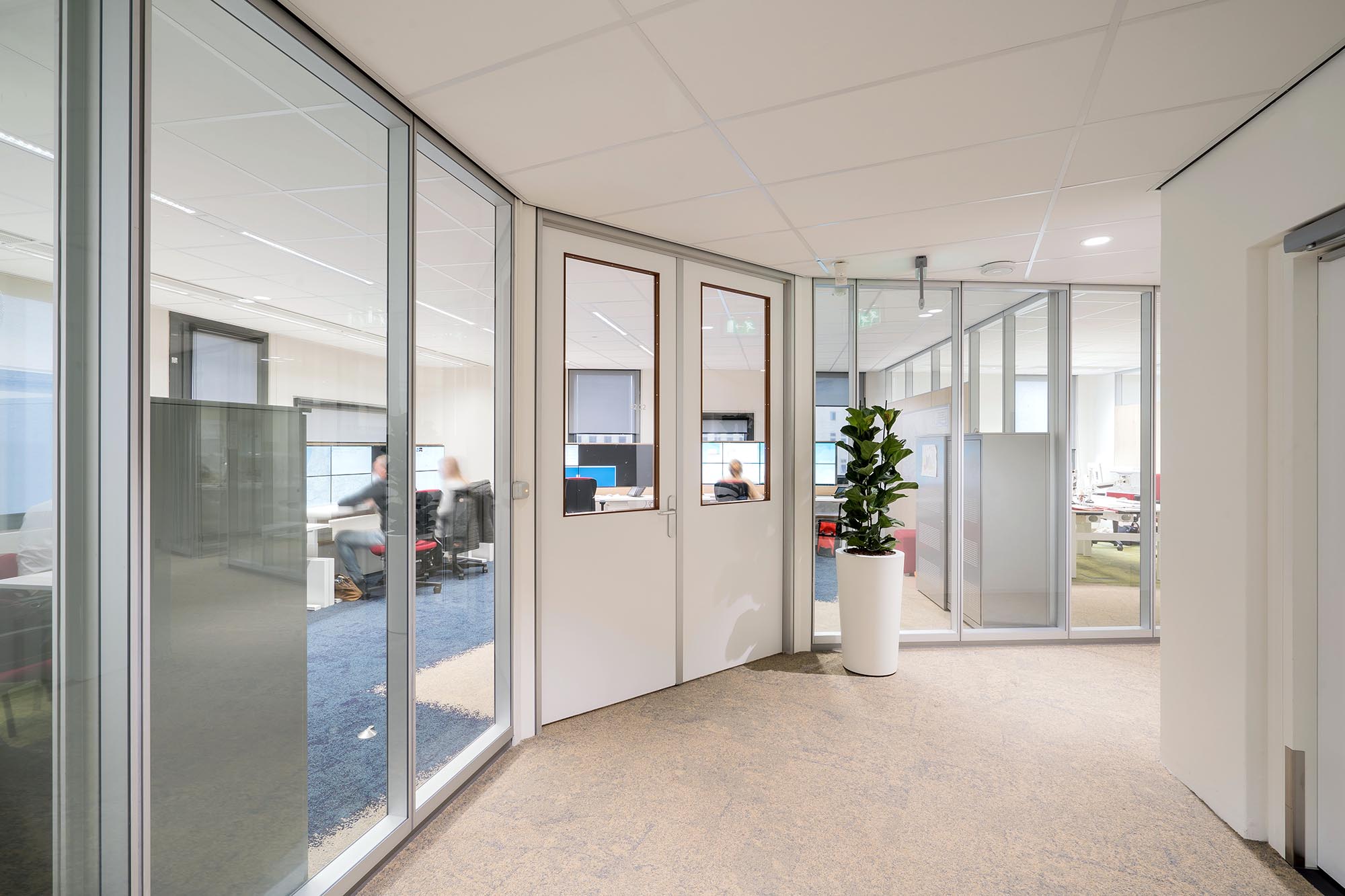 Met deze bestaande systeemwanden is er een indeling gerealiseerd die overeen komt met de gevraagde uitstraling van het waterschap. Om met de maatvoering goed uit te komen is een gedeelte van de systeemwanden vermaakt in onze eigen productielijnen. Zo is Waterschap HDSR, net als het Waterschapshuis in Lelystad, een prachtig voorbeeld van het hergebruik van bestaande systeemwanden.