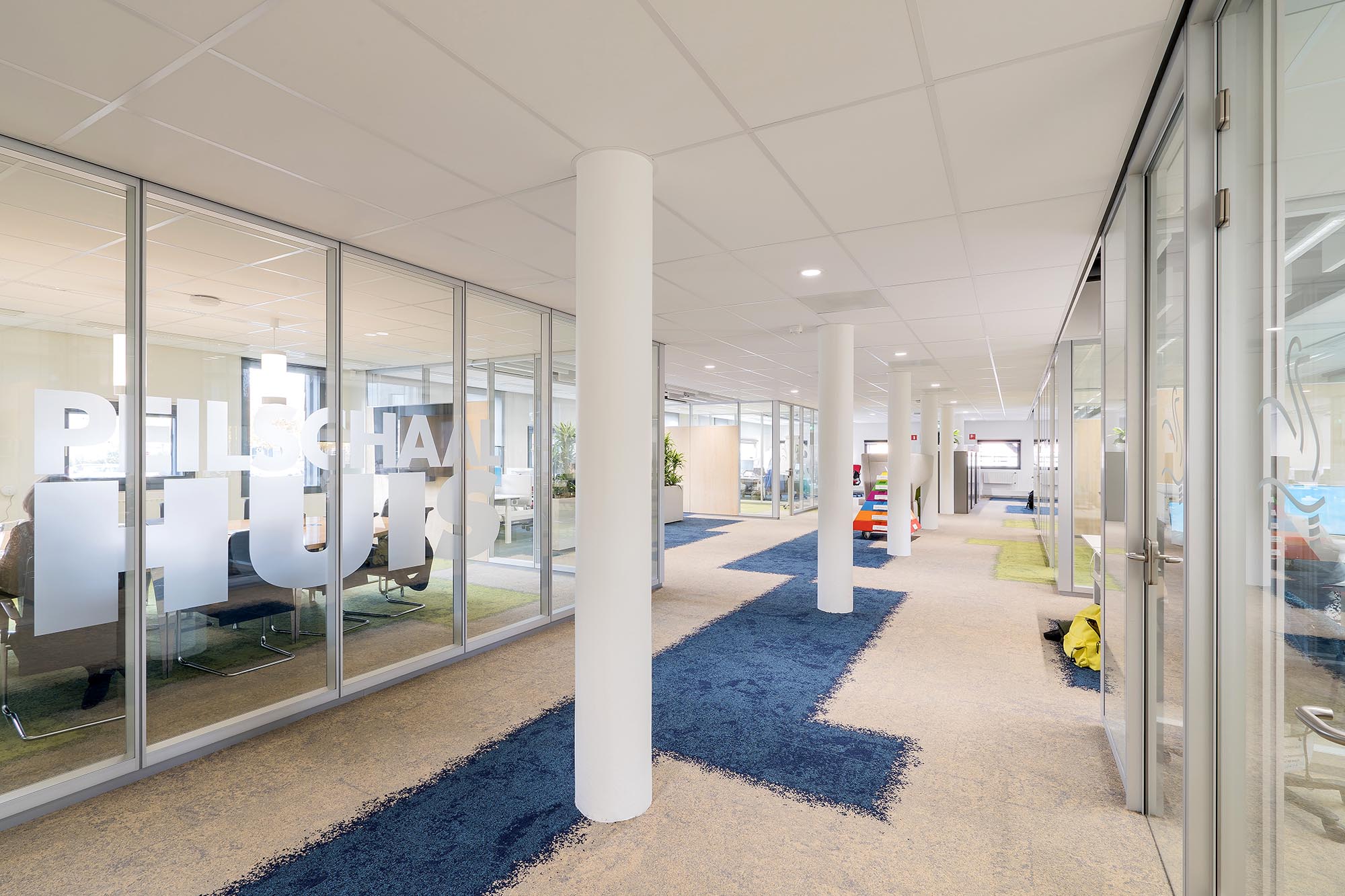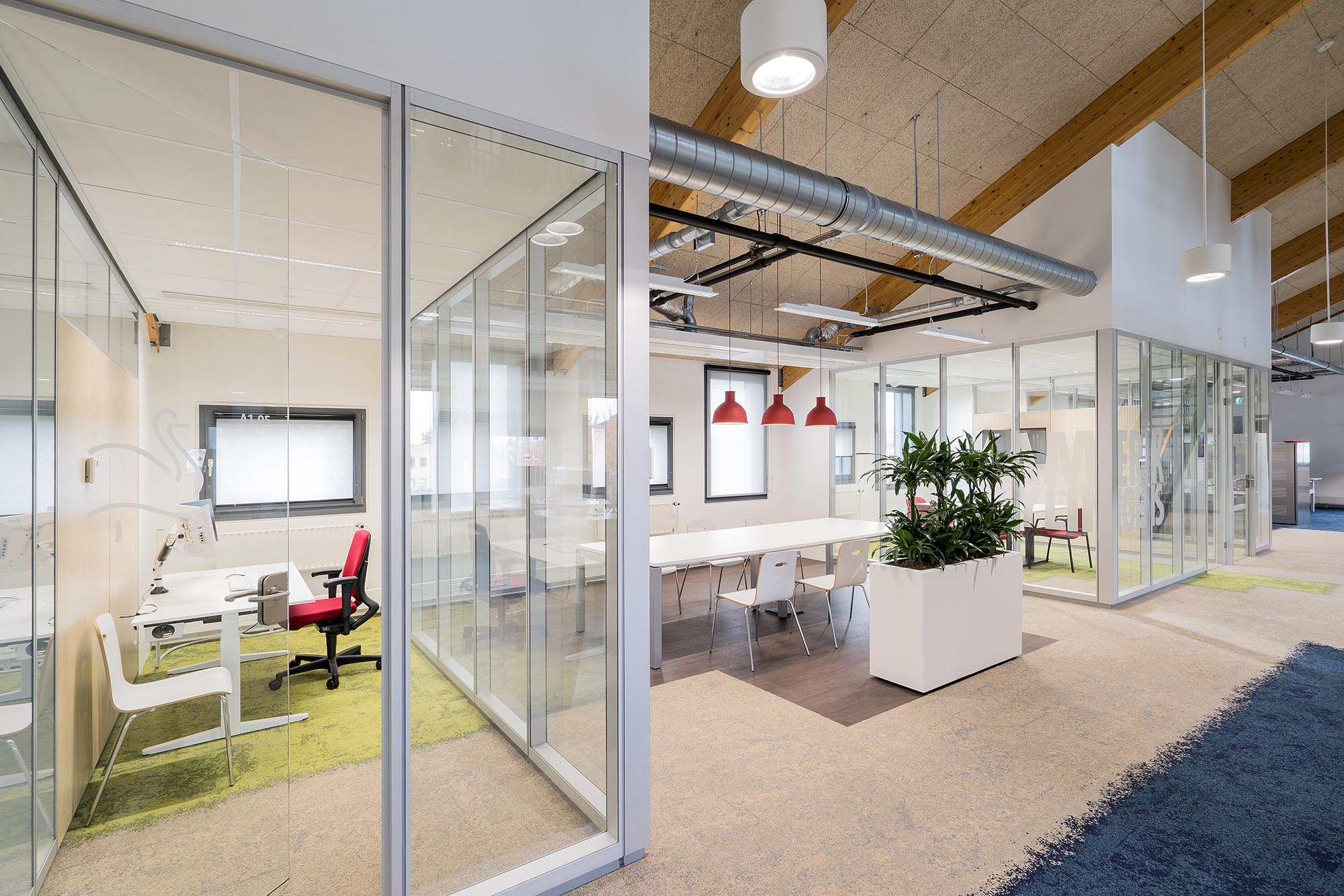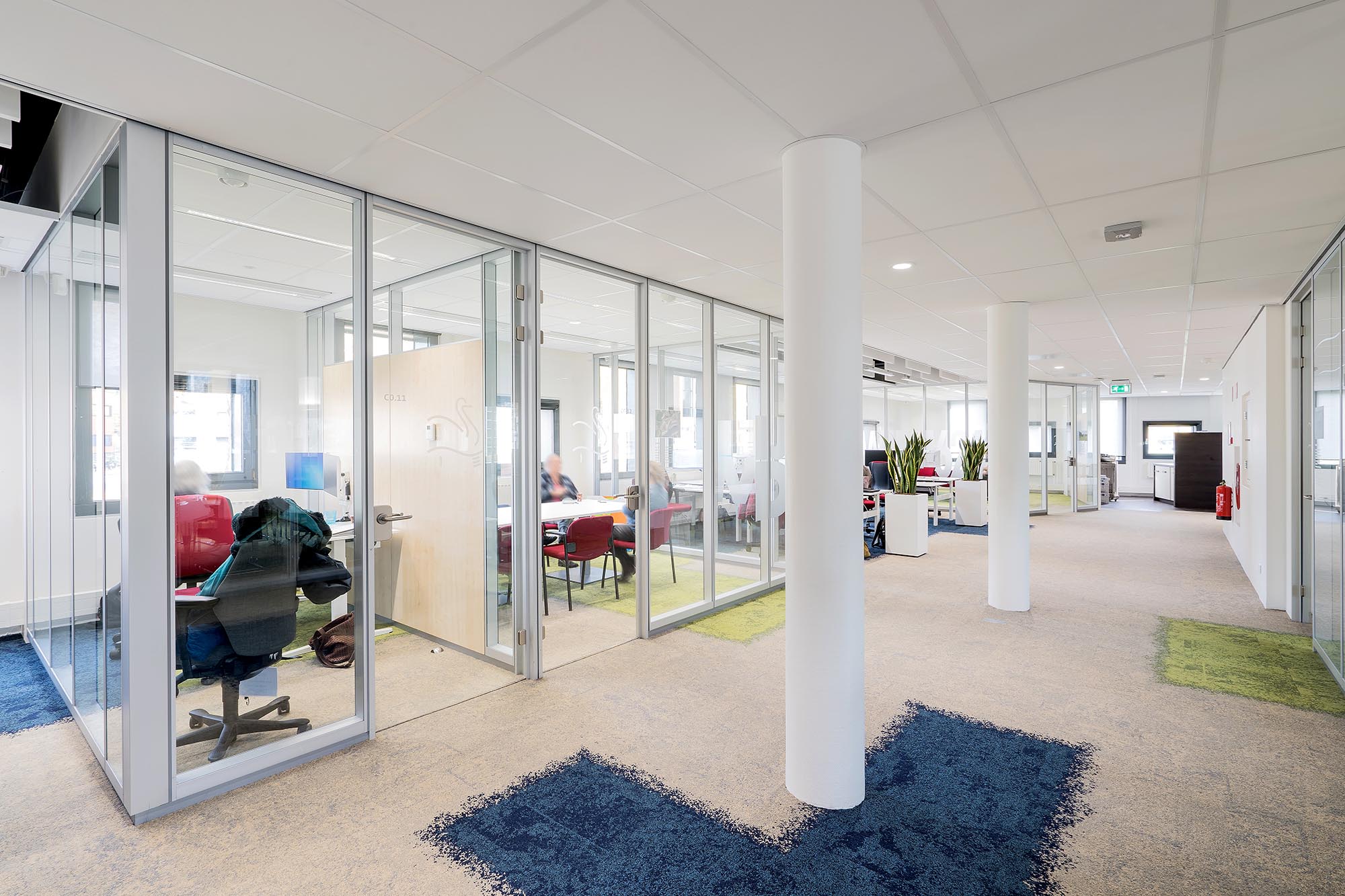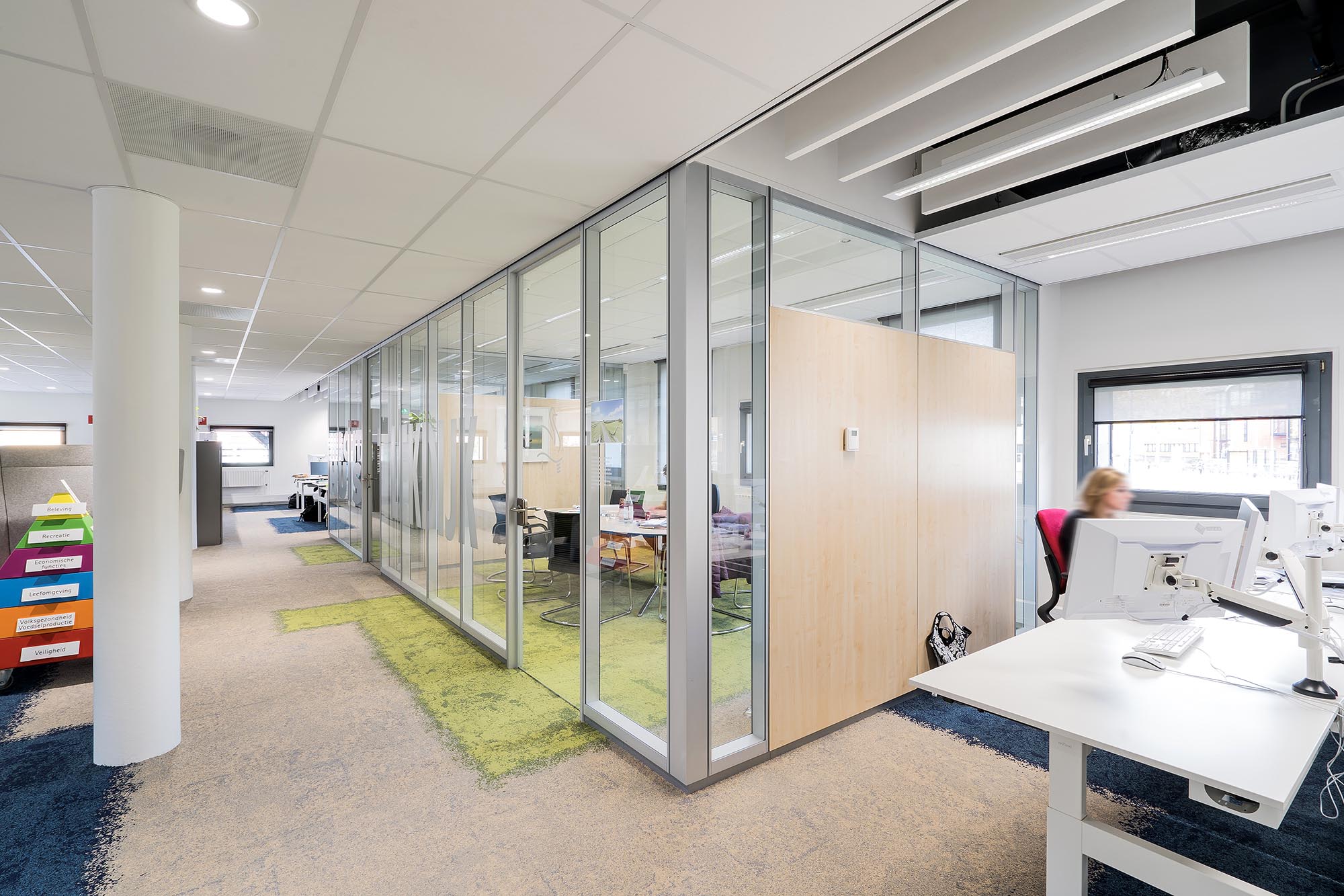 Met deze bestaande systeemwanden is er een indeling gerealiseerd die overeen komt met de gevraagde uitstraling van het waterschap. Om met de maatvoering goed uit te komen is een gedeelte van de systeemwanden vermaakt in onze eigen productielijnen. Zo is Waterschap HDSR, net als het Waterschapshuis in Lelystad, een prachtig voorbeeld van het hergebruik van bestaande systeemwanden.