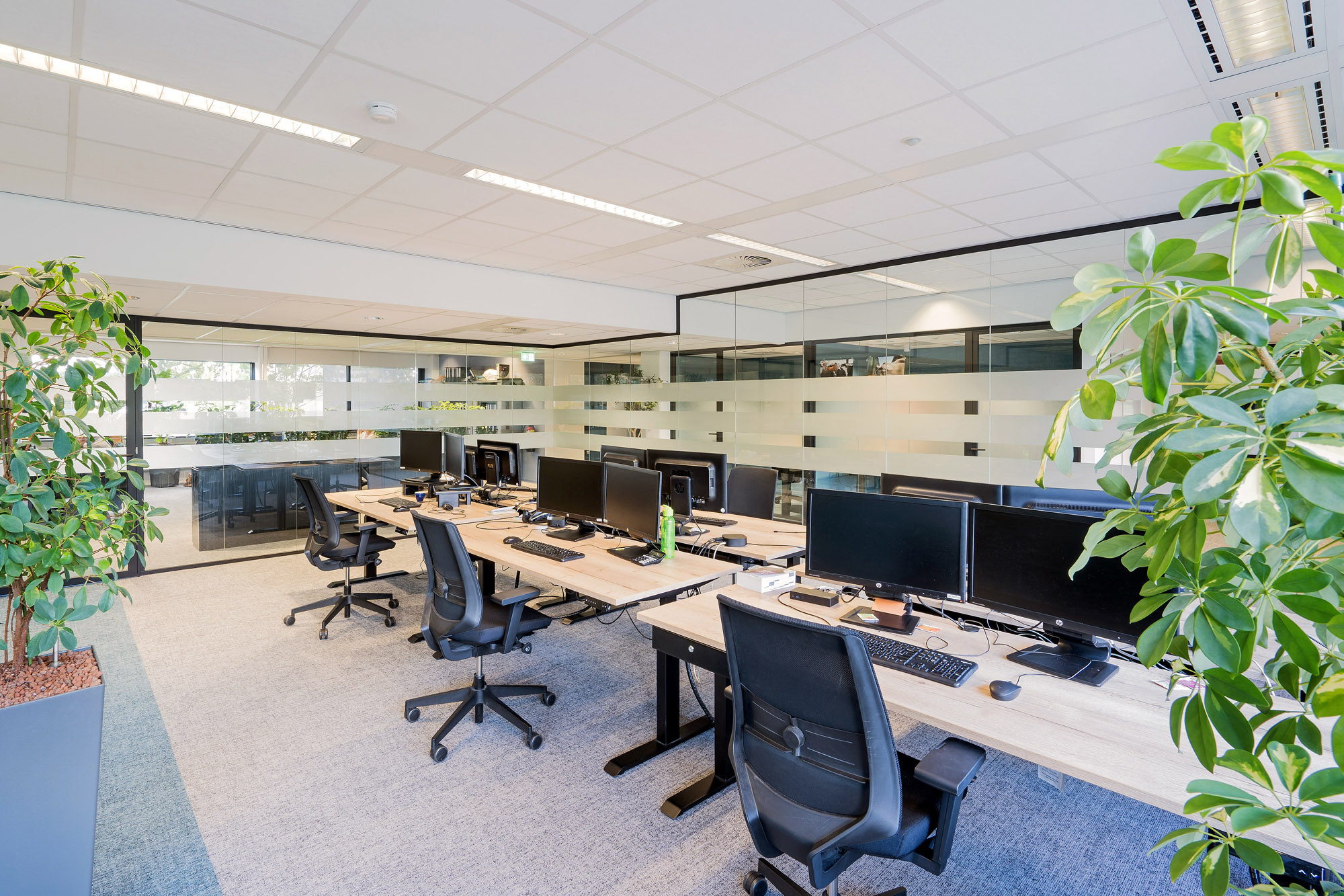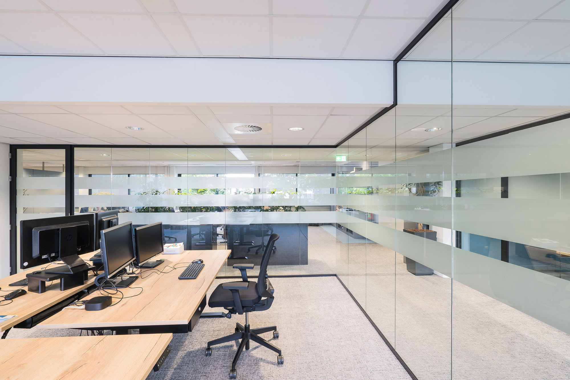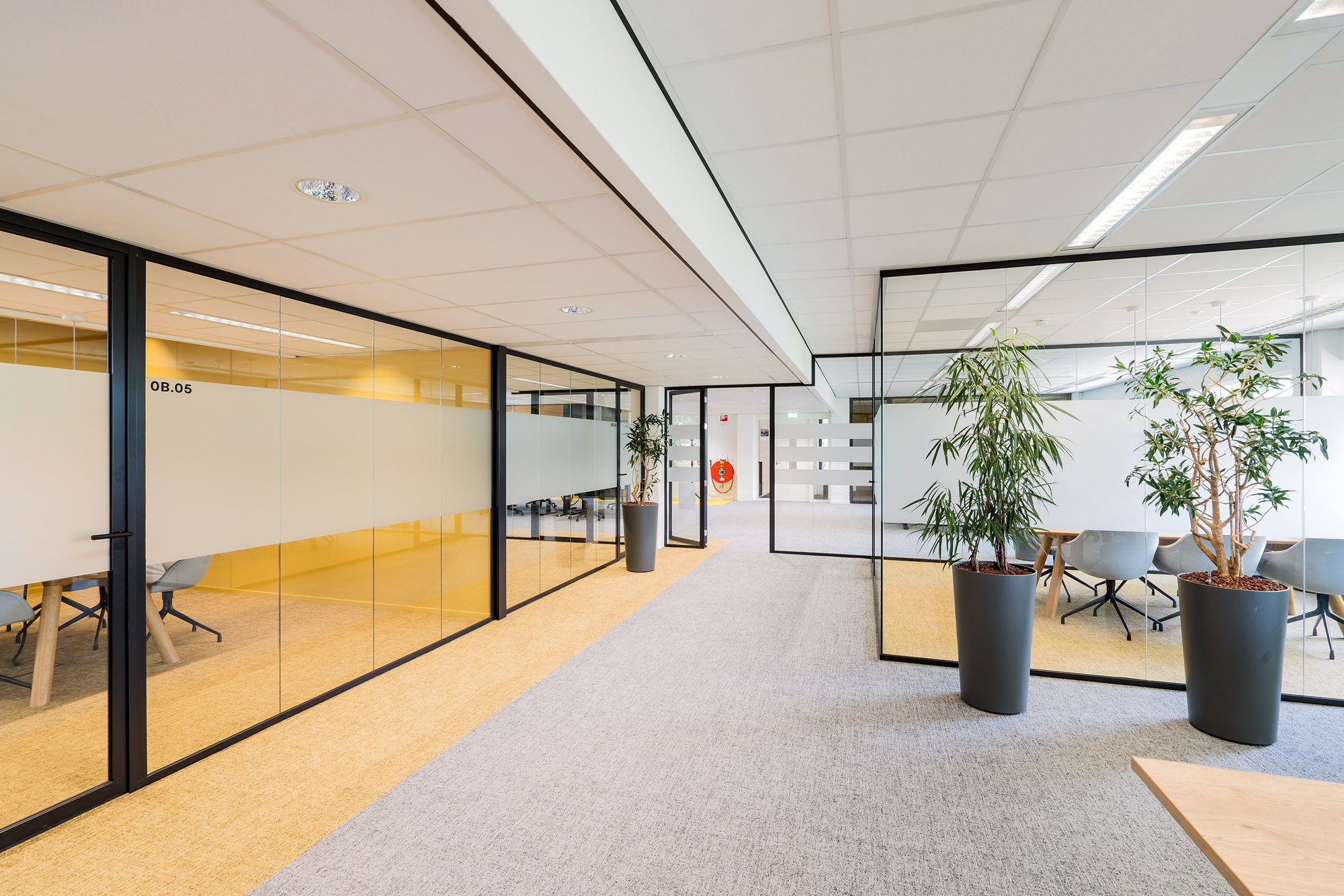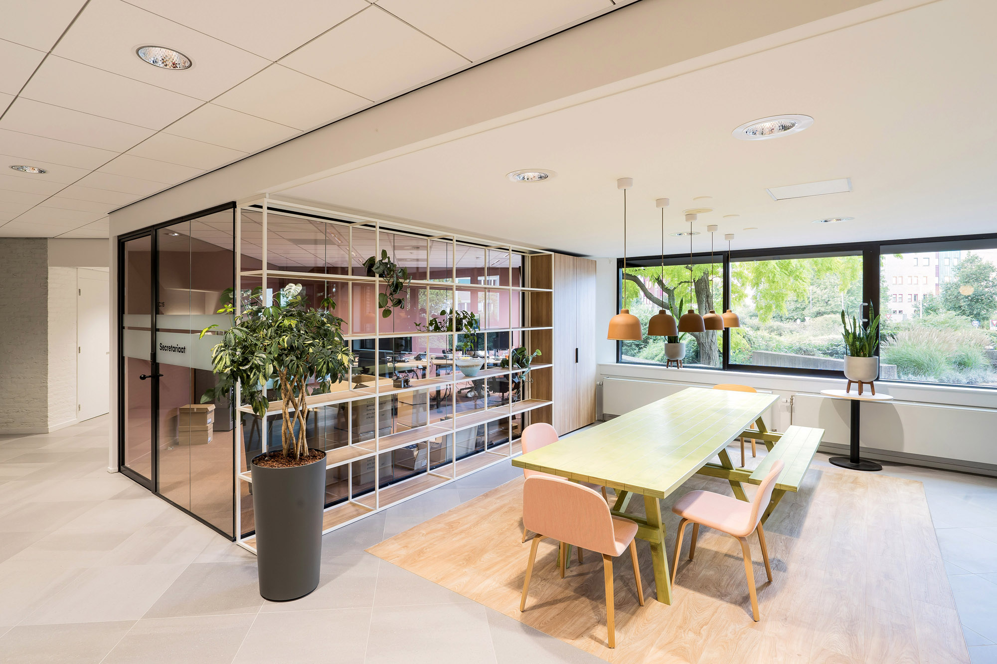 Om de lijn van transparantie in het kantoor voort te zetten, zijn alle deuren bij Countus Zwolle uitgevoerd als Slanke Kaderdeur. Met een ranke profilering van maar 60mm breed zorgen de minimalistische belijningen voor optimaal glasoppervlak. Deze robuuste kaderdeur is volledig losmaakbaar. Zo kan deze slanke kaderdeur eenvoudig refurbished worden en de gebruikte materialen een tweede leven te geven.