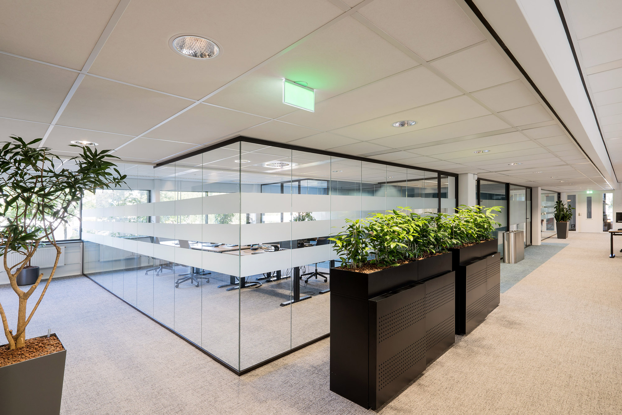 Door de herinrichting van de werkplekken zijn de bestaande glazen systeemwanden gedemonteerd. Hierdoor kwamen er een ruime hoeveelheid aluminium profielen en glaspanelen vrij. Deze zijn hergebruikt in de nieuw te realiseren kantoorindeling. Systeemwanden zijn van nature uitermate geschikt voor re-use. Onze glaswanden worden kitloos geplaatst, waardoor ze eenvoudig gedemonteerd kunnen worden om vervolgens herplaatst te worden.