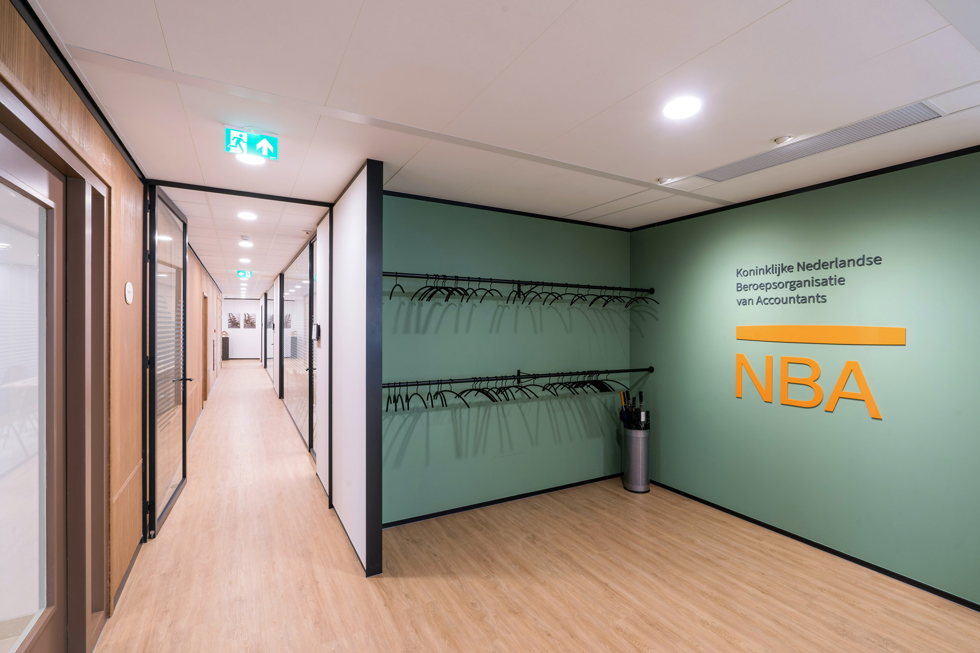 Kantoorgebouw Pharos is recentelijk volledig gerenoveerd en voldoet aan alle moderne eisen (BREEAM-NL In-Use Excellent). De NBA gebruikt de eerste etage van het kantoorgebouw, dat pal naast het station van Hoofddorp te vinden is. De kantoorruimte is duurzaam en circulair ingericht in opdracht van HEVO, experts in huisvesting en vastgoed, naar het ontwerp van ZENBER Architecten. Het nieuwe kantoor biedt een werkomgeving die ontmoeten en samenwerken faciliteert, maar die ook ruimte biedt om geconcentreerd te kunnen werken.