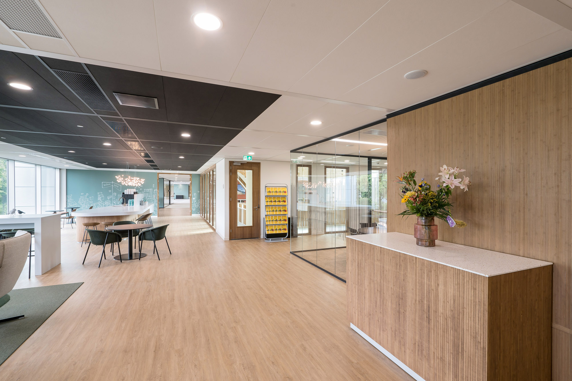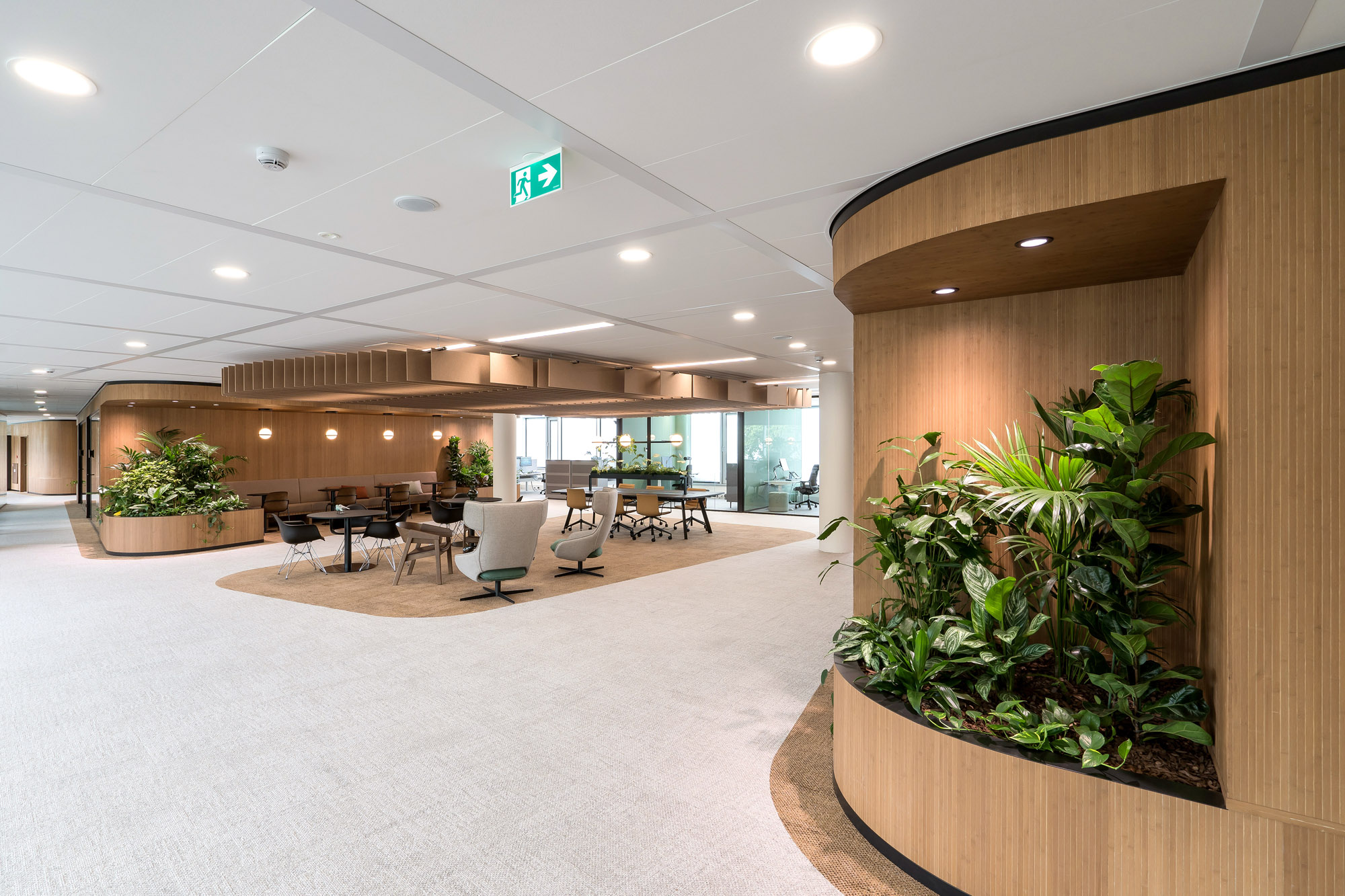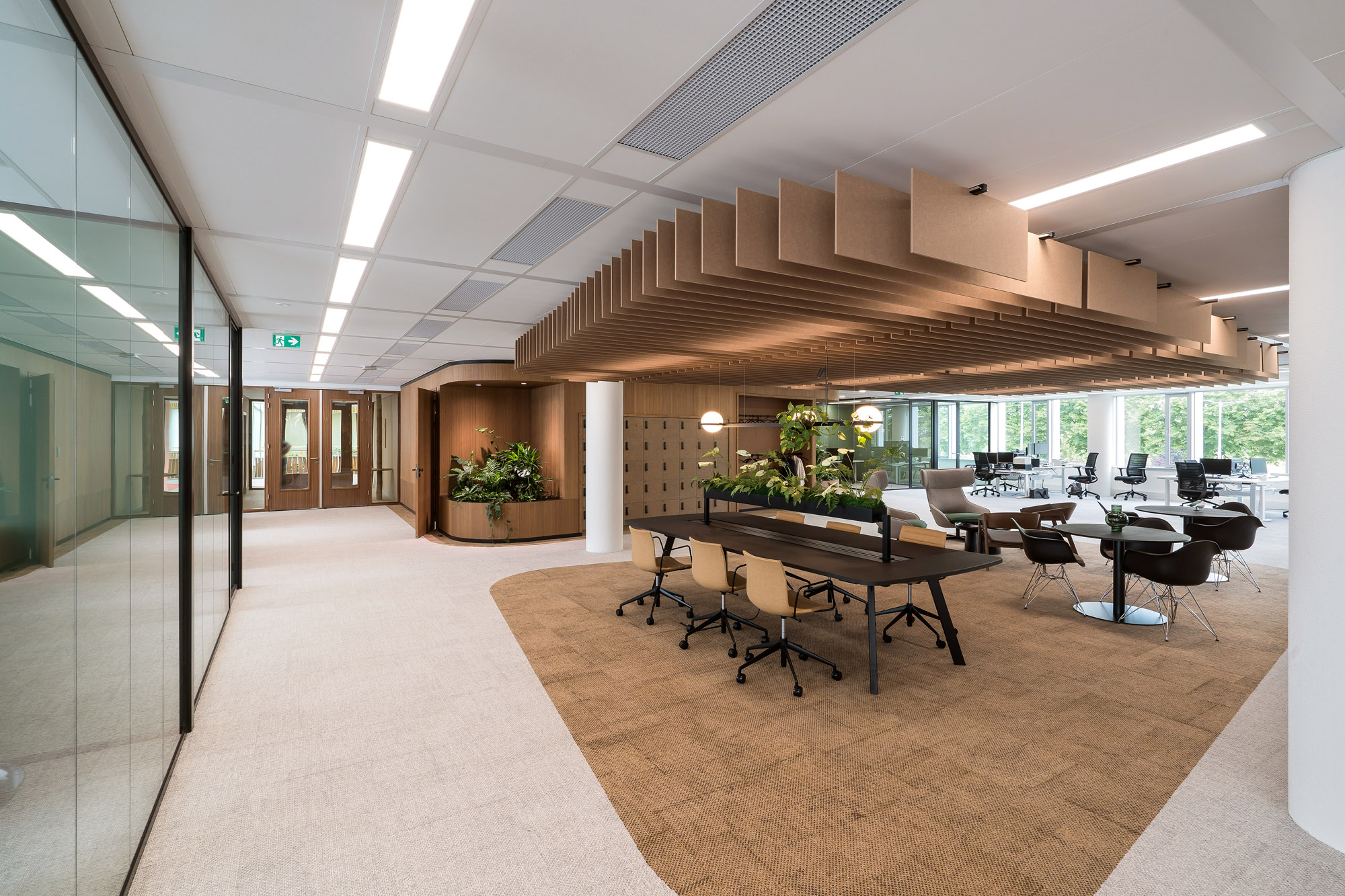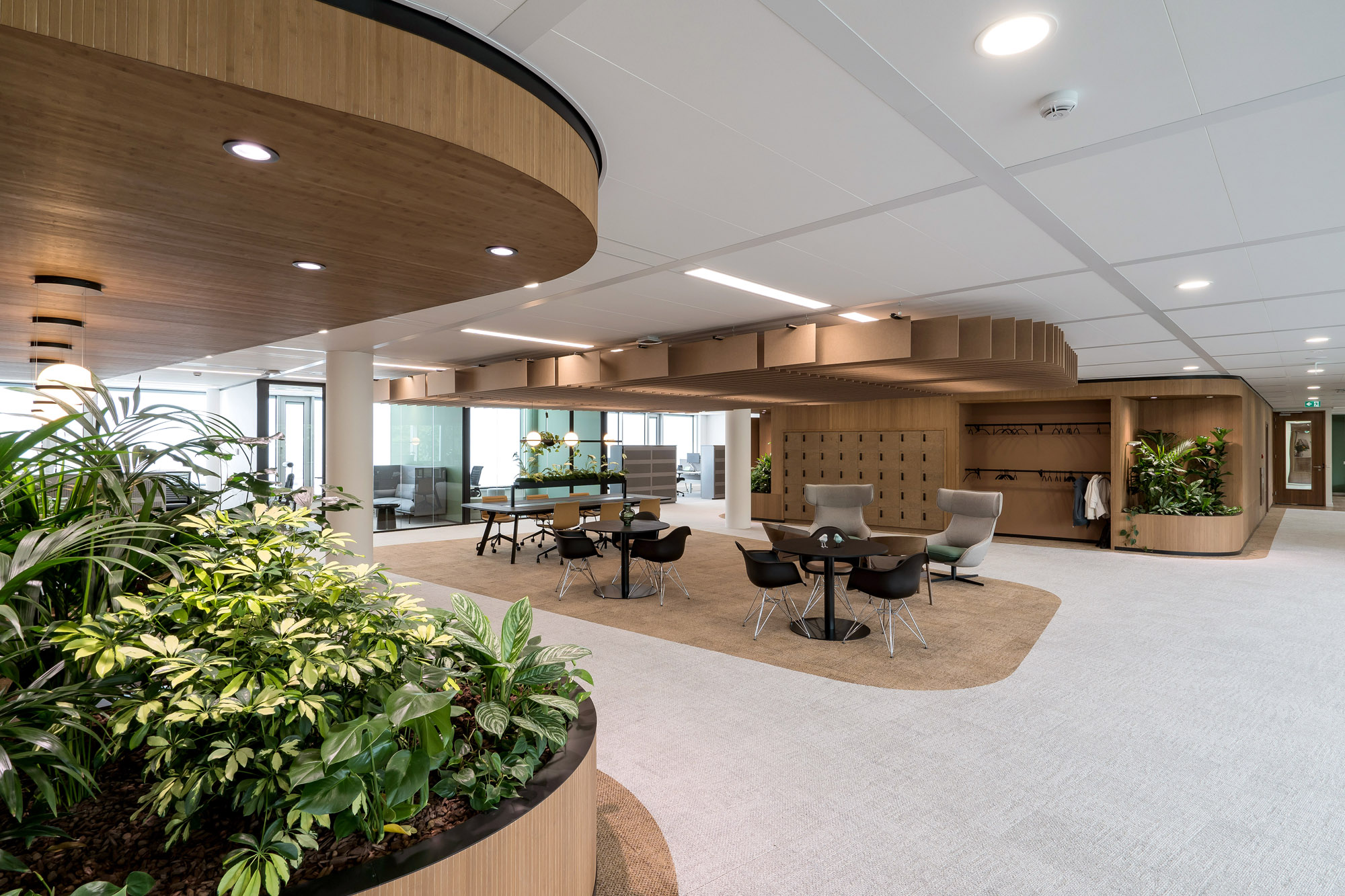 Duurzaamheid en circulariteit zijn belangrijke pijlers in het ontwerp. Het interieur heeft een warme sfeer gekregen met veel levend groen. Er is in het bijzonder aandacht besteed aan het realiseren van de optimale akoestiek voor zowel de open werkruimtes als de concentratiewerkplekken.