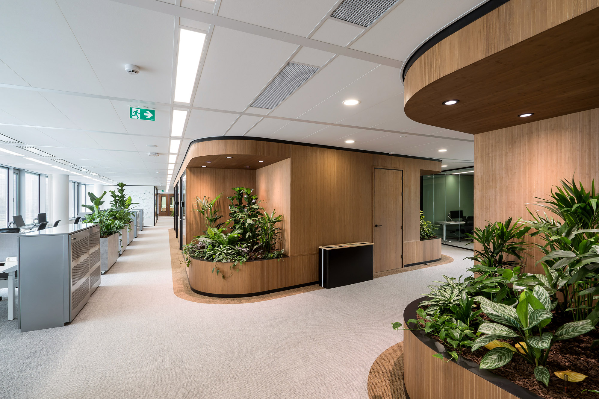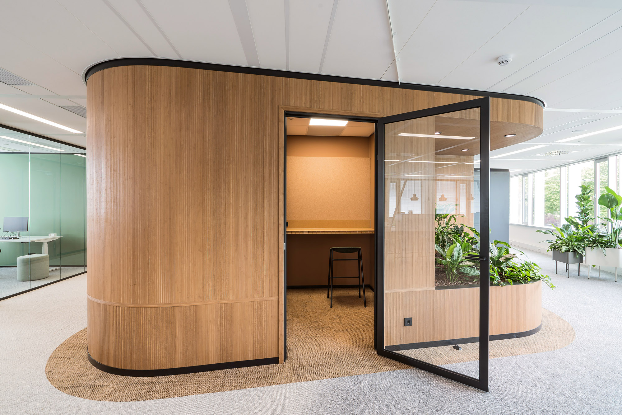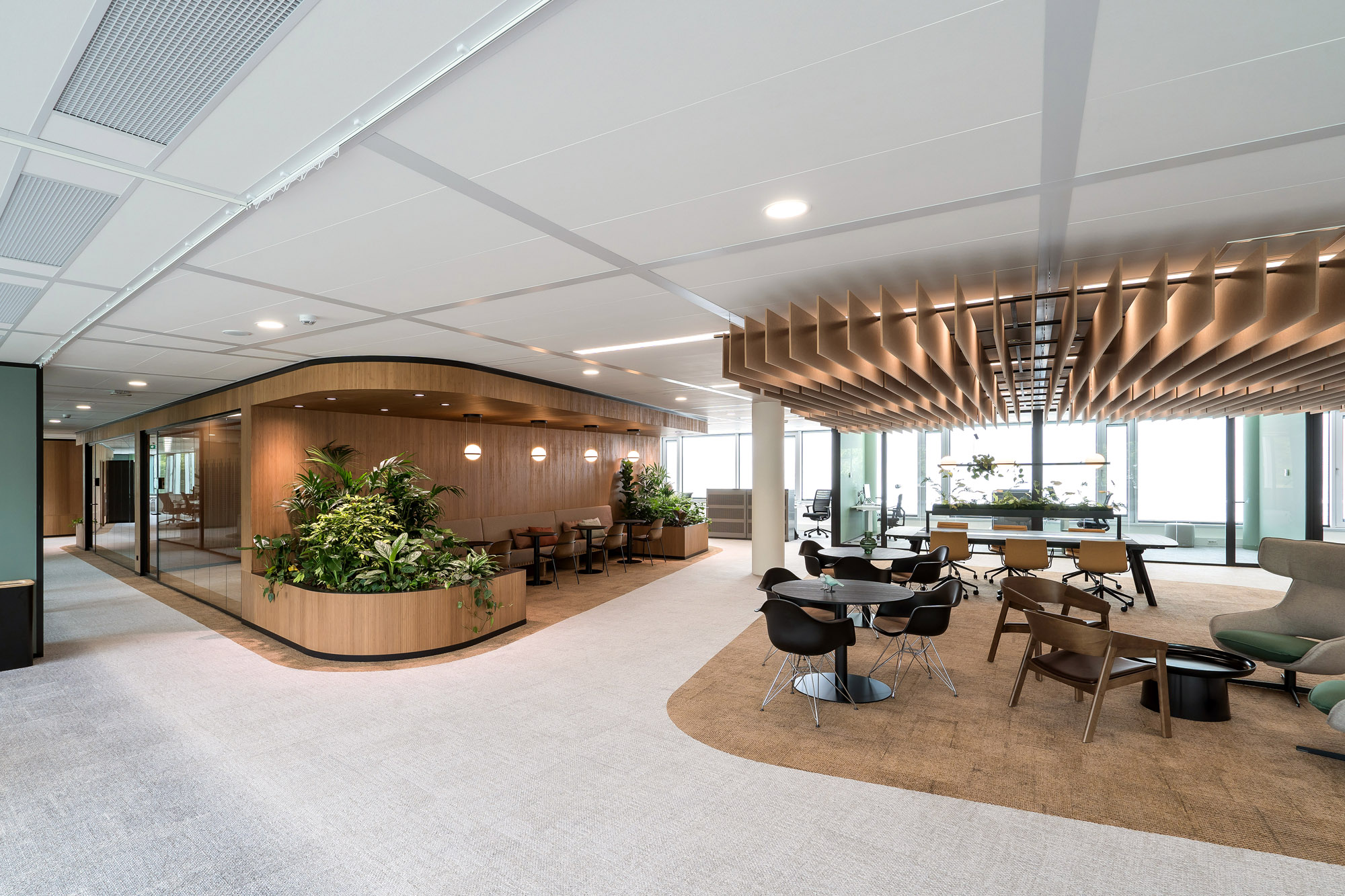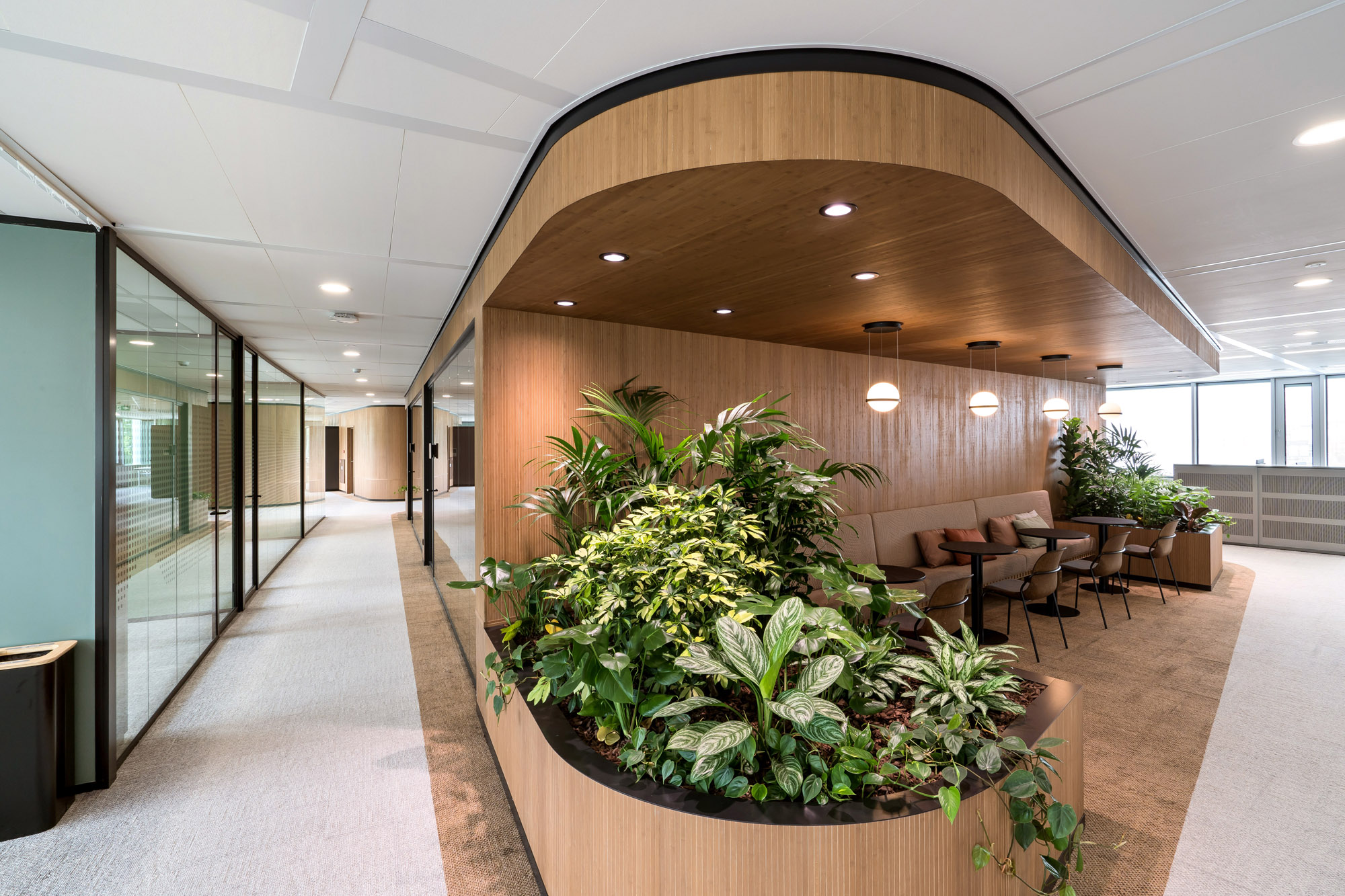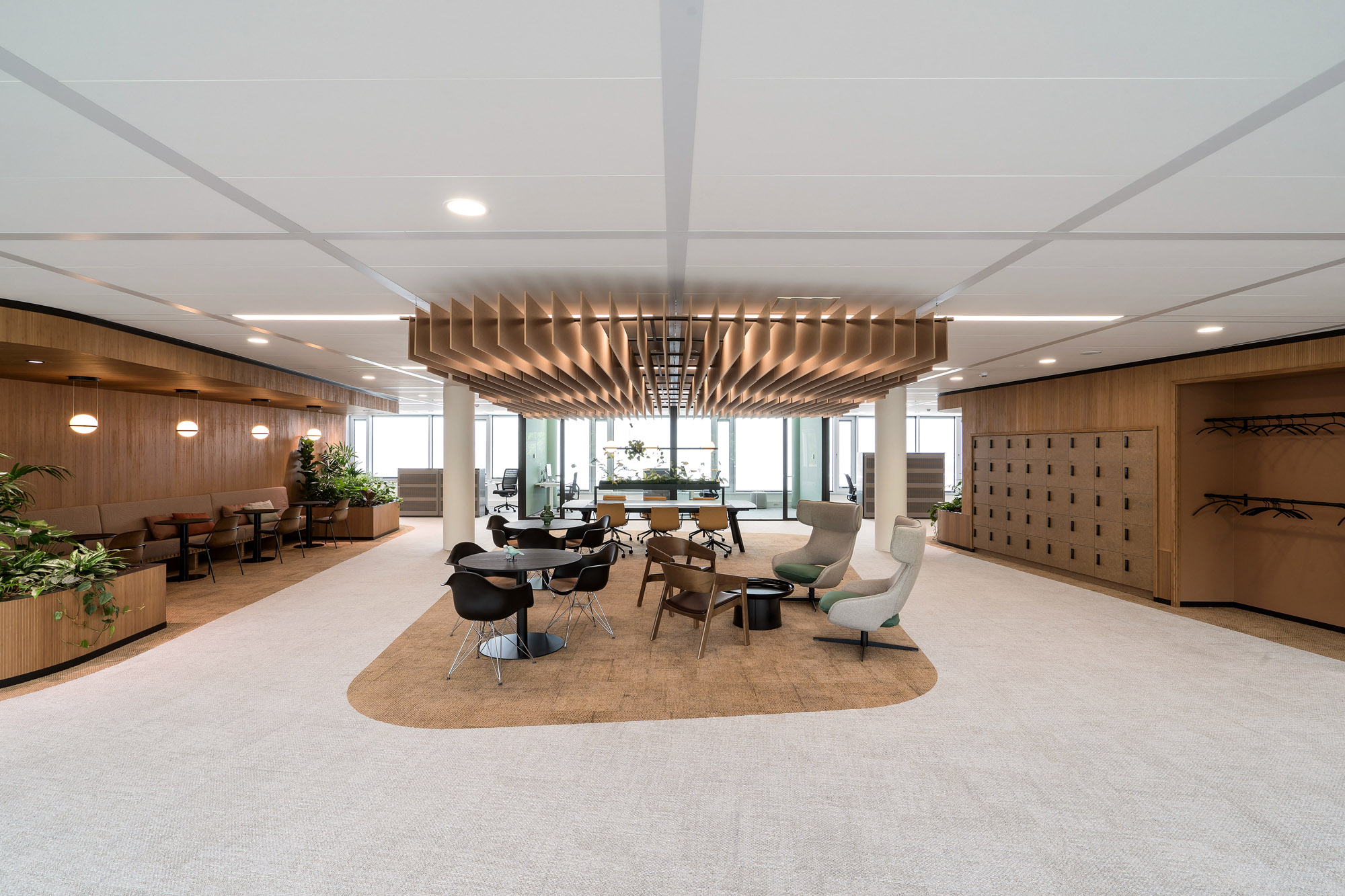 Duurzaamheid en circulariteit zijn belangrijke pijlers in het ontwerp. Het interieur heeft een warme sfeer gekregen met veel levend groen. Er is in het bijzonder aandacht besteed aan het realiseren van de optimale akoestiek voor zowel de open werkruimtes als de concentratiewerkplekken.