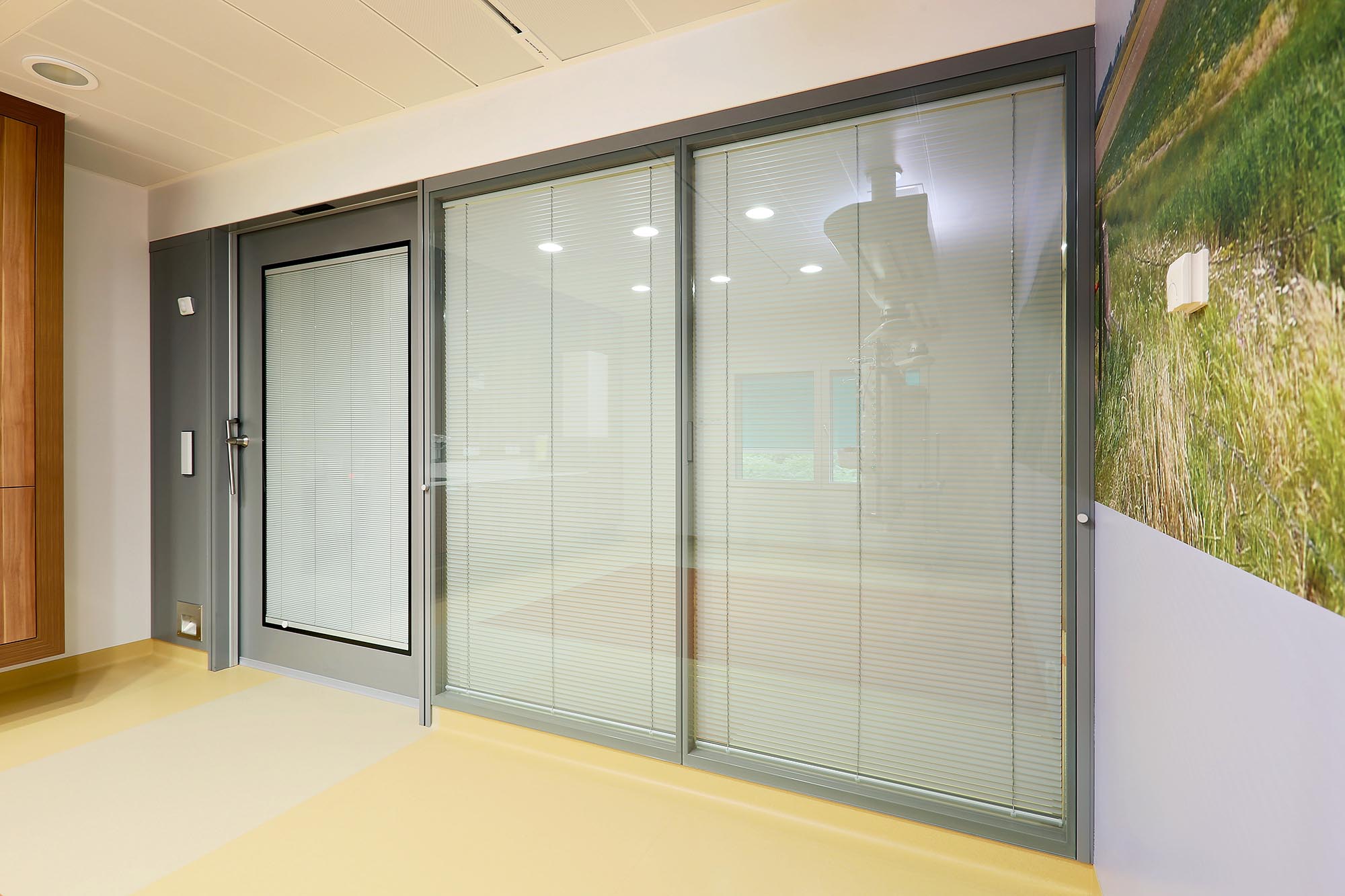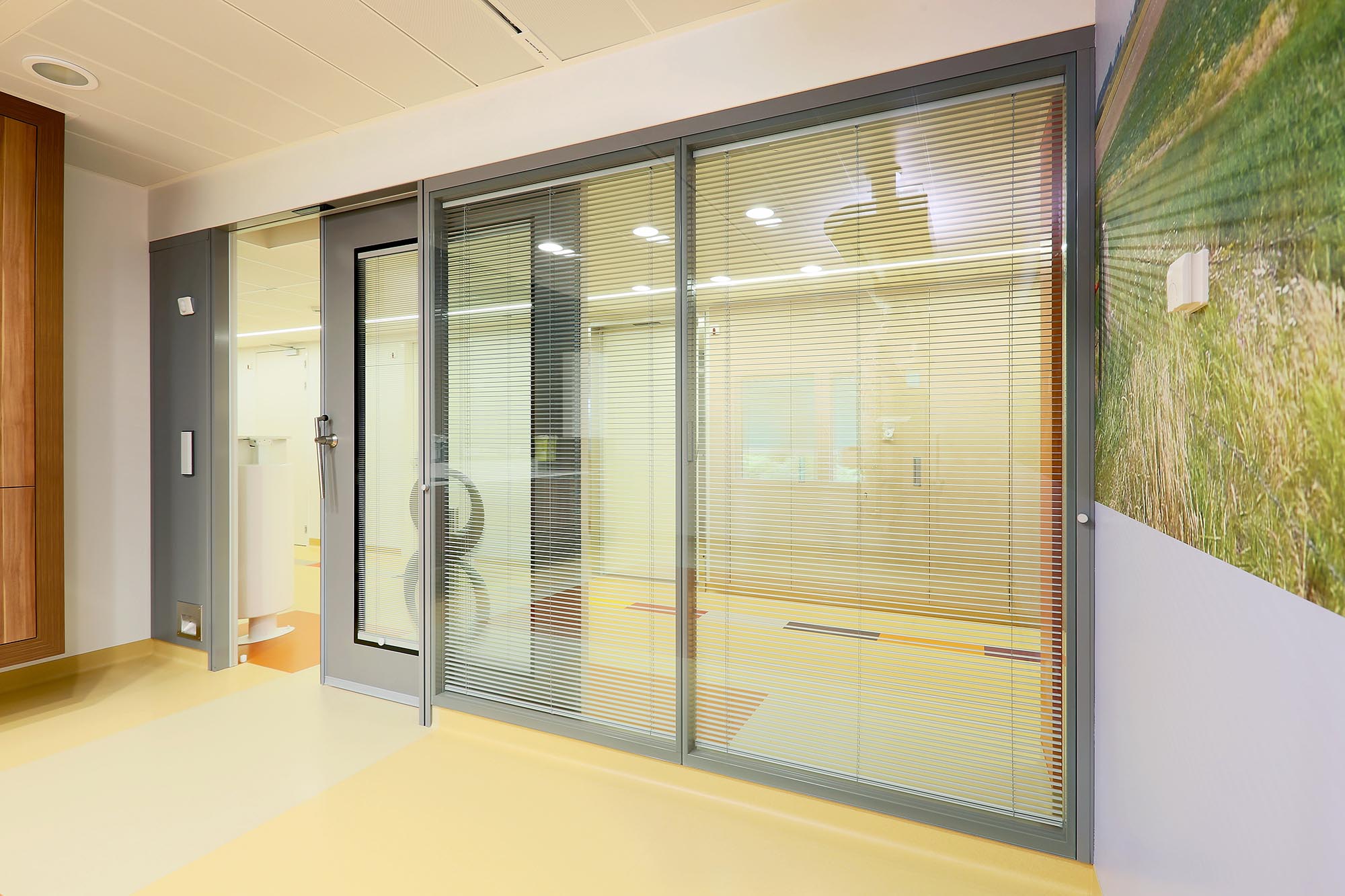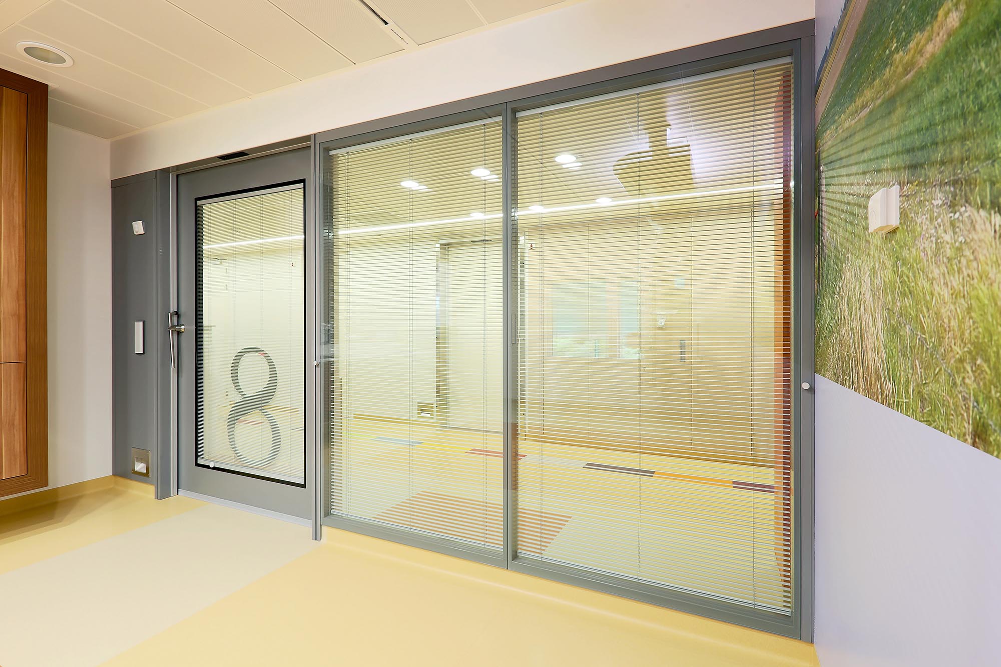 Belangrijke eigenschappen voor deze afdeling Intensive Care zijn rust, licht, ruimte en veiligheid. Door de ingebouwde lamellen is de wand zowel tranparant als gesloten te gebruiken. De Metaflex deuren blijven zoveel mogelijk dicht en zijn via een voetsensor te openen. Het zorgpersoneel kan via een controle-unit buiten de IC-kamer alles inzien, inclusief een live camerabewakingssysteem.