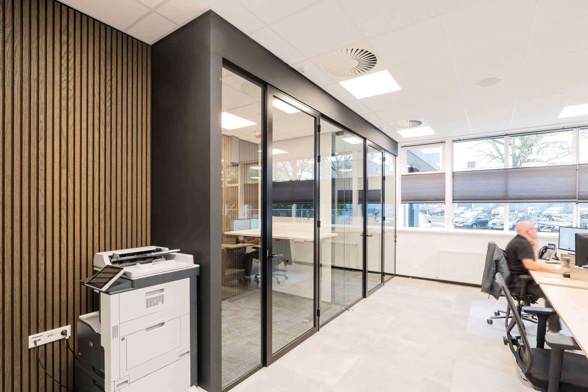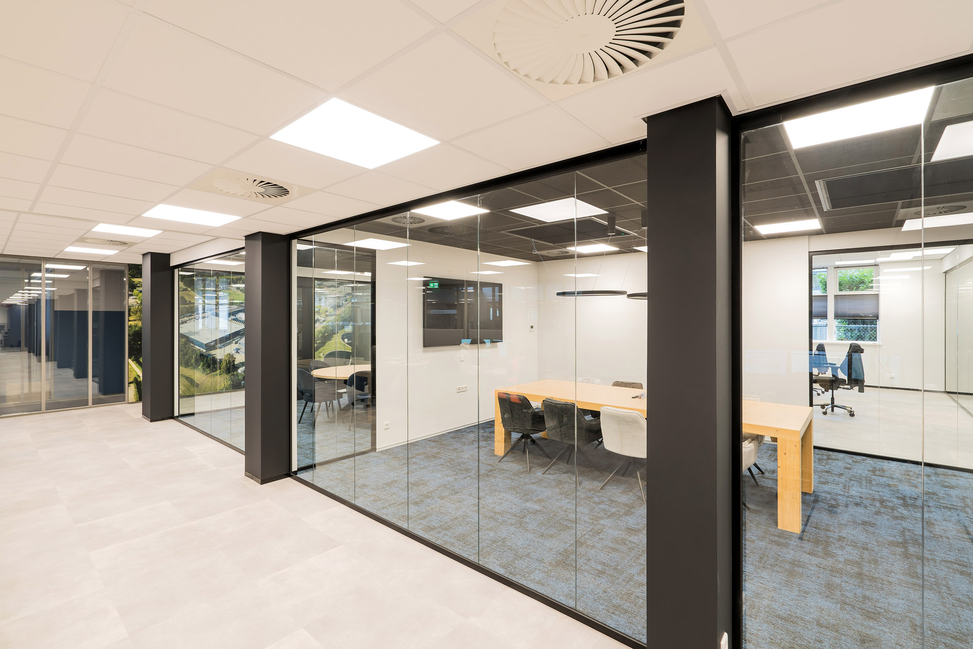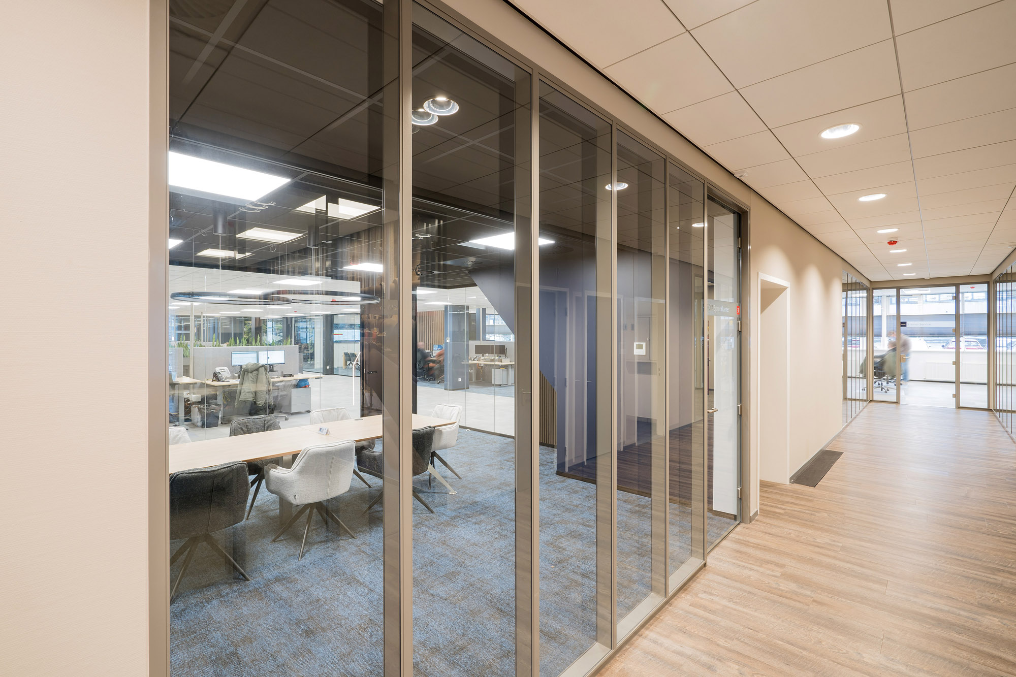 De bestaande glazen systeemwanden bij Hamer die wij bij eerdere verbouwingen hebben toegepast, zijn hergebruikt in het nieuwe ontwerp. Deze Second Life wanden komen uit onze TC-lijn; glascassettes met dubbel glas. De glaswanden zijn gedemonteerd en herplaatst om zo weer jaren mee te kunnen in het nieuwe ontwerp. Deze duurzame oplossing laat wederom zien dat duurzaamheid en duurzame techniek belangrijke onderdelen zijn binnen de bedrijfsvoering van Hamer.