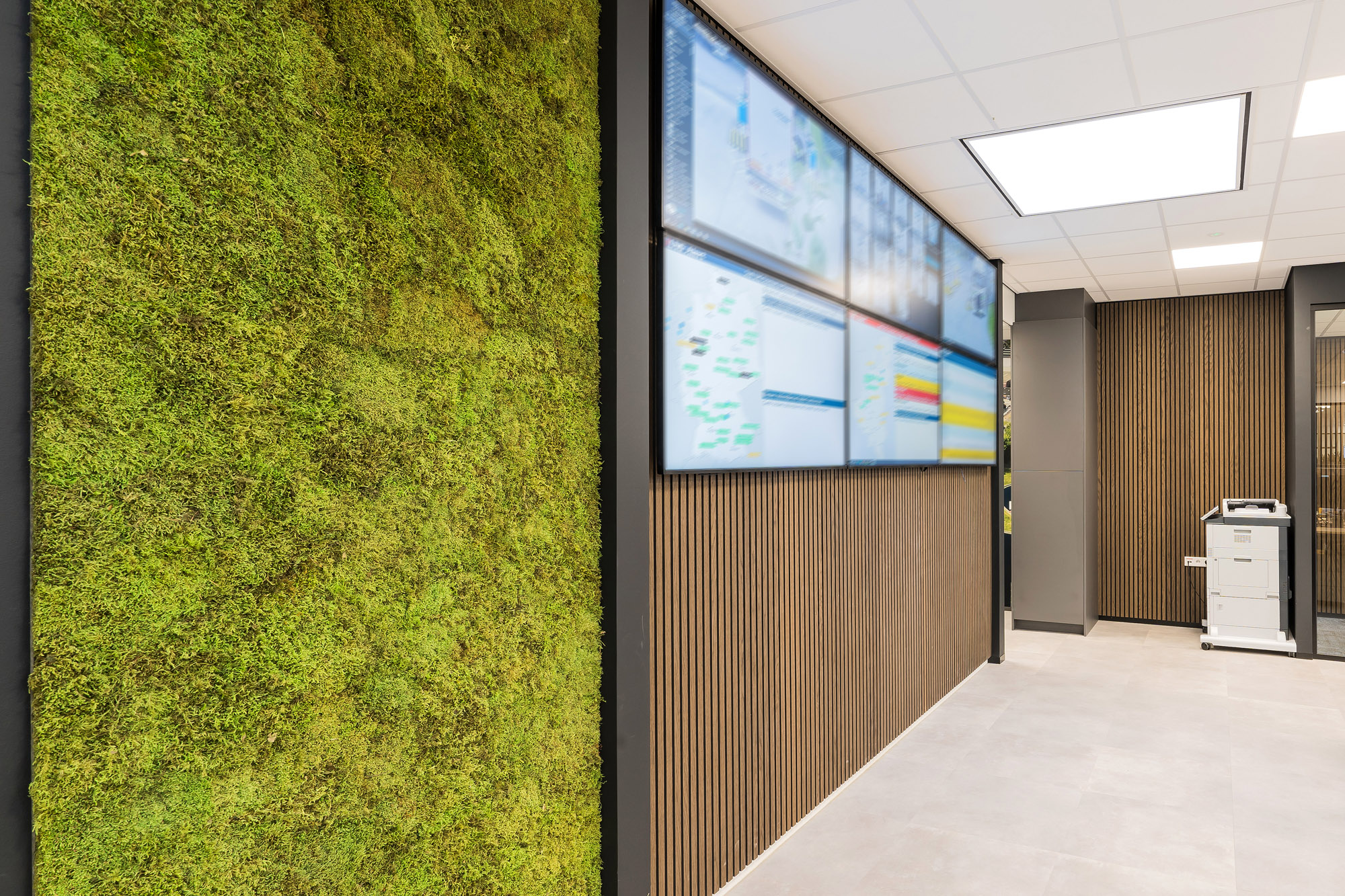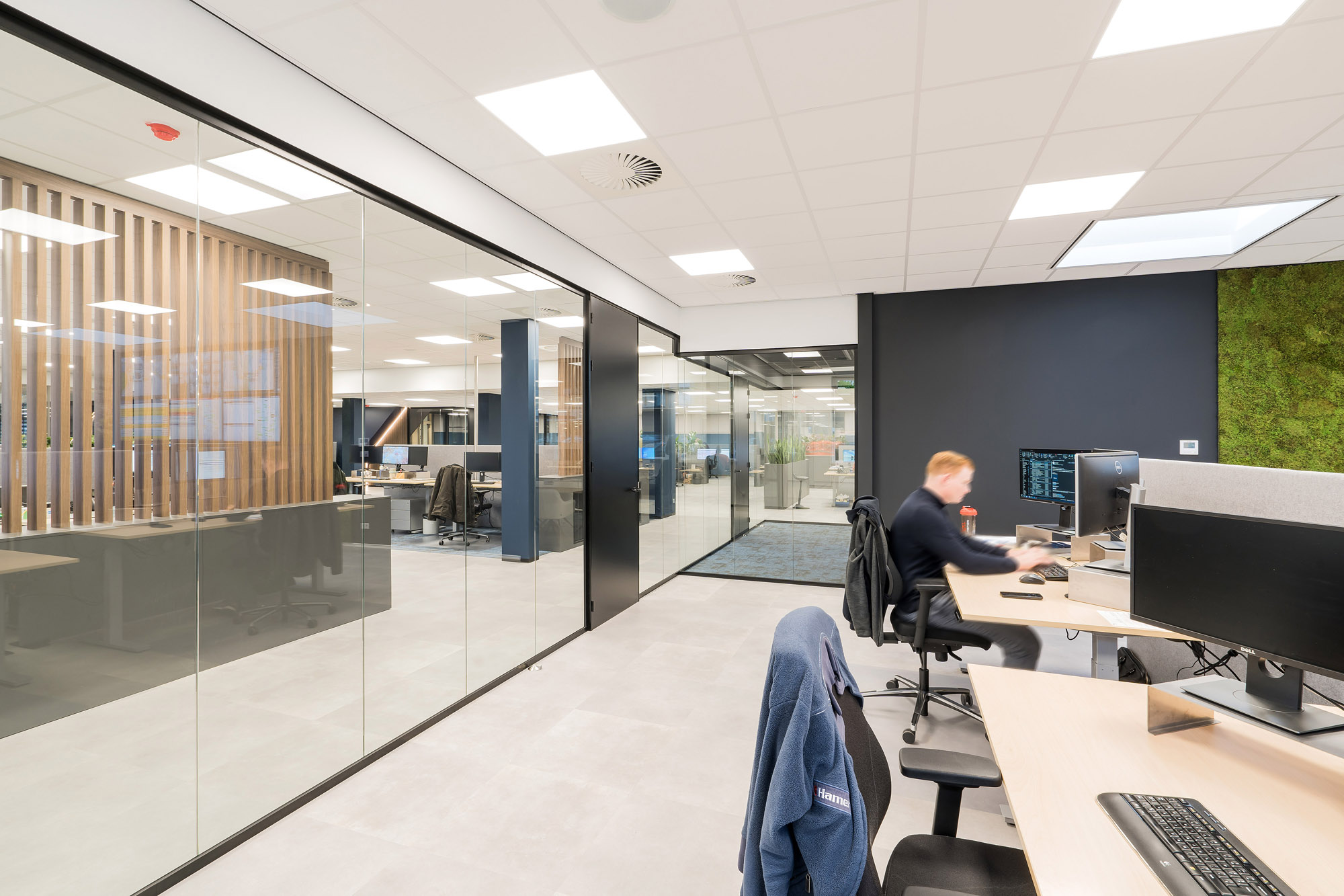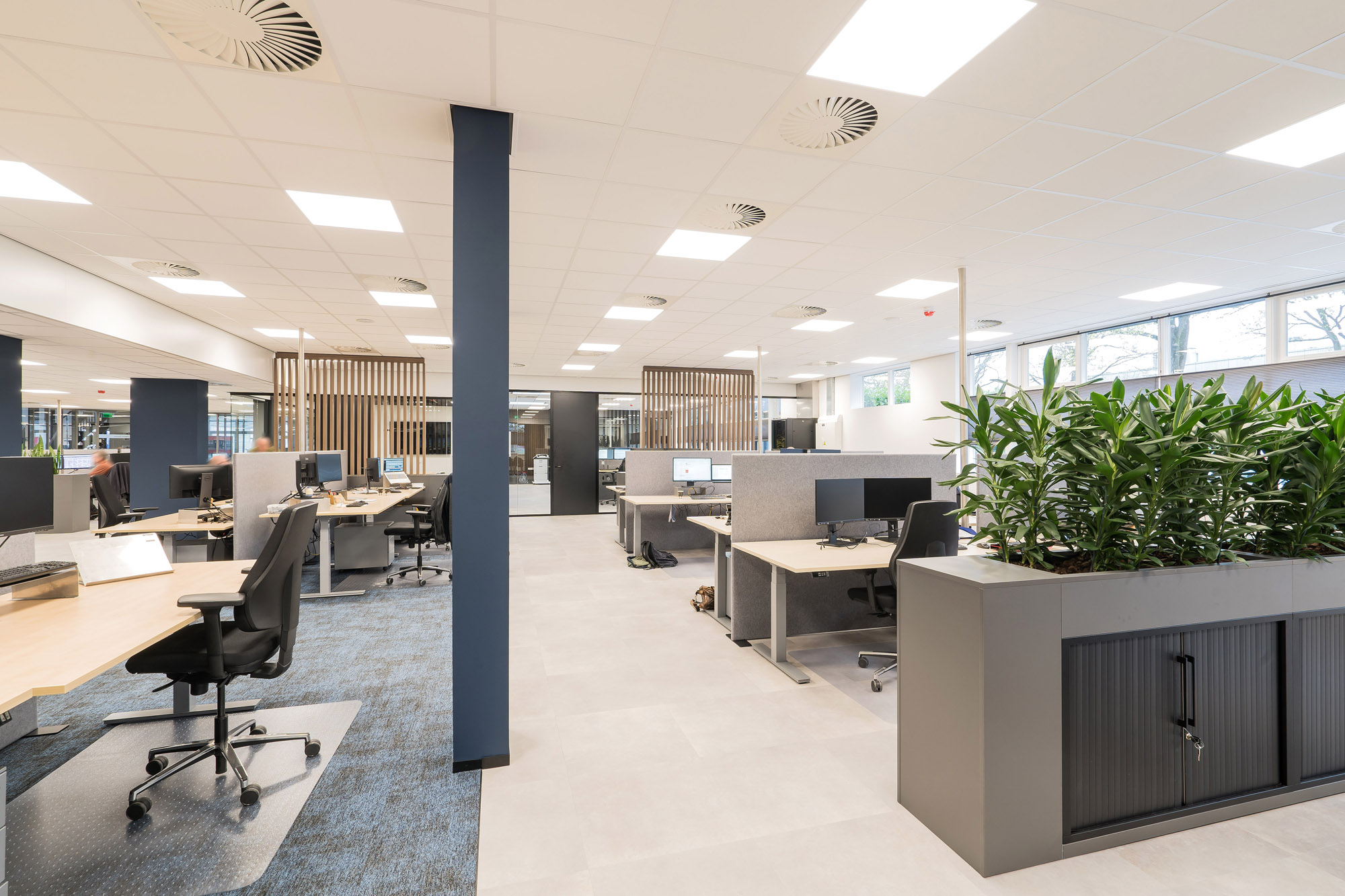 Eén van de belangrijke speerpunten naast transparantie en verbinding is akoestisch comfort. Met een akoestisch systeemplafond, maatwerk roomdividers, akoestische schermen op de bureaus en grote visuals met akoestische vulling aan de muur is de akoestiek op de afdeling geoptimaliseerd. De standaard rolkasten zijn verwerkt in maatwerk meubels inclusief plantenbakken om feilloos in het ontwerp te passen.