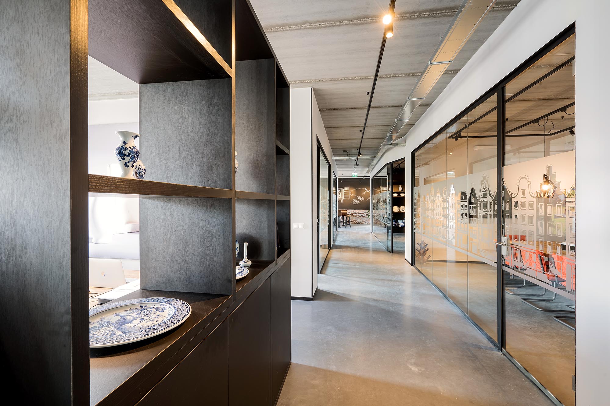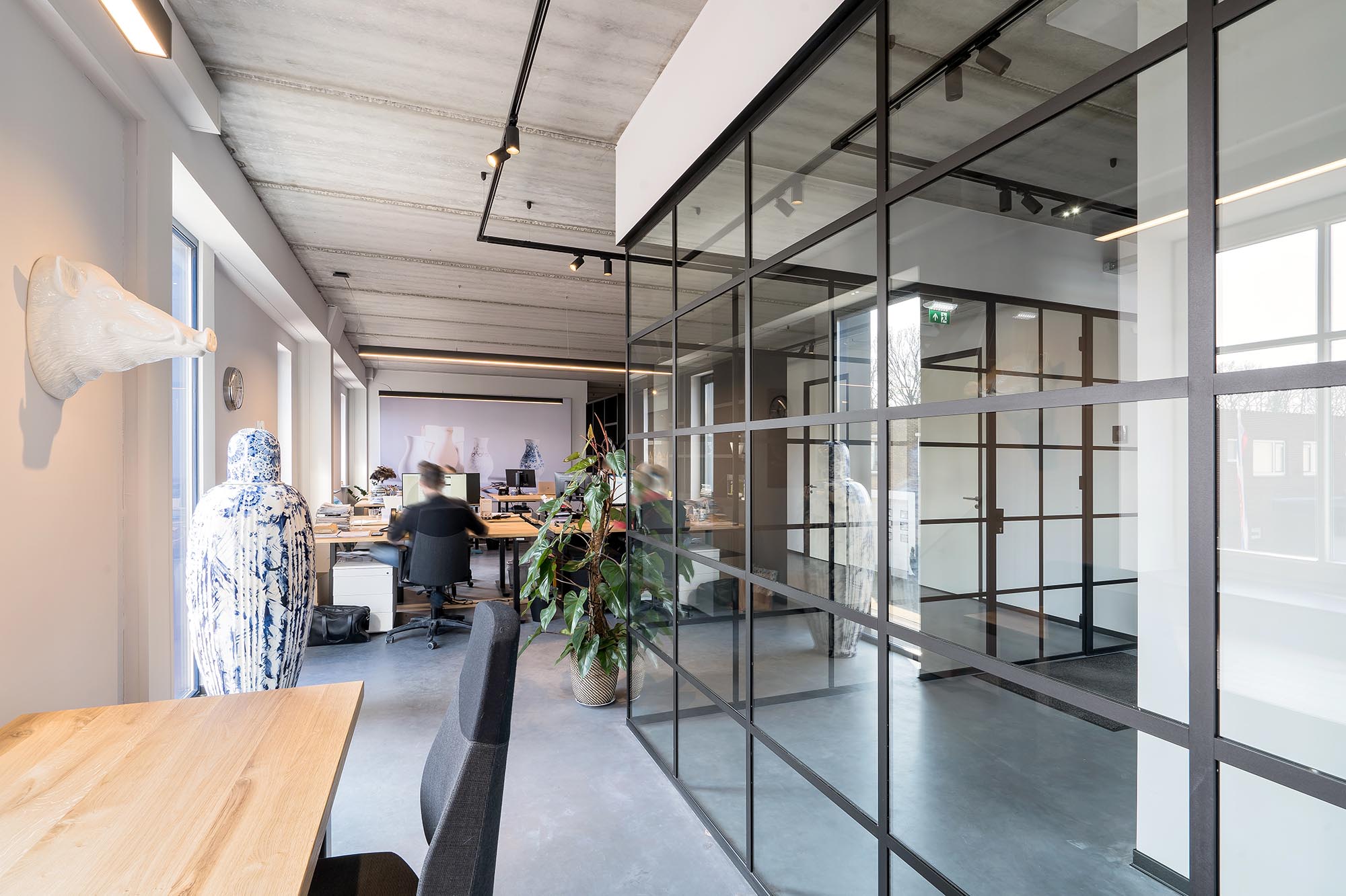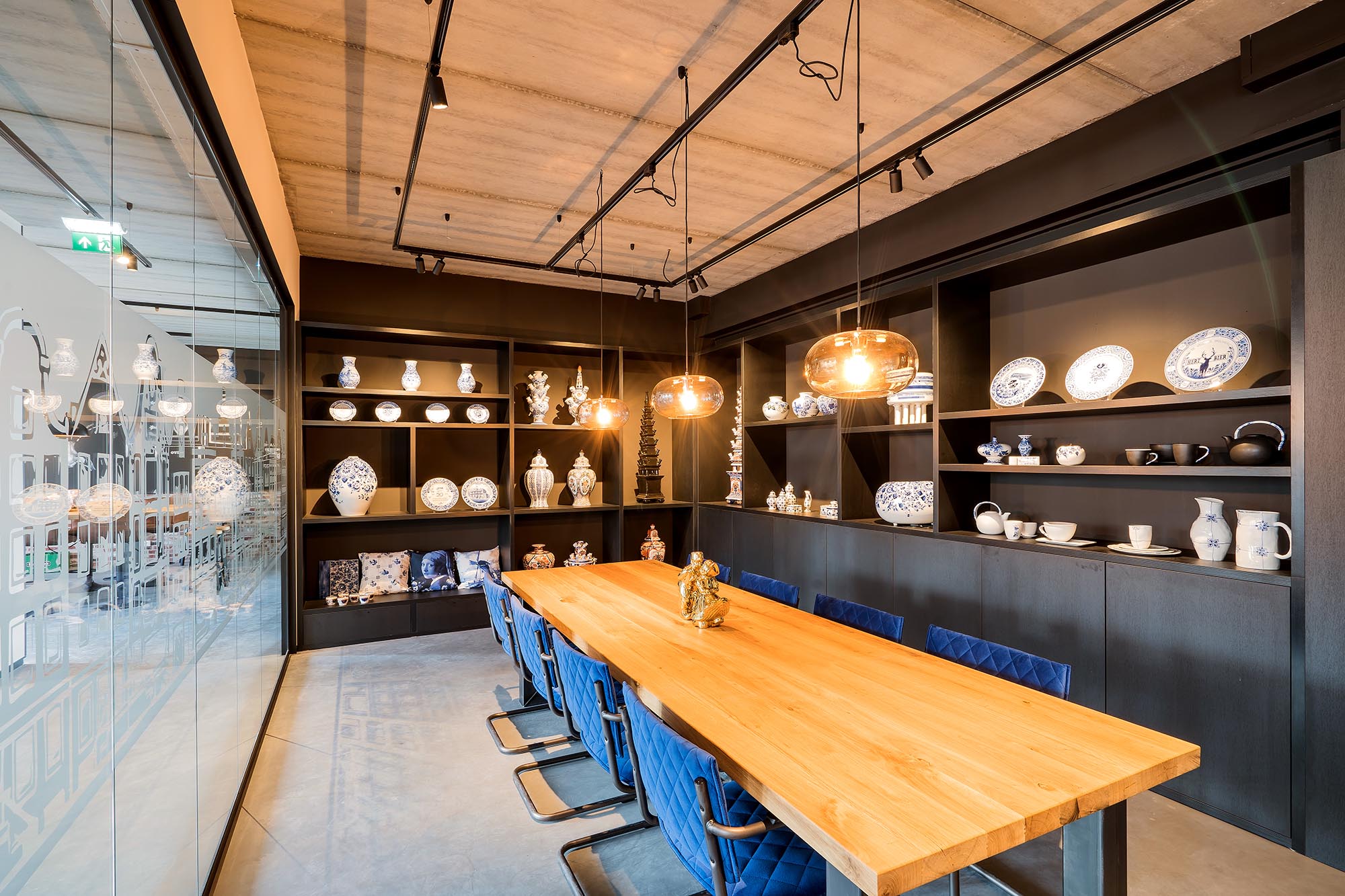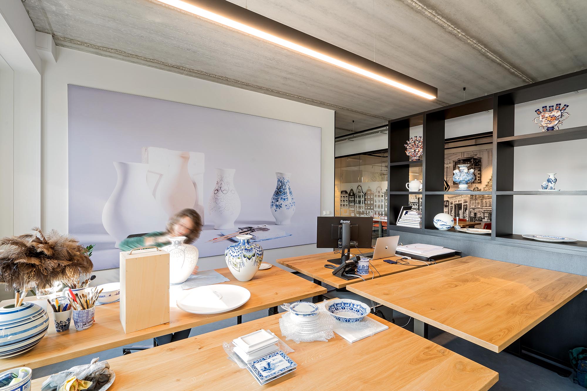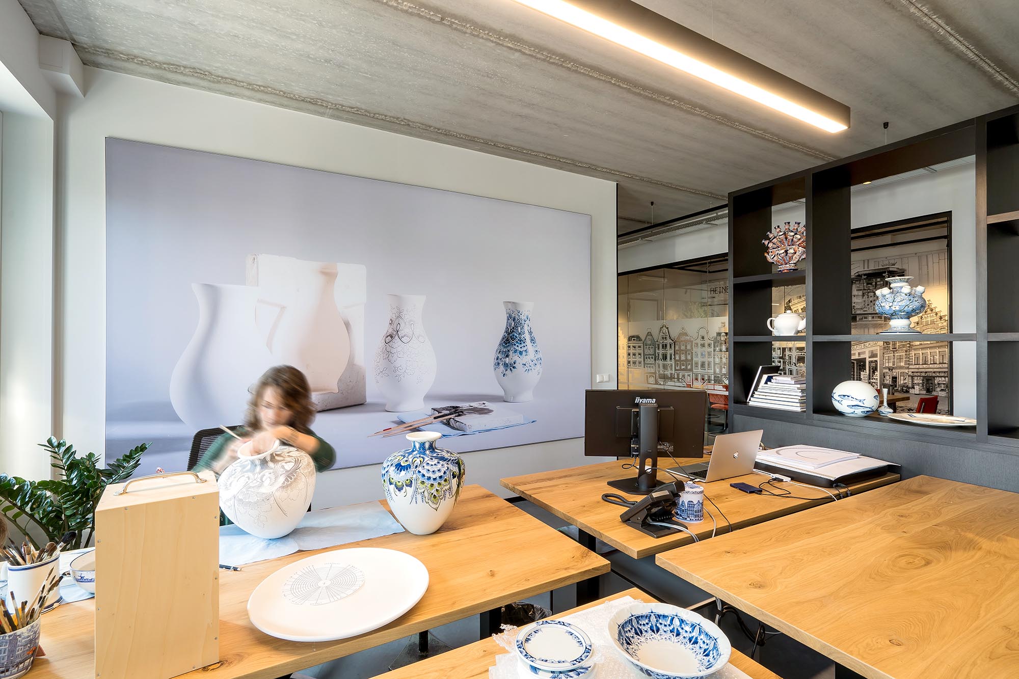 In het kantoorgedeelte op de eerste verdieping wordt Delfts Blauw ontworpen en handgeschilderd. De