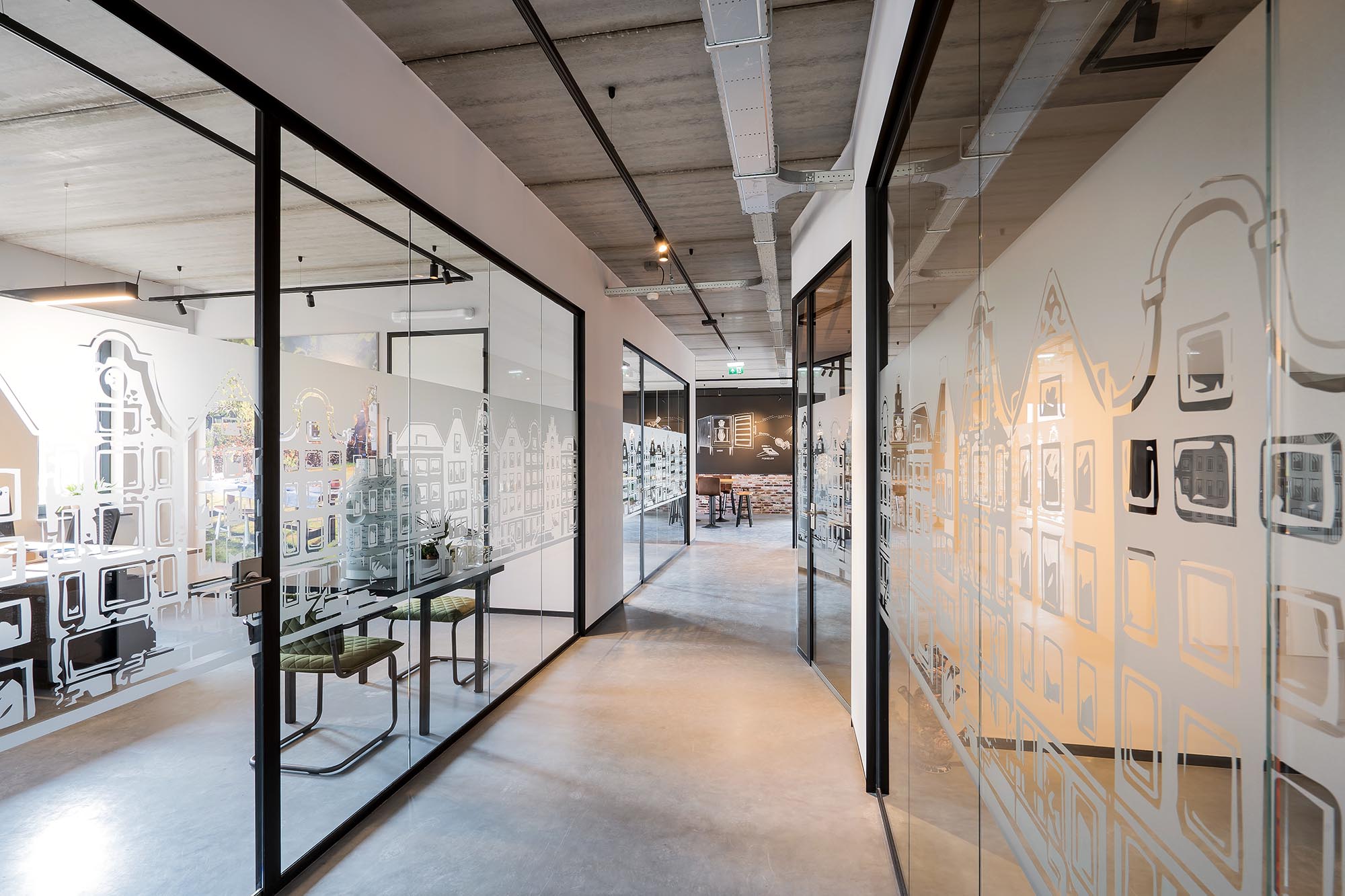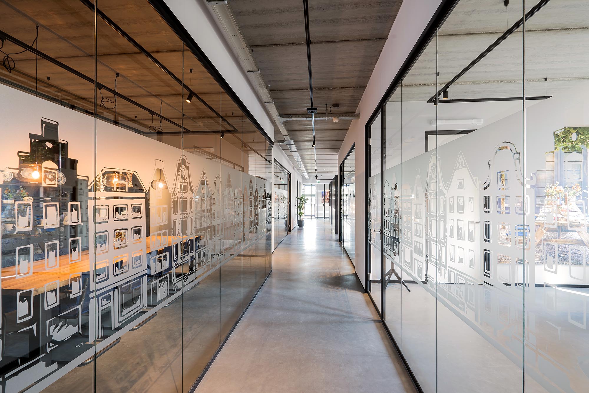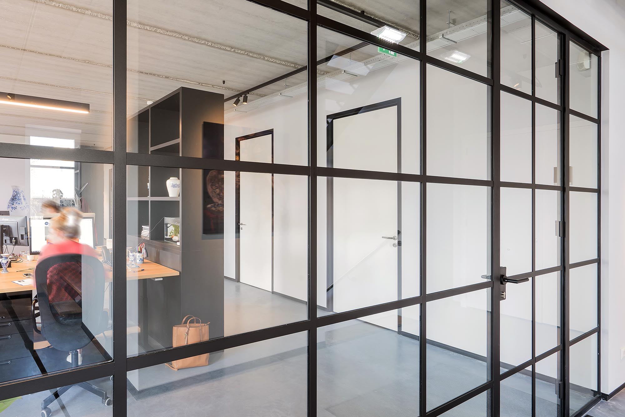 Onze glazen wanden uit de HGS-lijn zorgen voor voldoende daglicht en het kenmerkende folie zorgt