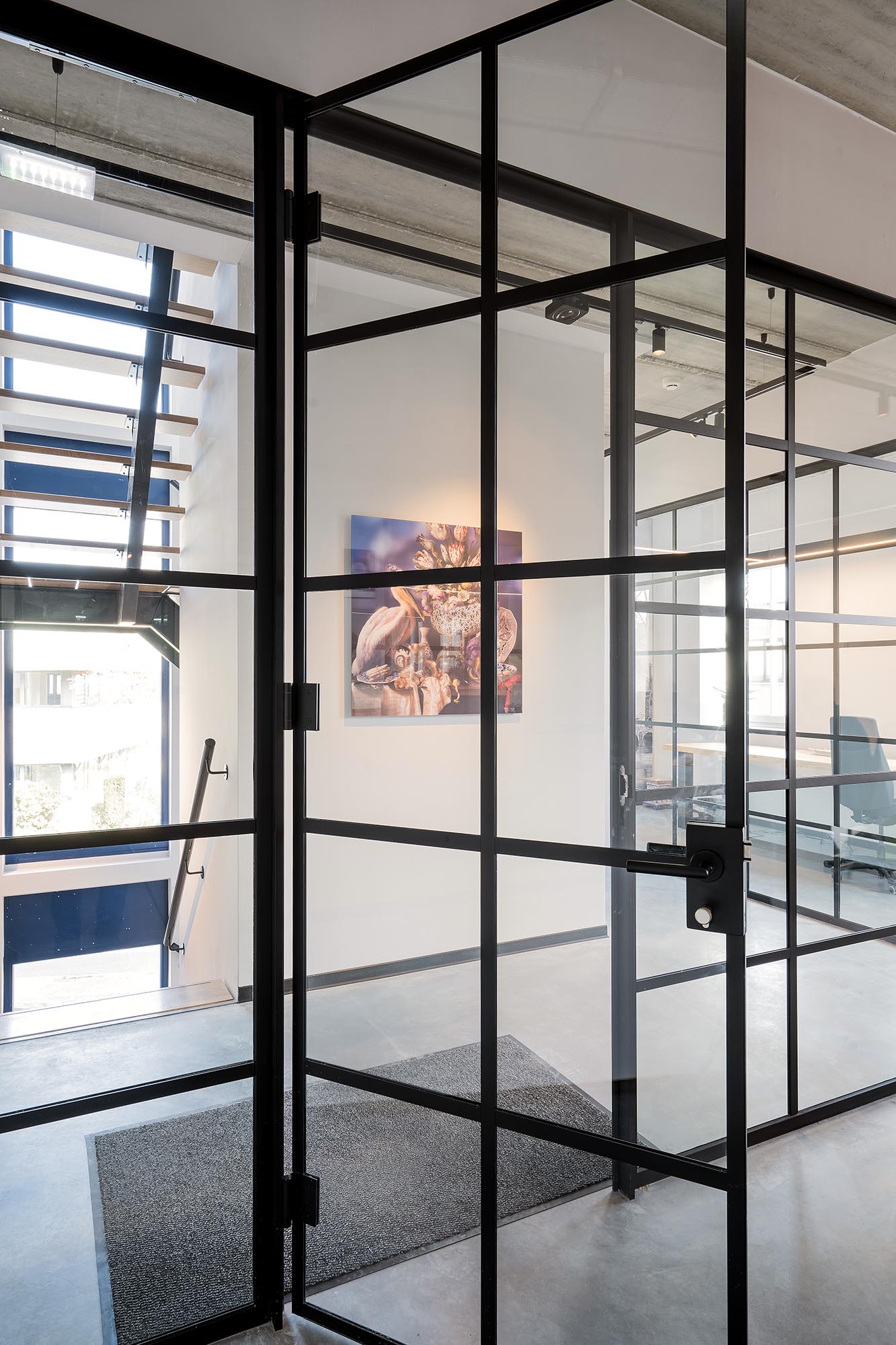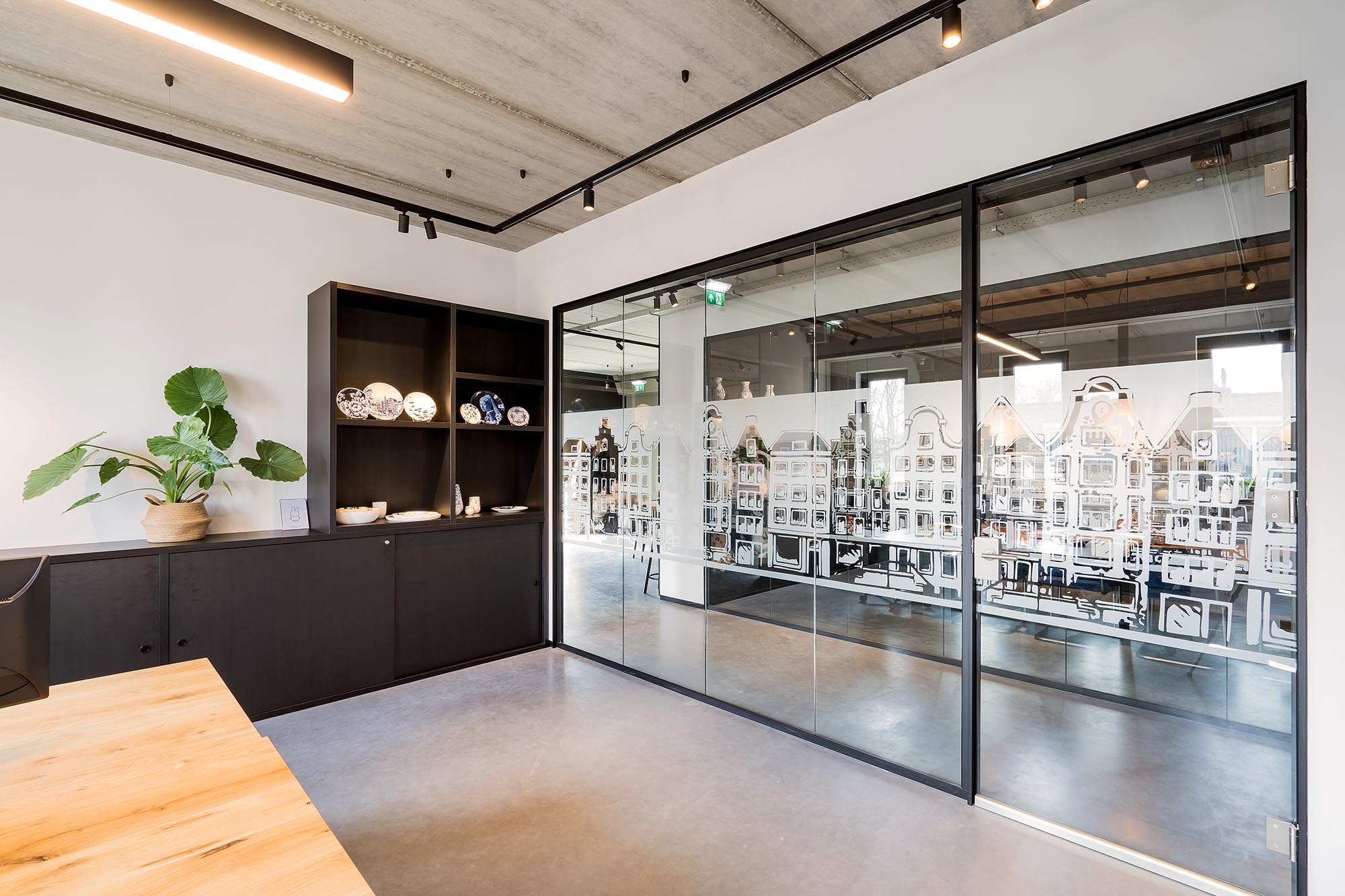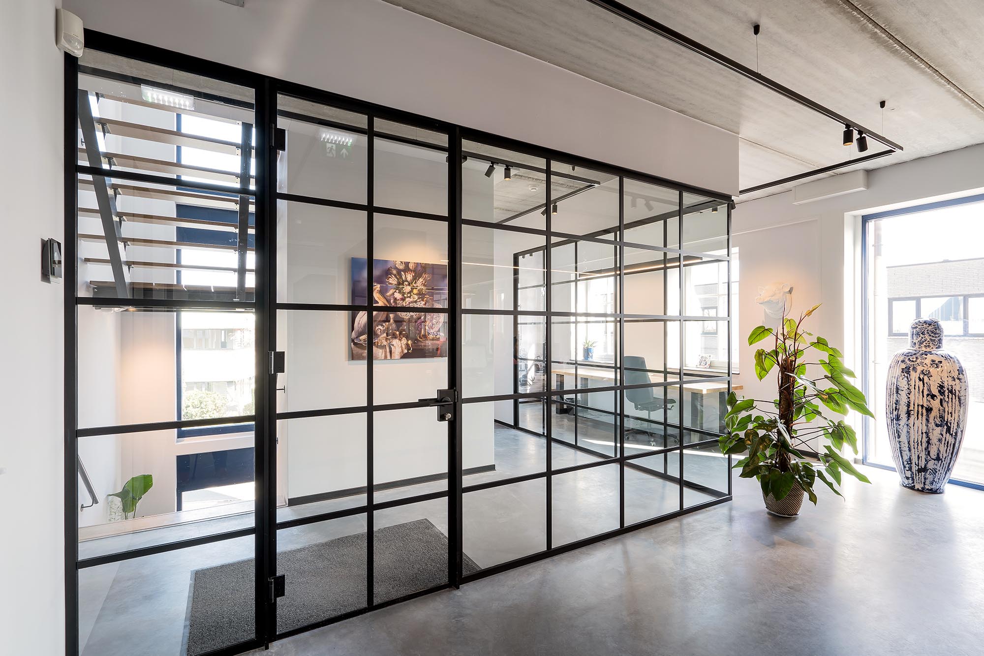 Onze glazen wanden uit de HGS-lijn zorgen voor voldoende daglicht en het kenmerkende folie zorgt