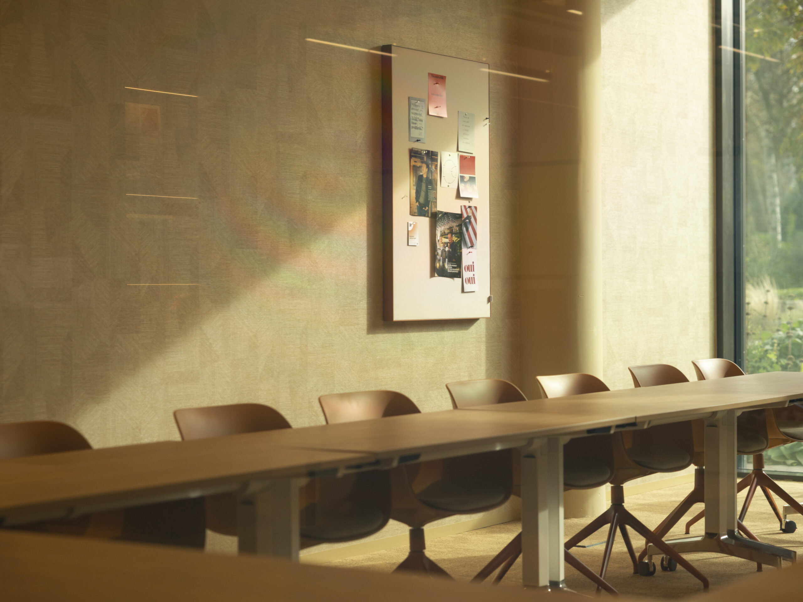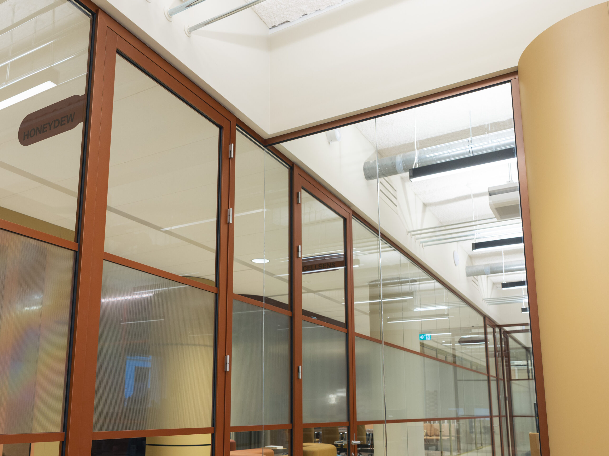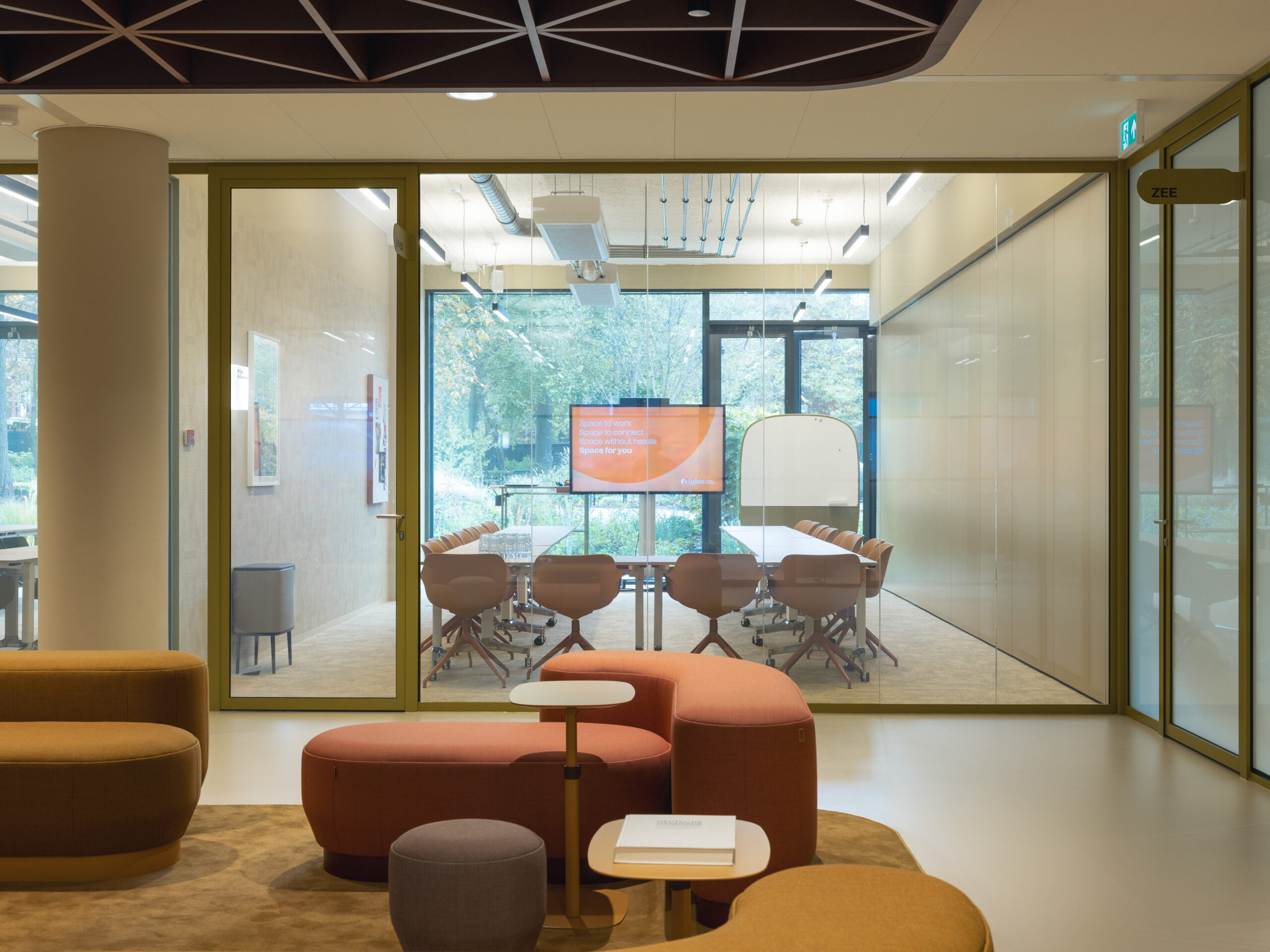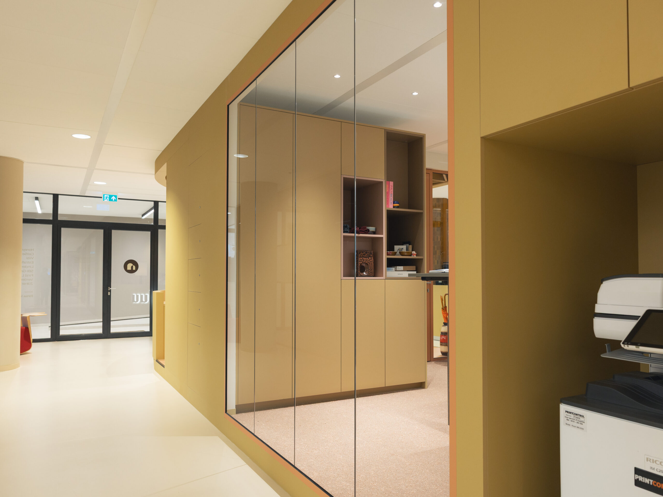 De unieke materialen en toepassingen vroegen om precisie tot in het kleinste detail. Beslissingen die vaak aan het eind van het proces komen, werden eerder vastgelegd in de ontwerpfase. Voor meer flexibiliteit in ruimtegebruik is een semi-automatische paneelwand geplaatst tussen twee vergaderruimten om een grotere opkomst te faciliteren. Bij het centrale blok in het midden is een personeelskeuken uit het zicht door een weggewerkte elektrische schuifdeur. Aanvullend werd voor het aanbrengen van Switchfoil International aan transparante wanden rekening gehouden met de techniek.