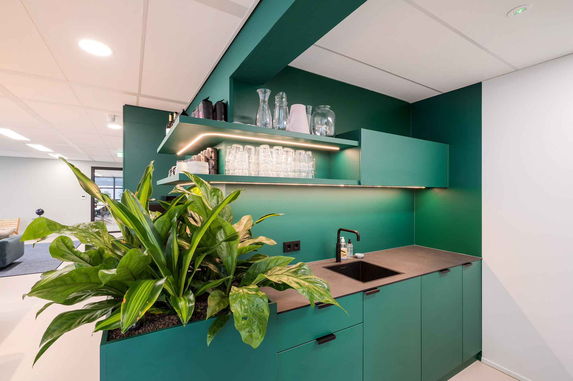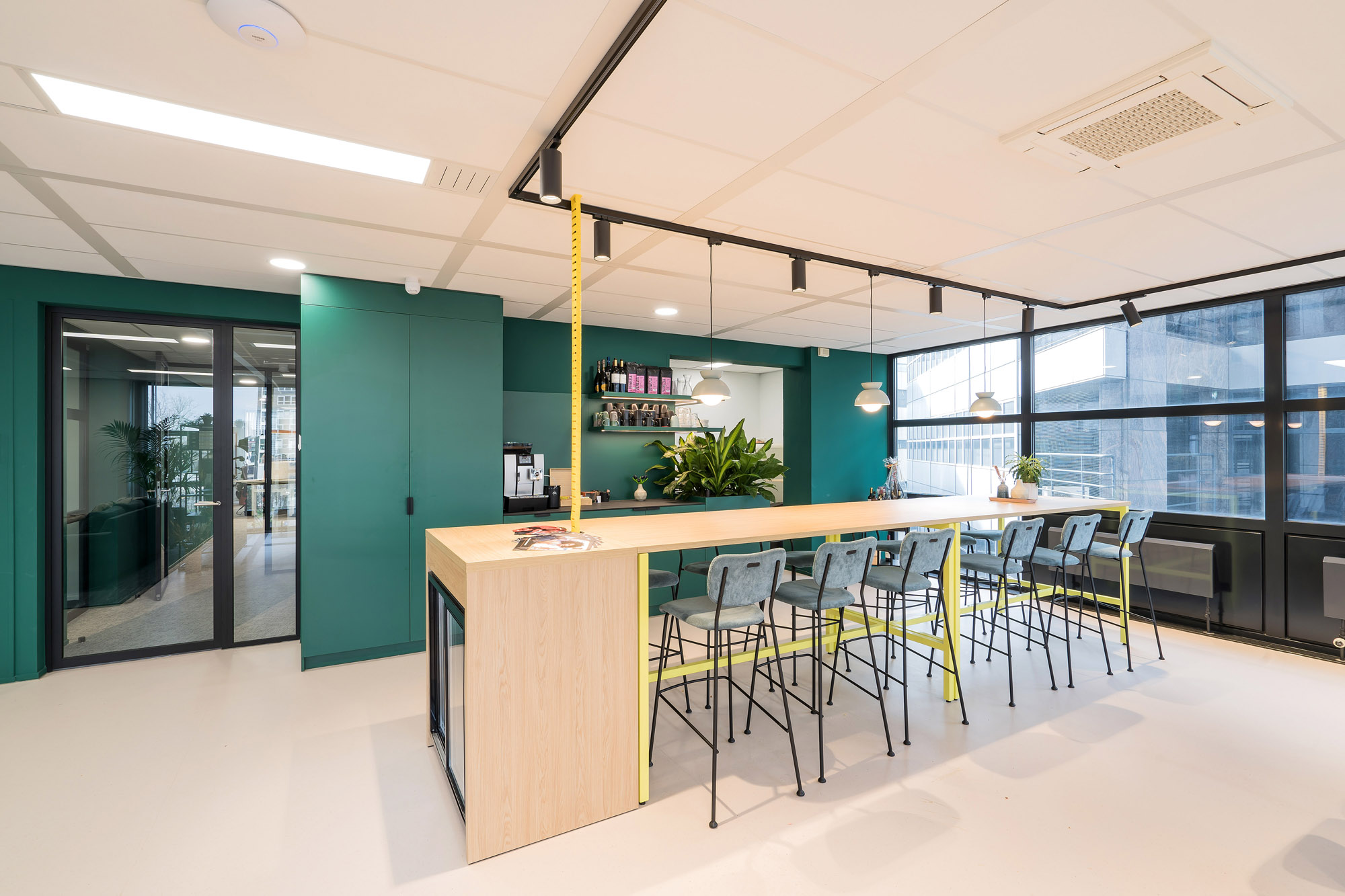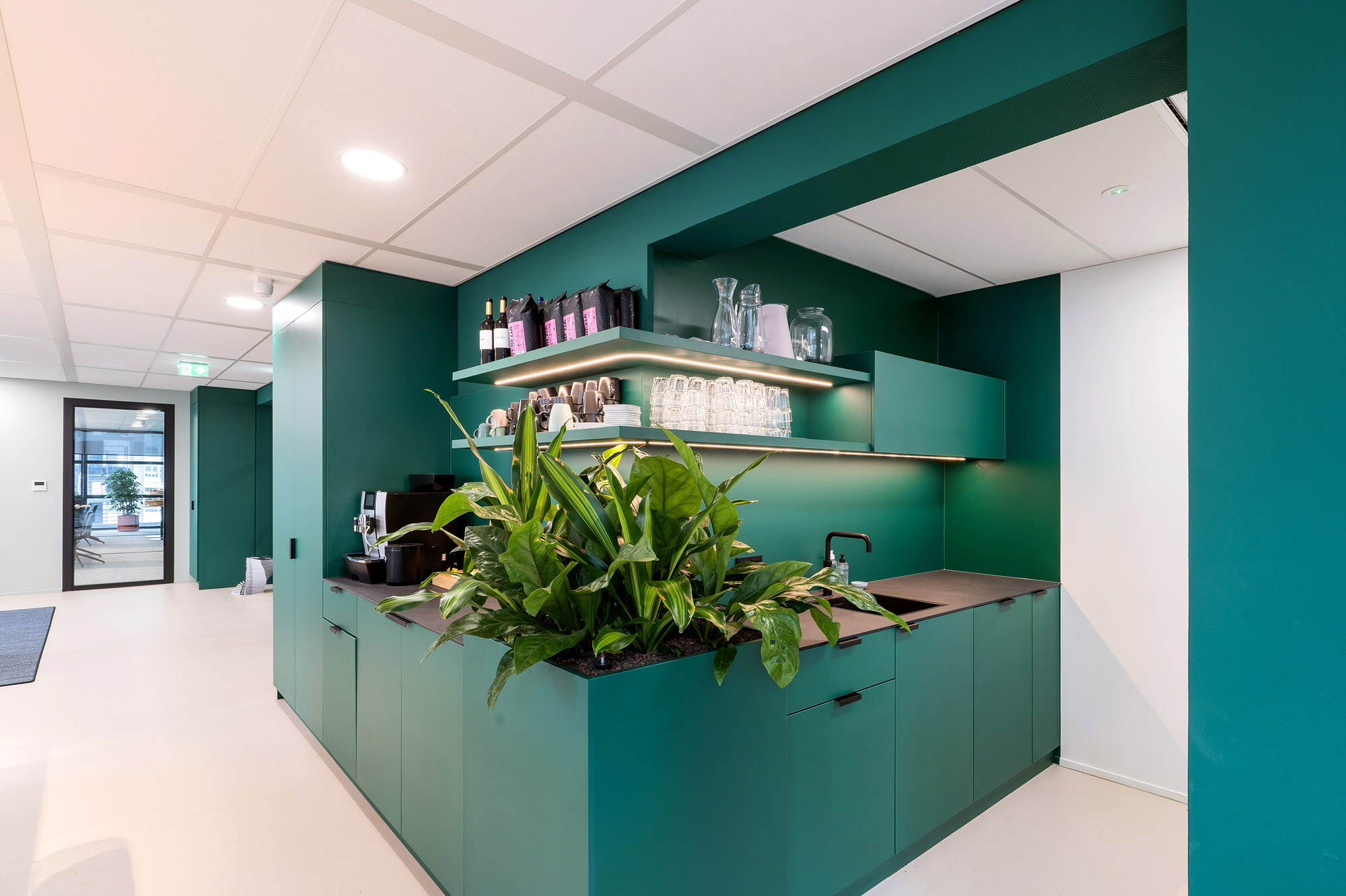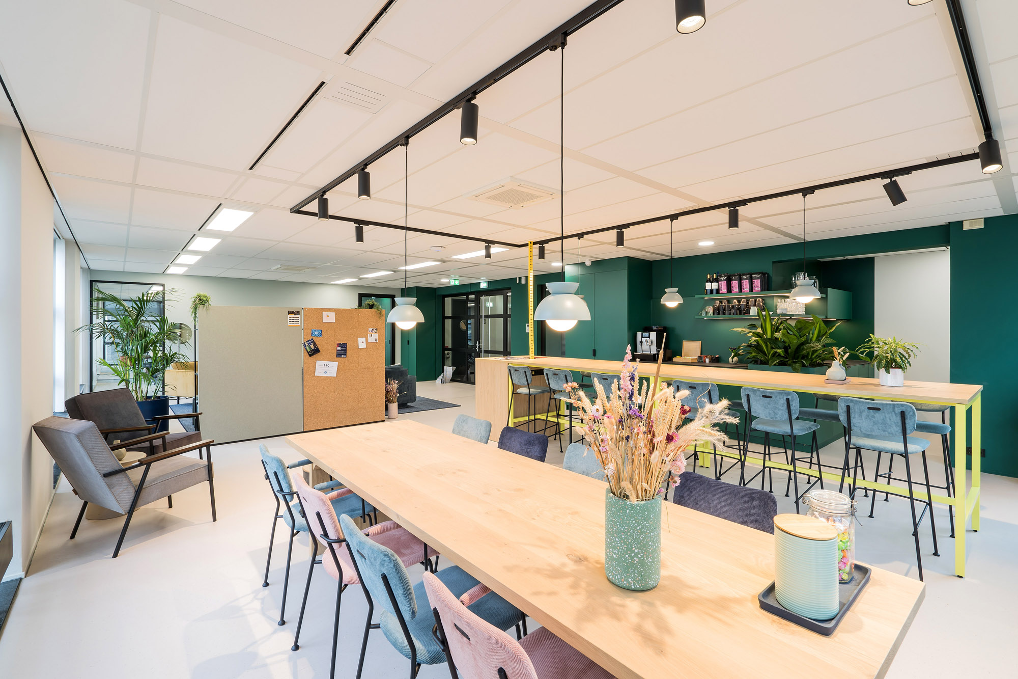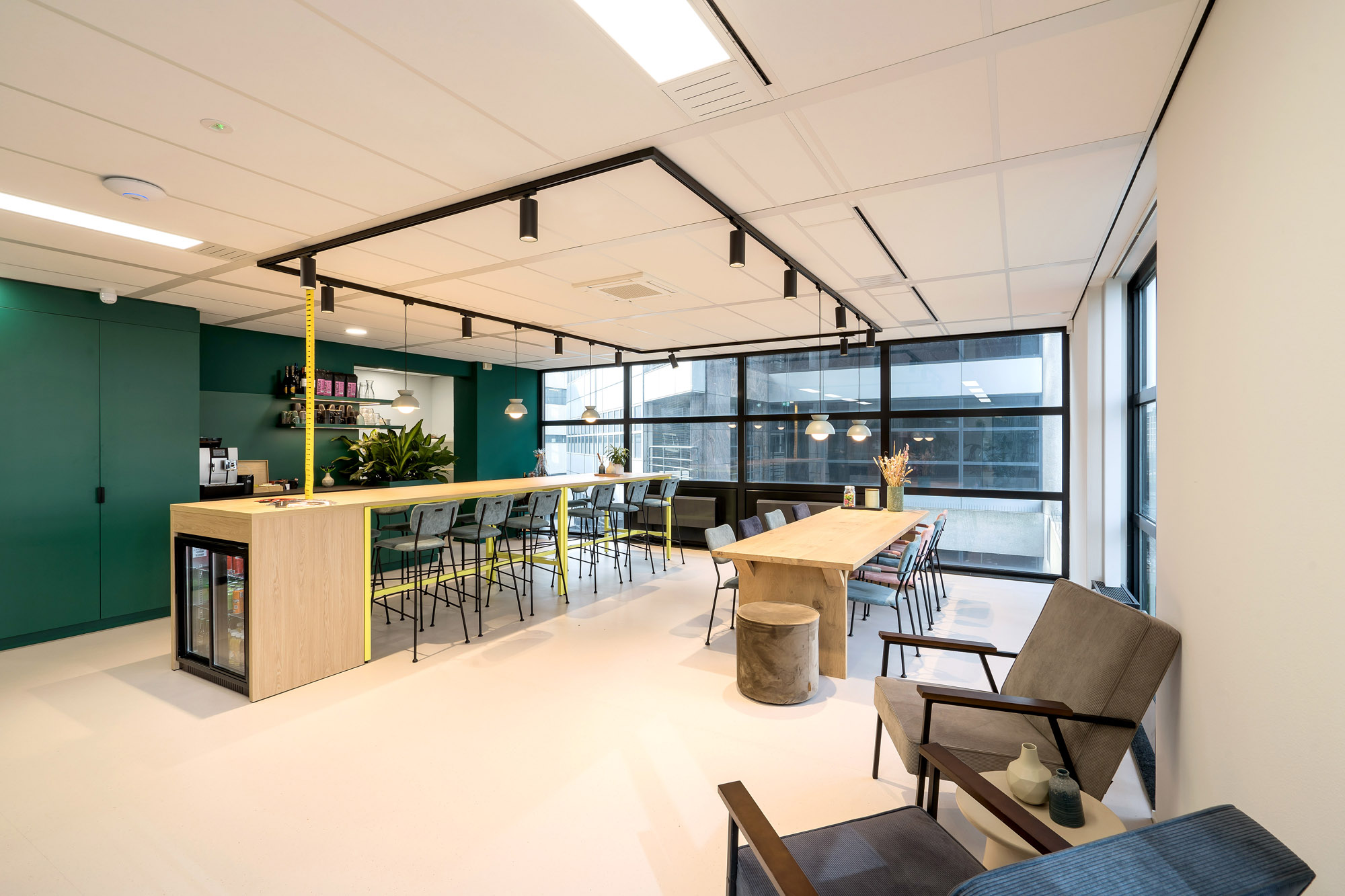 De maatwerk pantry’s en zitmogelijkheden zorgen voor een informele setting. De hoogwaardige vloerafwerking maken het geheel af voor een fijne werkomgeving voor Intelligence Group, Werf& en Academie voor Arbeidsmarktcommunicatie.