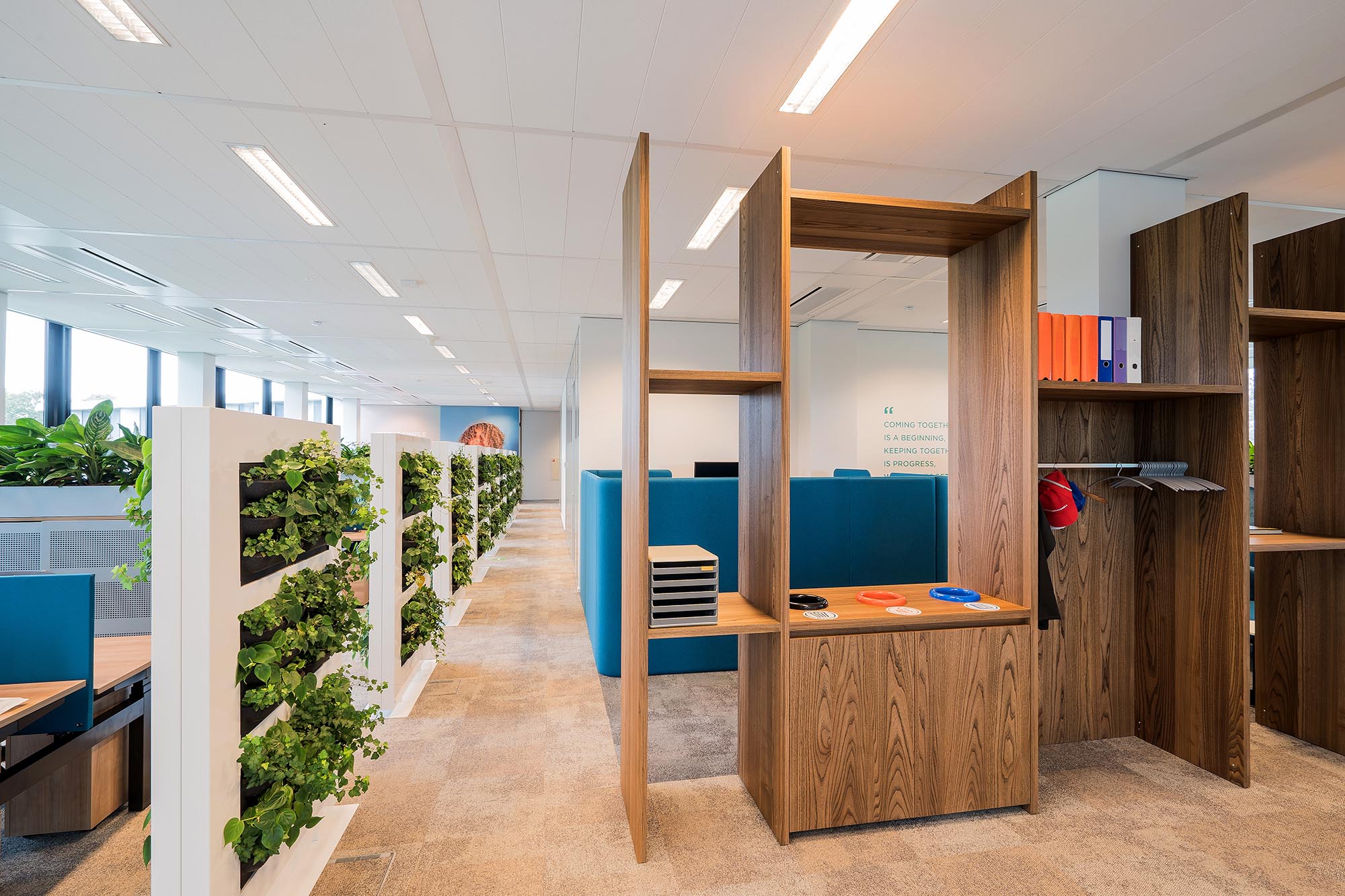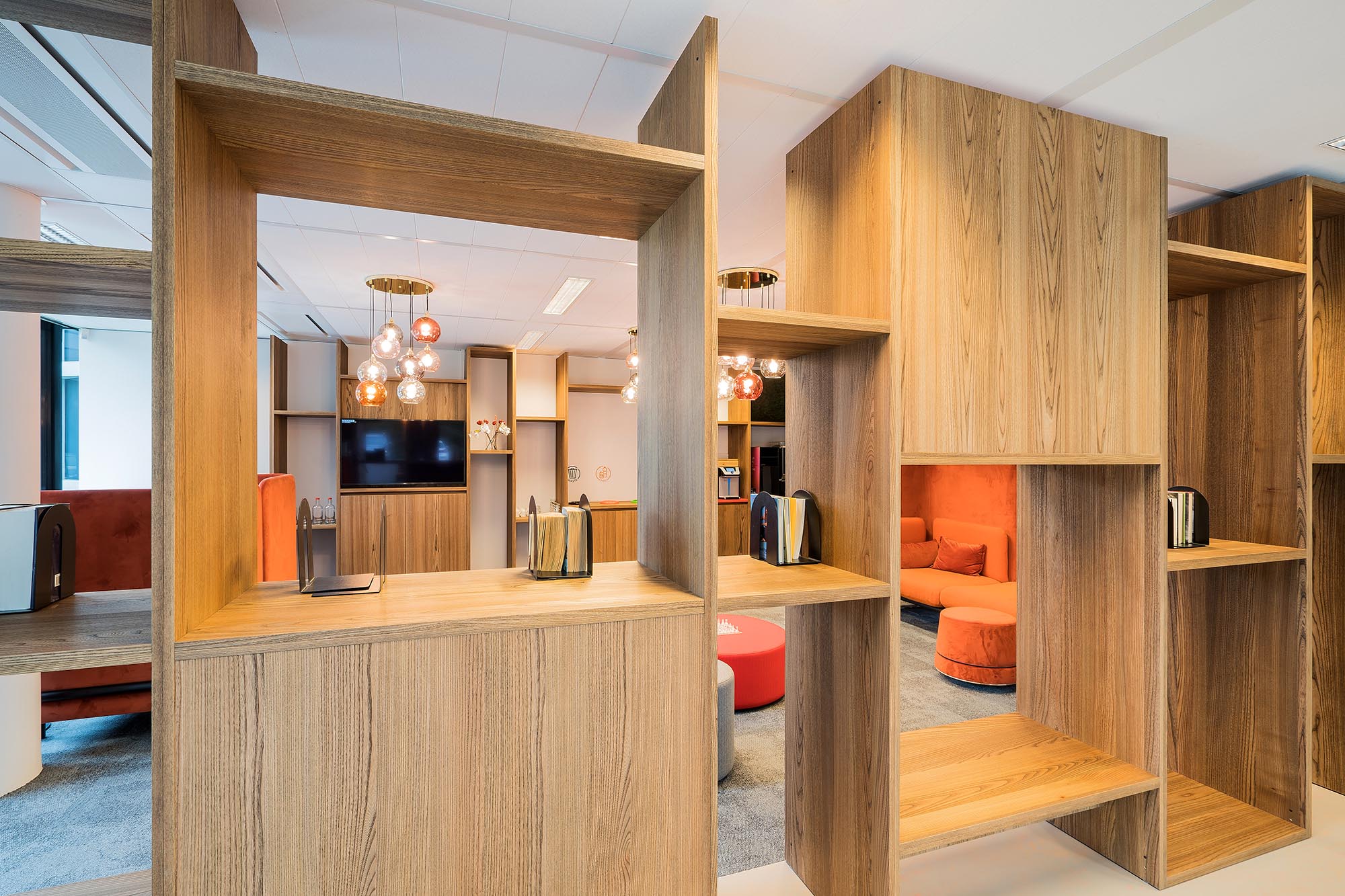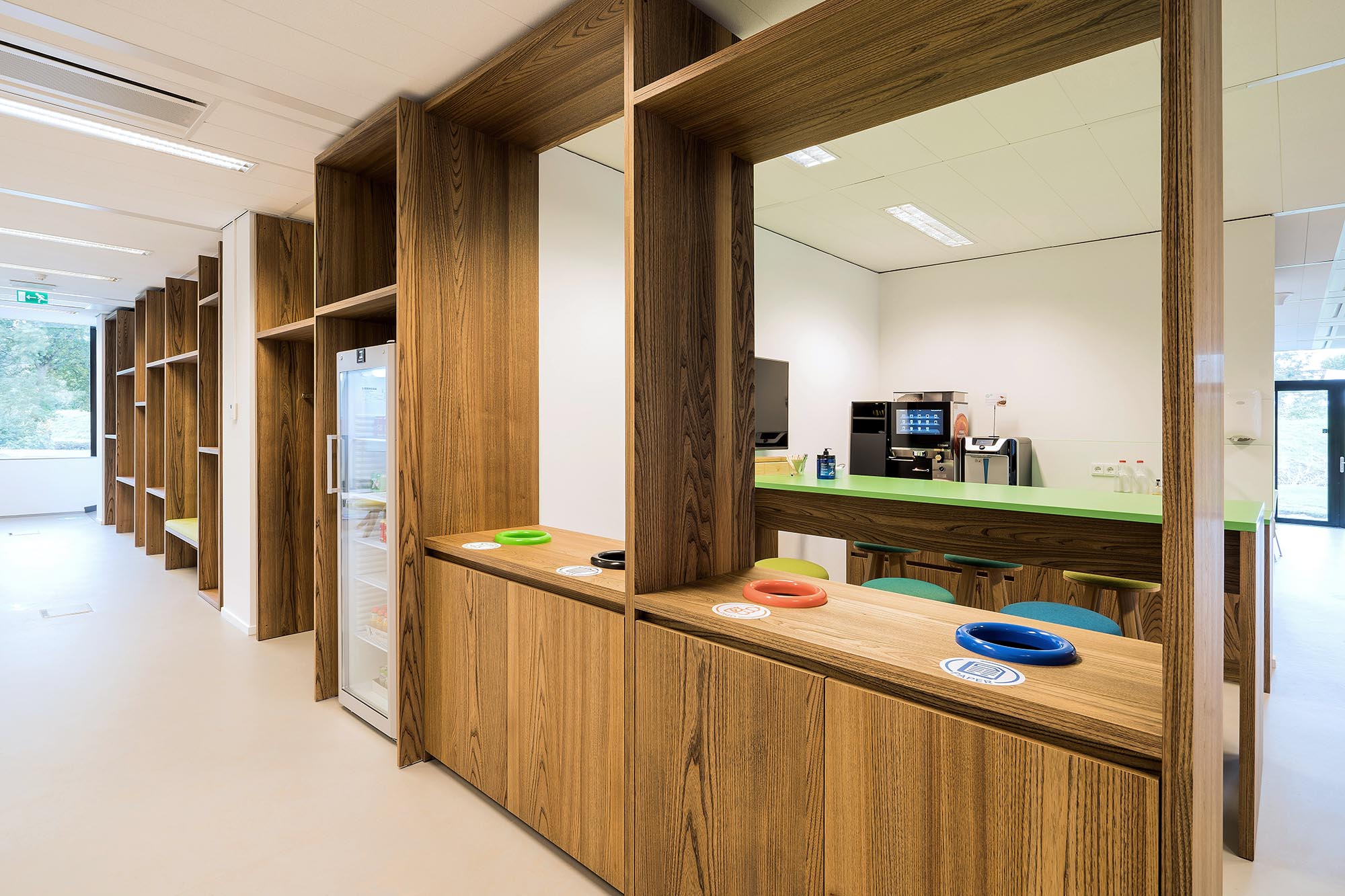 Geheel volgens het bestaande ontwerp is het complete kantoorpand voorzien van maatwerk oplossingen. Het door ons geproduceerde maatwerk draagt sterk bij aan de door de gebruiker gewenste warme sfeer. De kasten met geïntegreerde zitjes, pantry’s en afval-units zorgen voor eenheid over de verschillende afdelingen en functionaliteit. In combinatie met de vloerafwerking en het strakke schilderwerk voldoet het resultaat volledig aan de verwachting van onze opdrachtgever, en daar is het ons uiteindelijk om te doen.