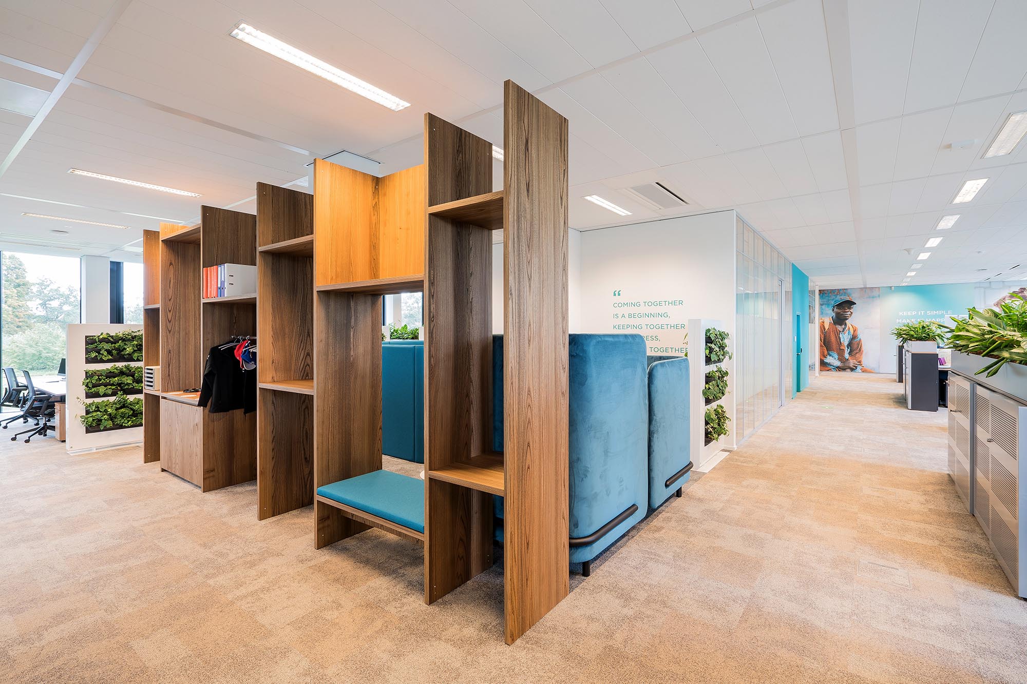 Het Nederlandse kantoor van een grote internationale organisatie was qua inrichting hard aan vernieuwing toe, waarbij met het oog op het milieu gestreefd is naar zo veel mogelijk hergebruik van bestaande materialen. Na een uitgebreide Tenderprocedure heeft Intermontage op basis van Plan van Aanpak en een passende projectplanning deze uitdagende metamorfose mogen uitvoeren.
