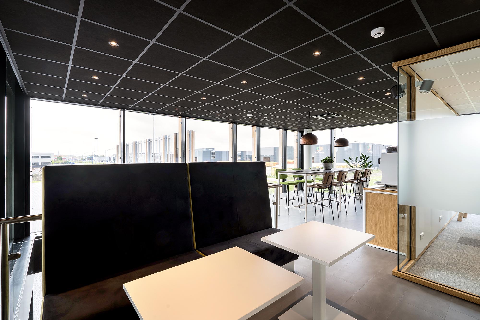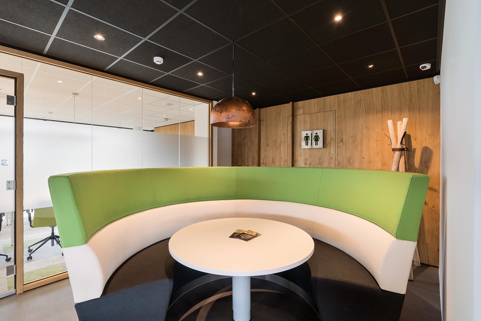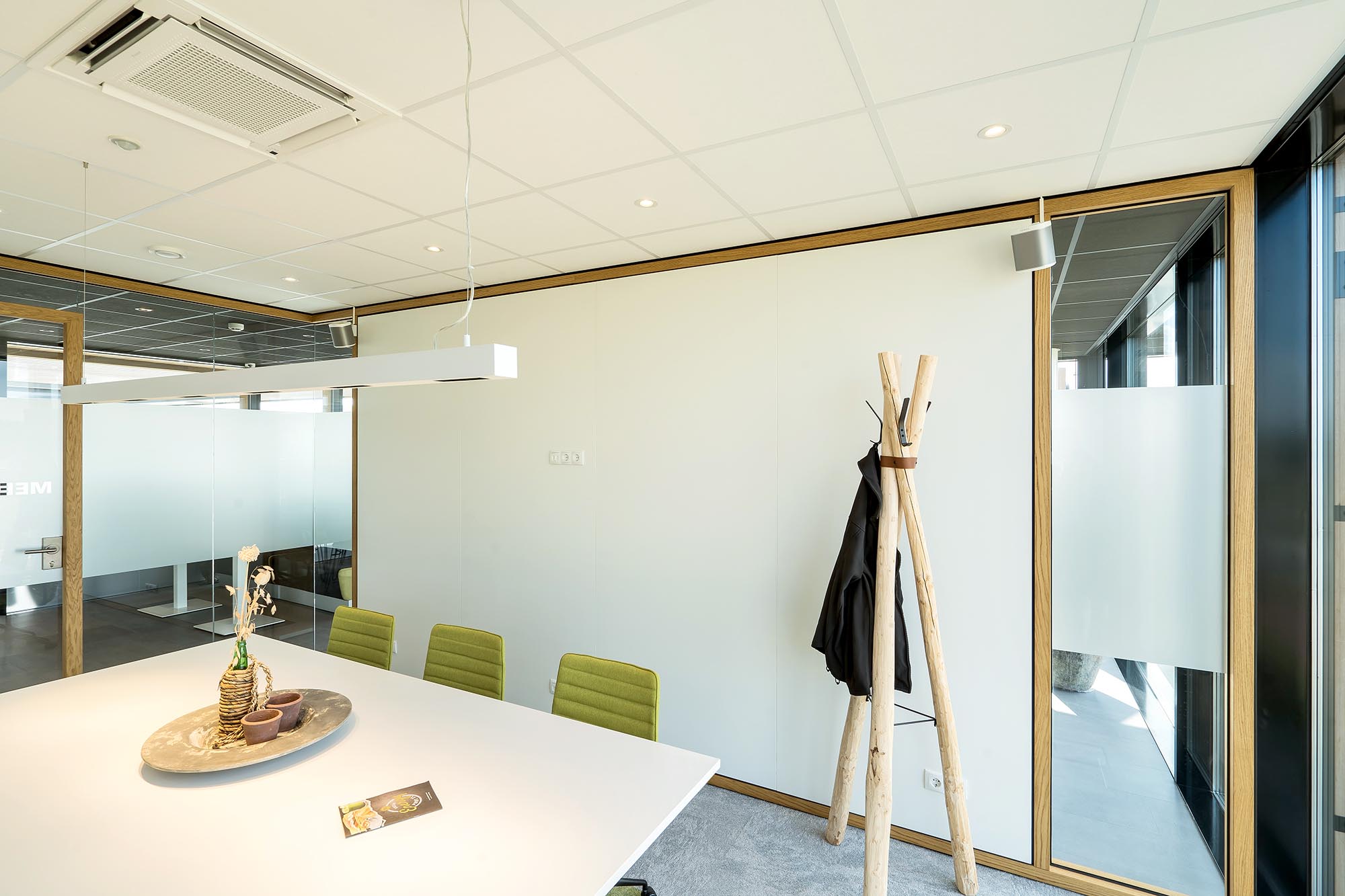 Niet alleen de systeemwanden, mobiele paneelwanden en plafonds zijn door ons gerealiseerd. Onze maatwerk afdeling heeft ervoor gezorgd dat het volledige interieur een geheel vormt, waar de klant graag wil verblijven.