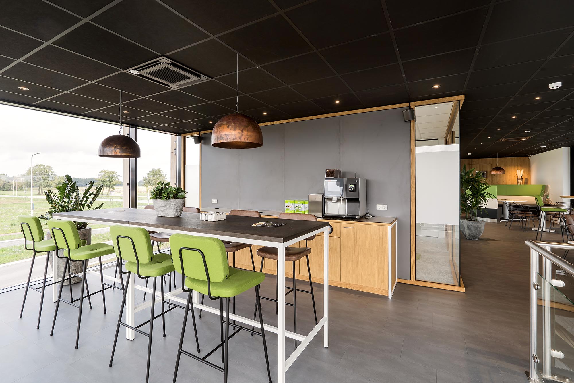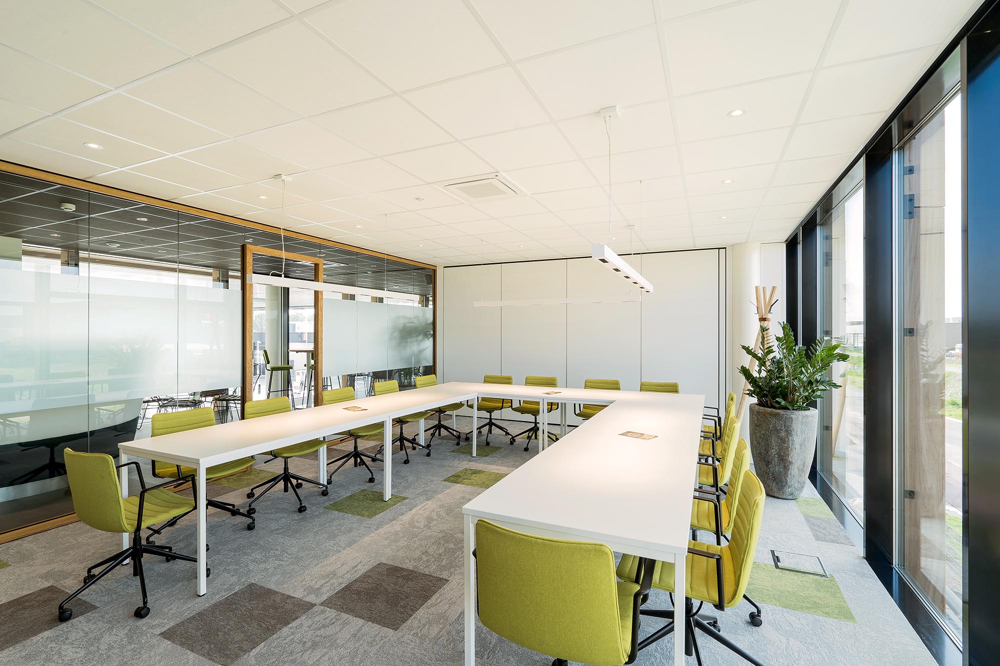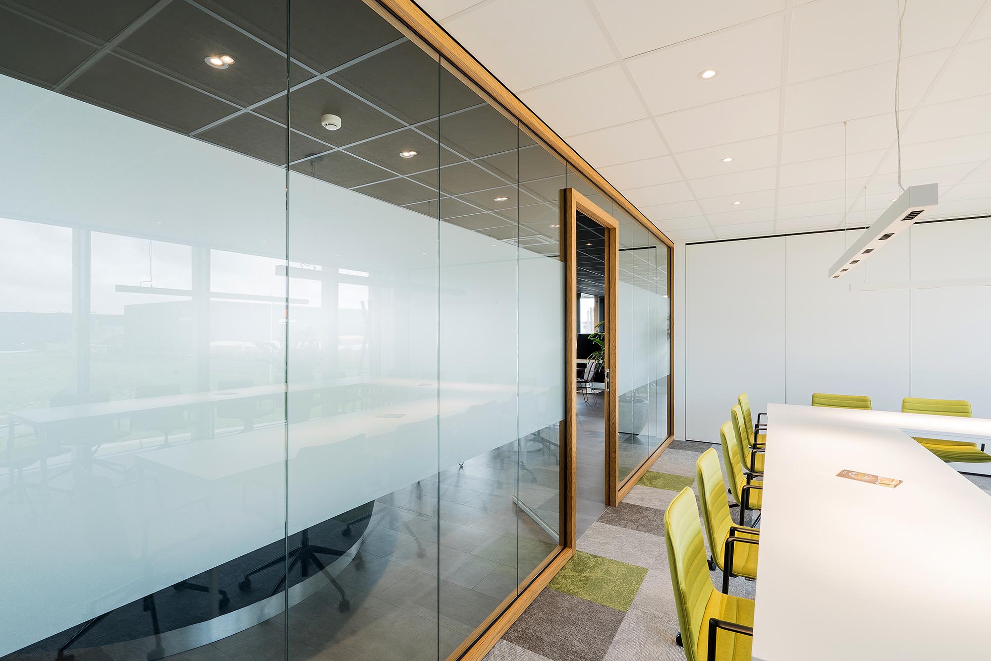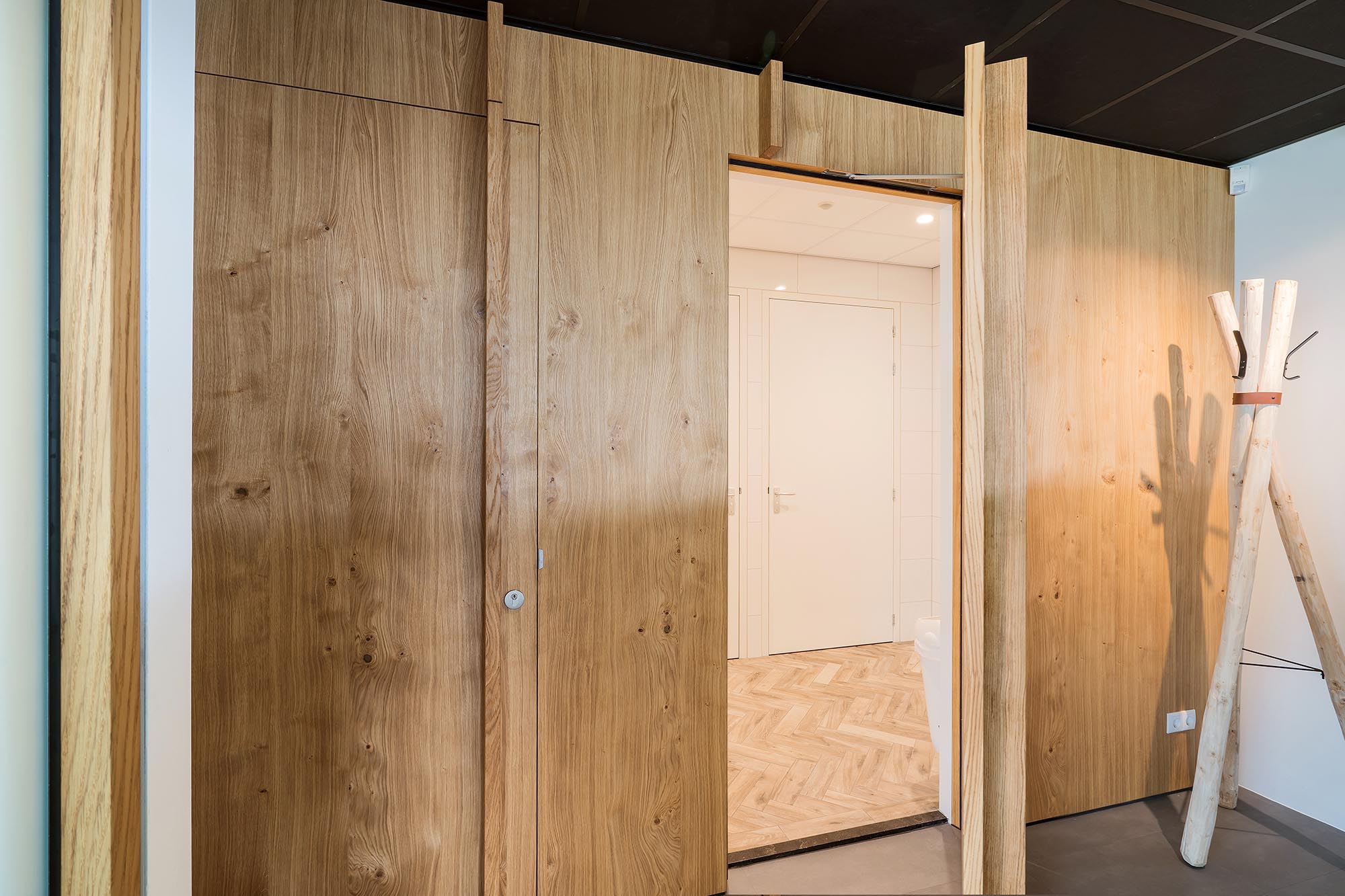 Niet alleen de systeemwanden, mobiele paneelwanden en plafonds zijn door ons gerealiseerd. Onze maatwerk afdeling heeft ervoor gezorgd dat het volledige interieur een geheel vormt, waar de klant graag wil verblijven.