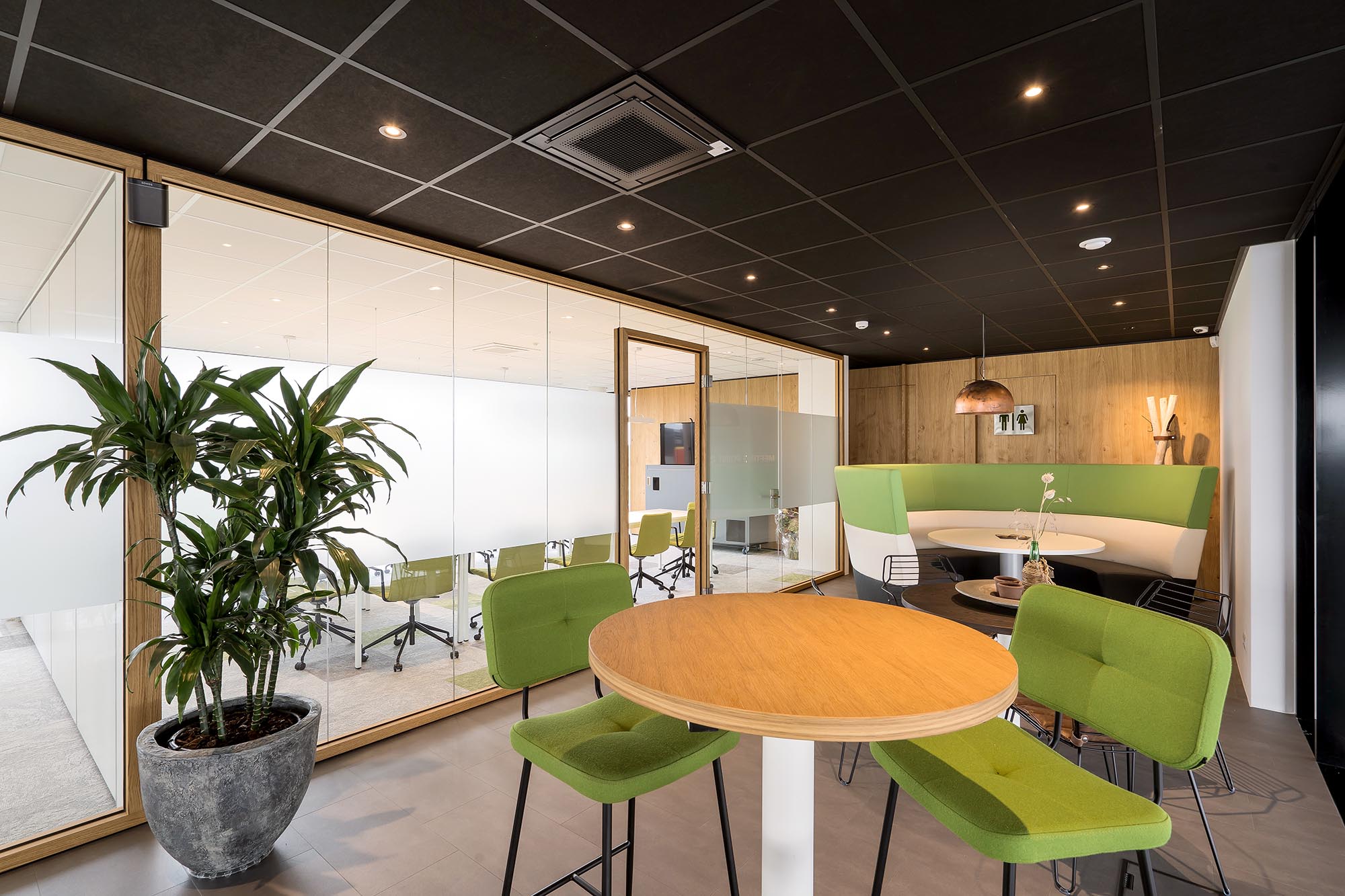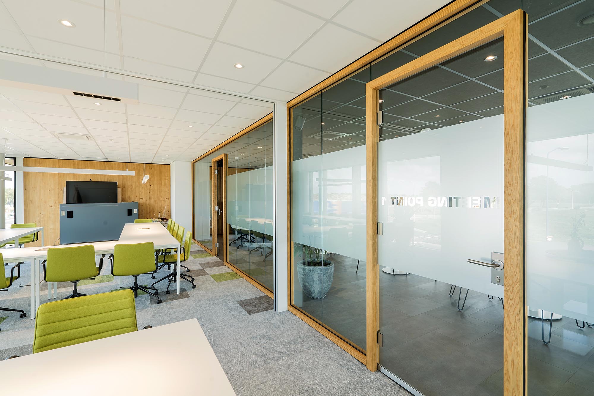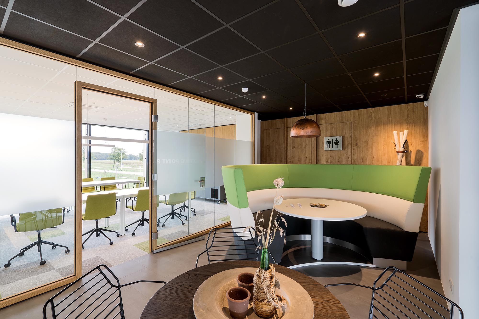 Met een bezoek aan ons Interieurcentrum in Terwolde werd voor Kuster Olie al snel duidelijk hoe het ontwerp van de vergaderruimten en toiletten zou moeten worden. Met de WoodFrame glaswanden en bijpassende gesloten systeemwanden als basis is er in Groenlo een mooi samenhangend en sfeervol concept neergezet: Kuster Energy Point.