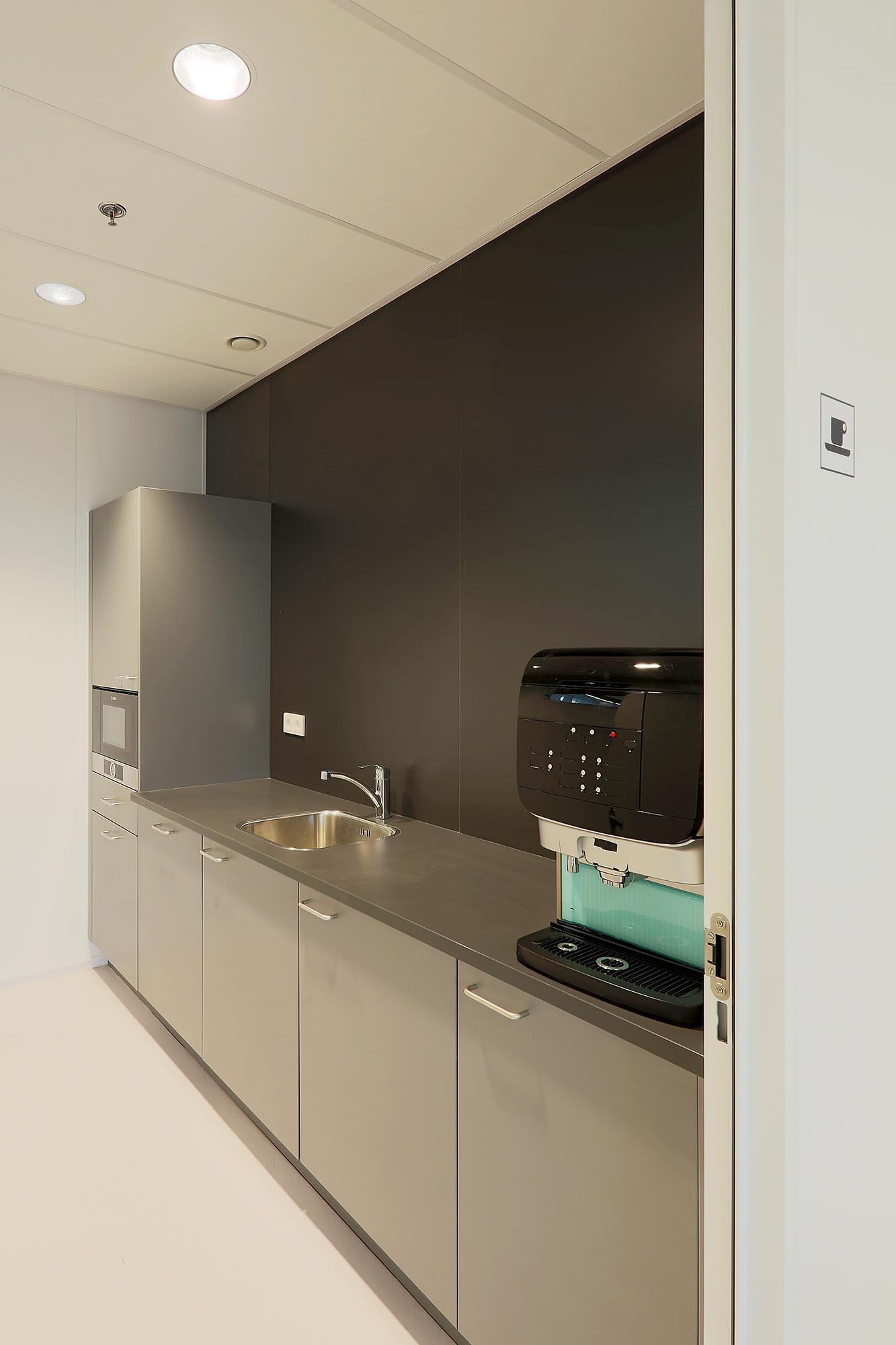 Intermontage Interieurbouw (onze interieurbouwafdeling) realiseerde de maatwerk koven, compleet ingerichte pantry’s voorzien van apparatuur en koffiemachines en een uitnodigende receptie. Daarmee zijn de puntjes op de i gezet van dit prachtige en zeer uitdagende totaalproject.