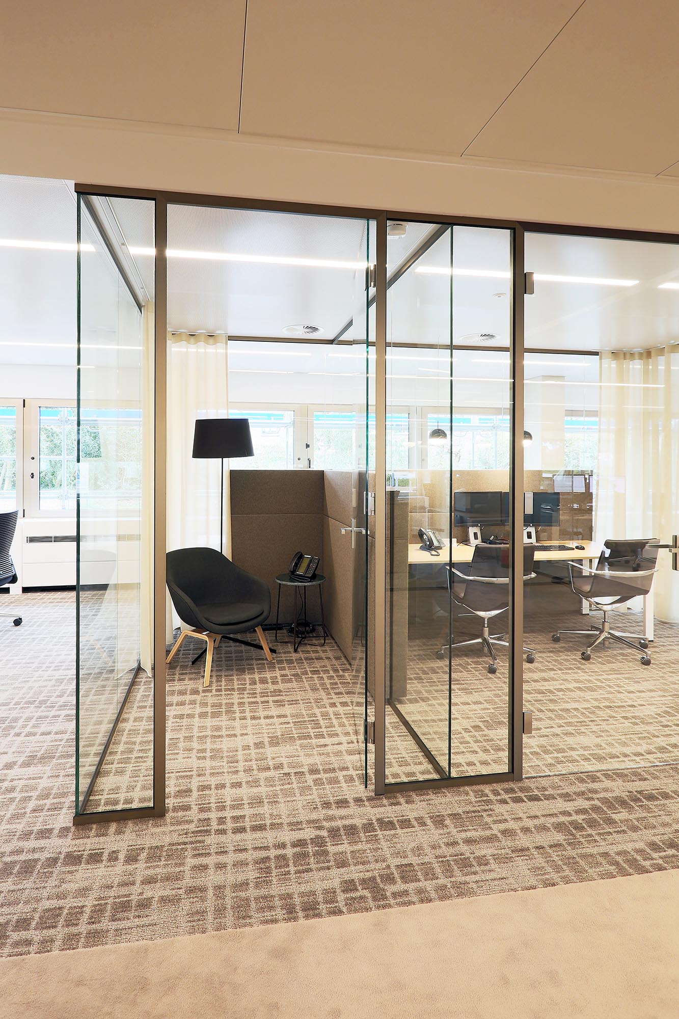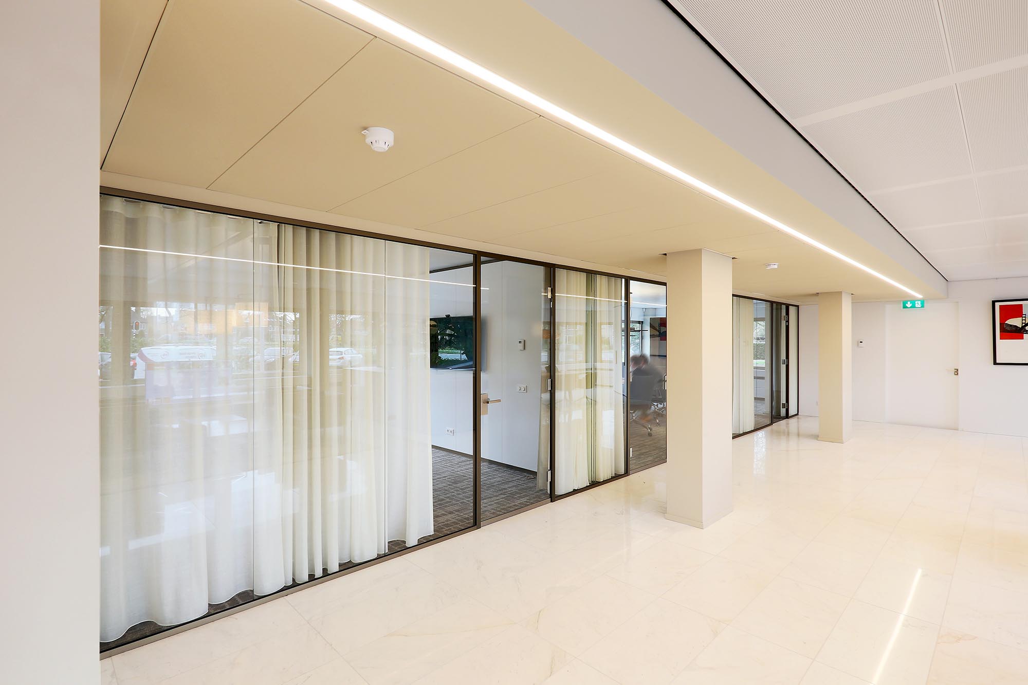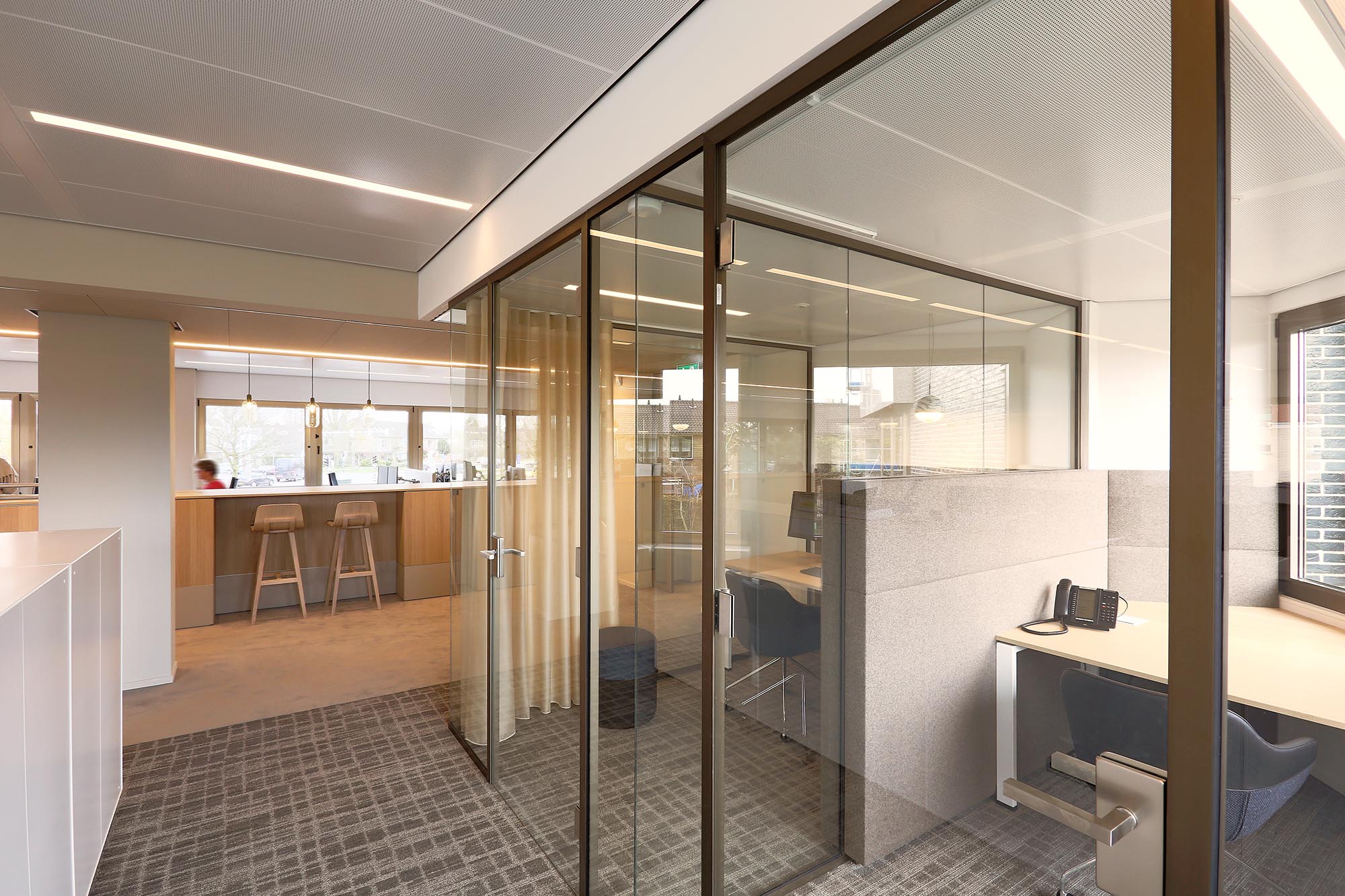 Glaswanden met akoestische wandbekleding