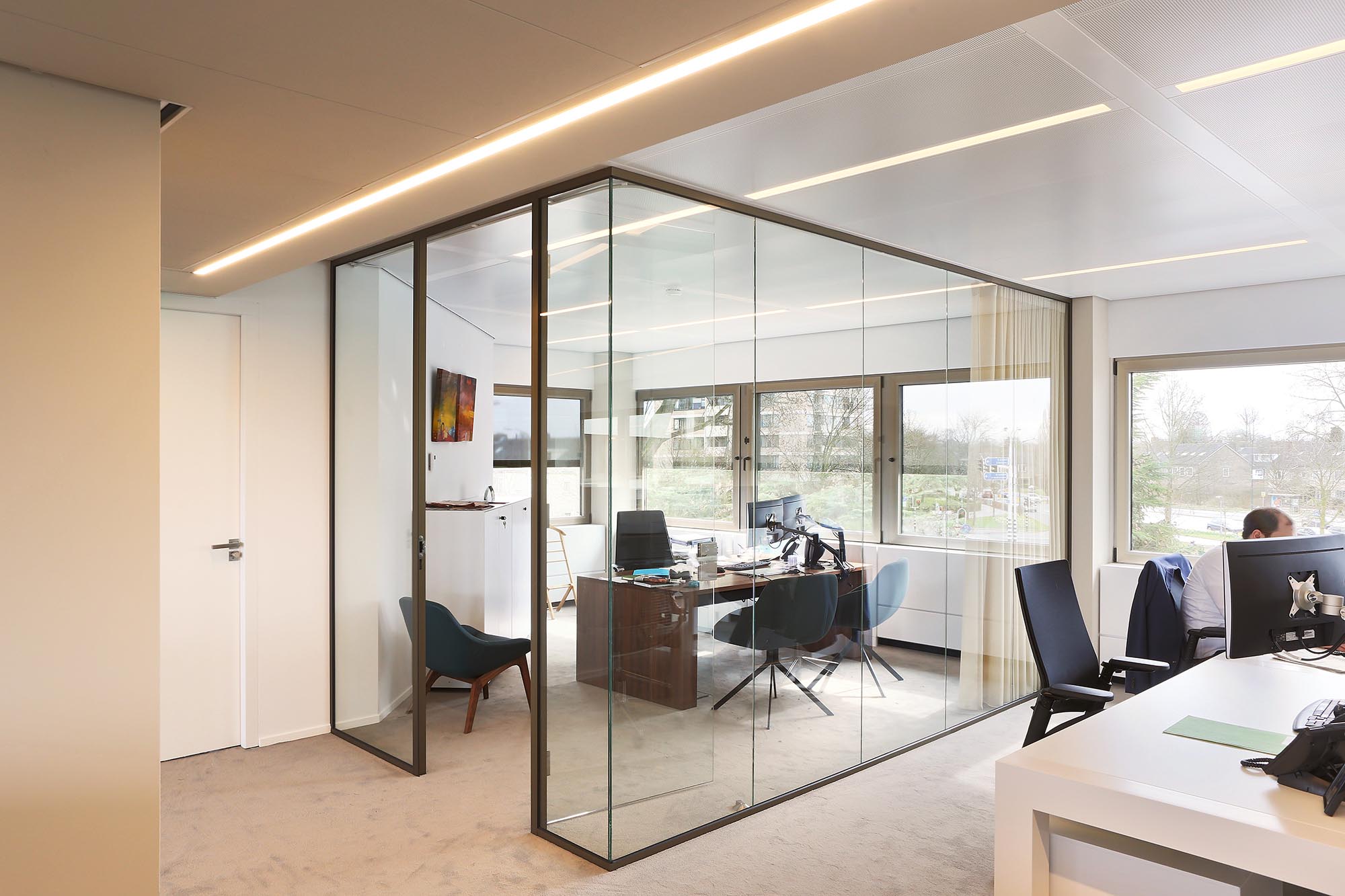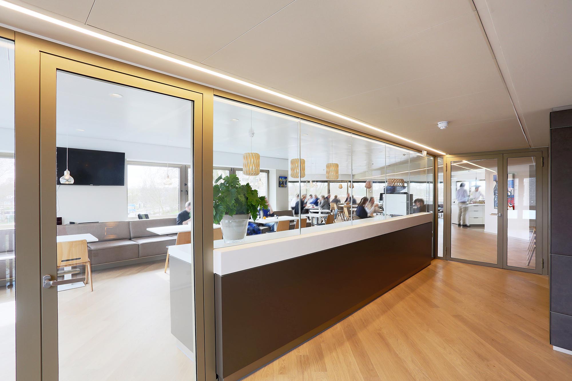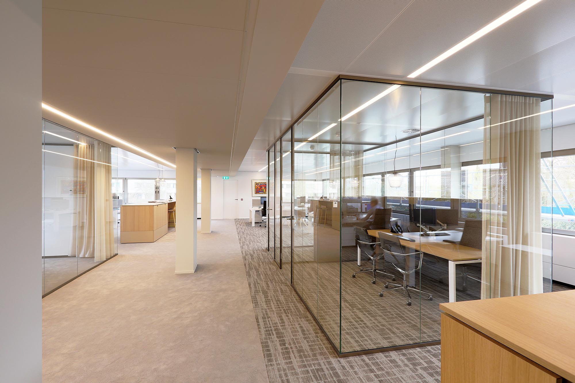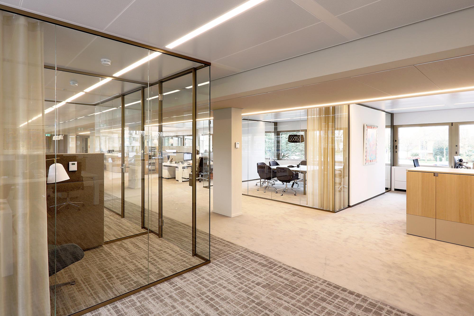 Glaswanden met akoestische wandbekleding