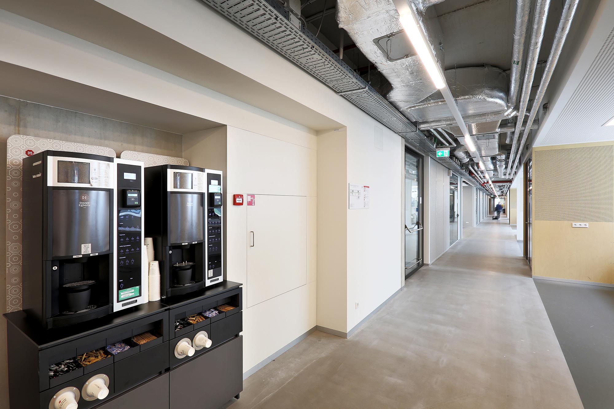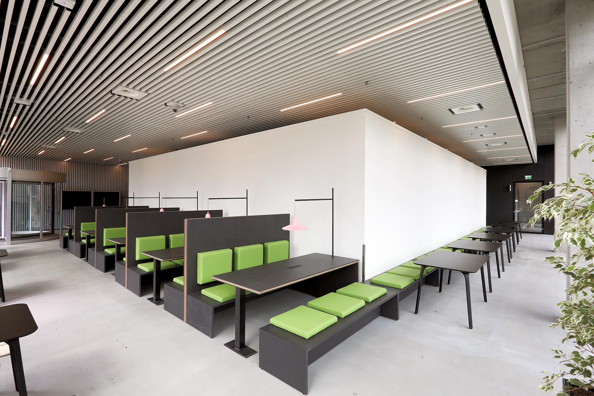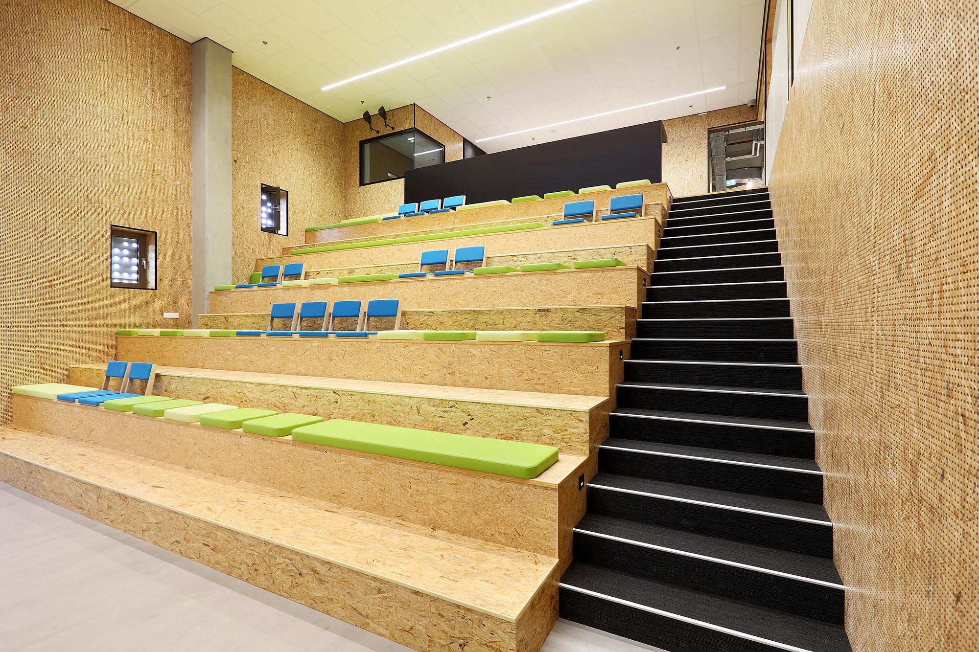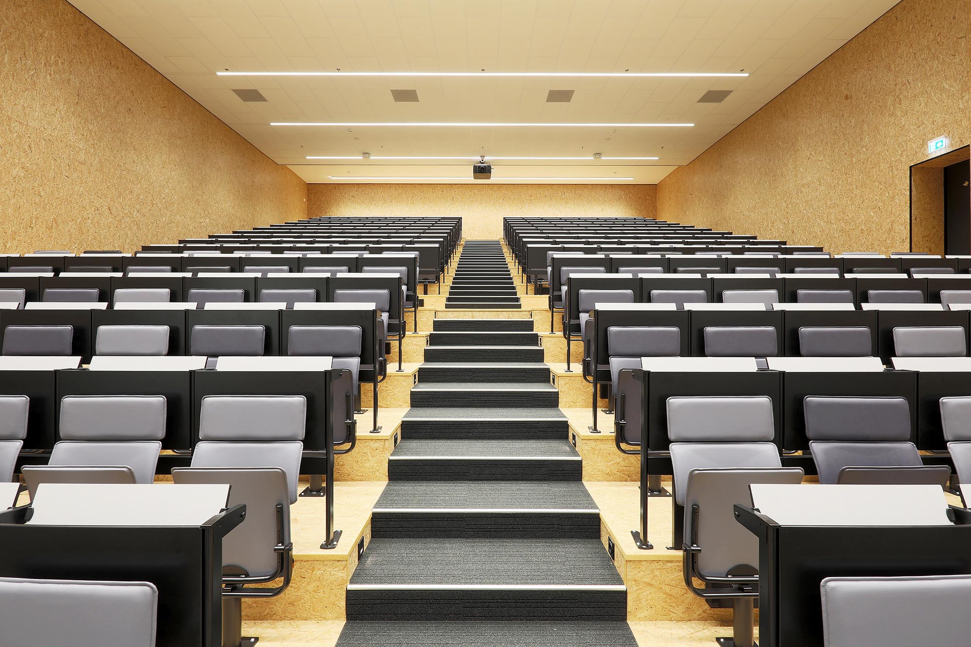 Met meer dan 11.000 studenten en bijna 1000 medewerkers die gebruik maken van de nieuwbouw, stelt dit hoge eisen aan de toe te passen materialen op het gebied van geluidsisolatie en akoestiek. Door de combinatie van geluidsisolerende glazen HGS wanden en geperforeerde akoestische wanden in het atrium en de gangen, is zowel transparantie als een prettig akoestisch klimaat gecreëerd. De concentratiewerkplekken op de gangen zijn maatwerkoplossingen, waarbij de gebruiker ongestoord kan werken in drukke verkeersruimten.