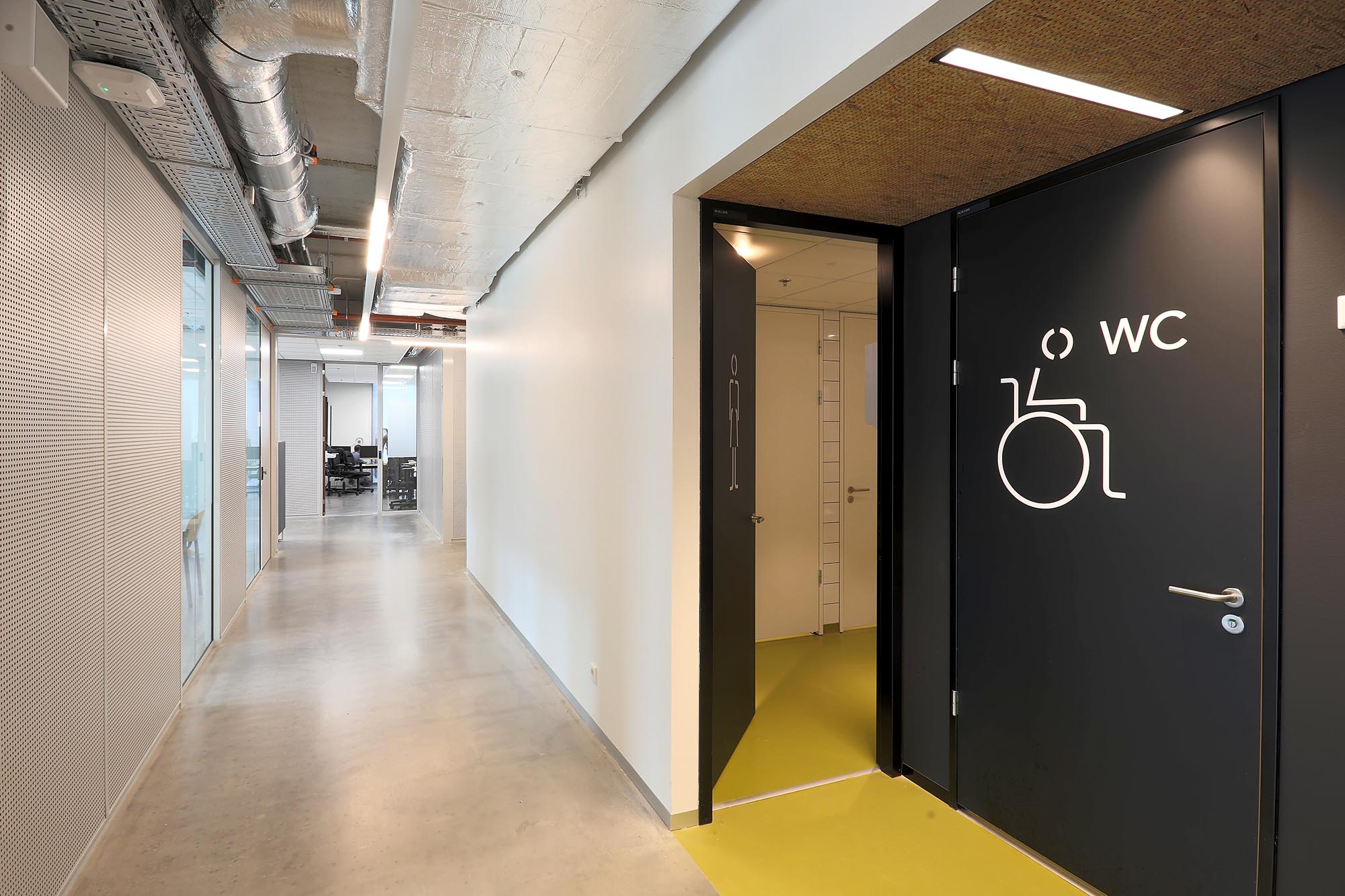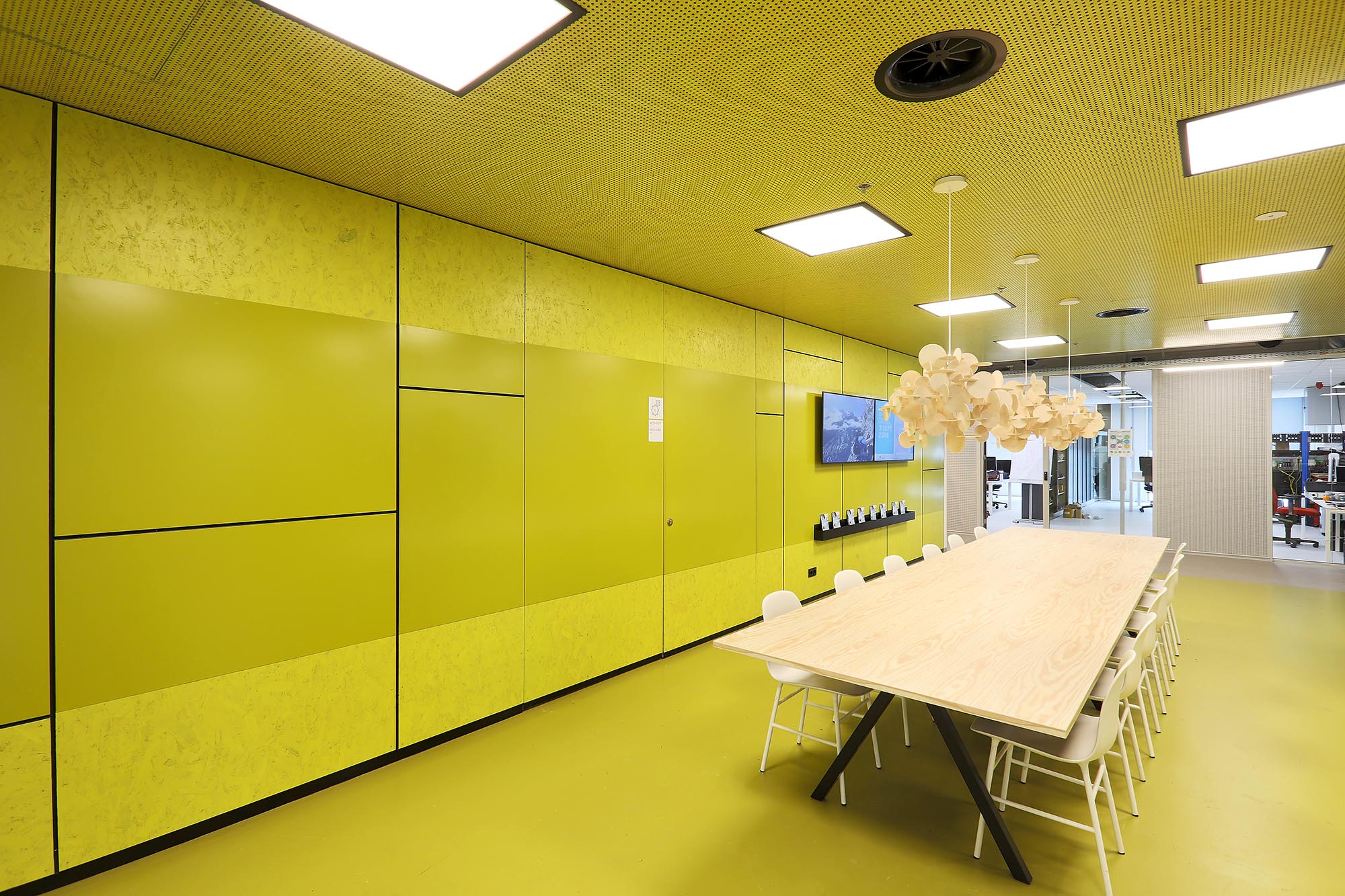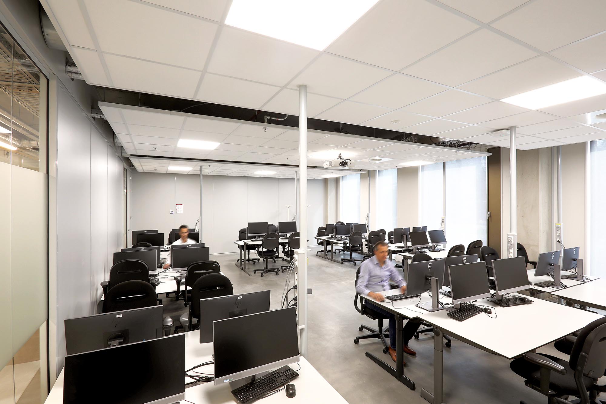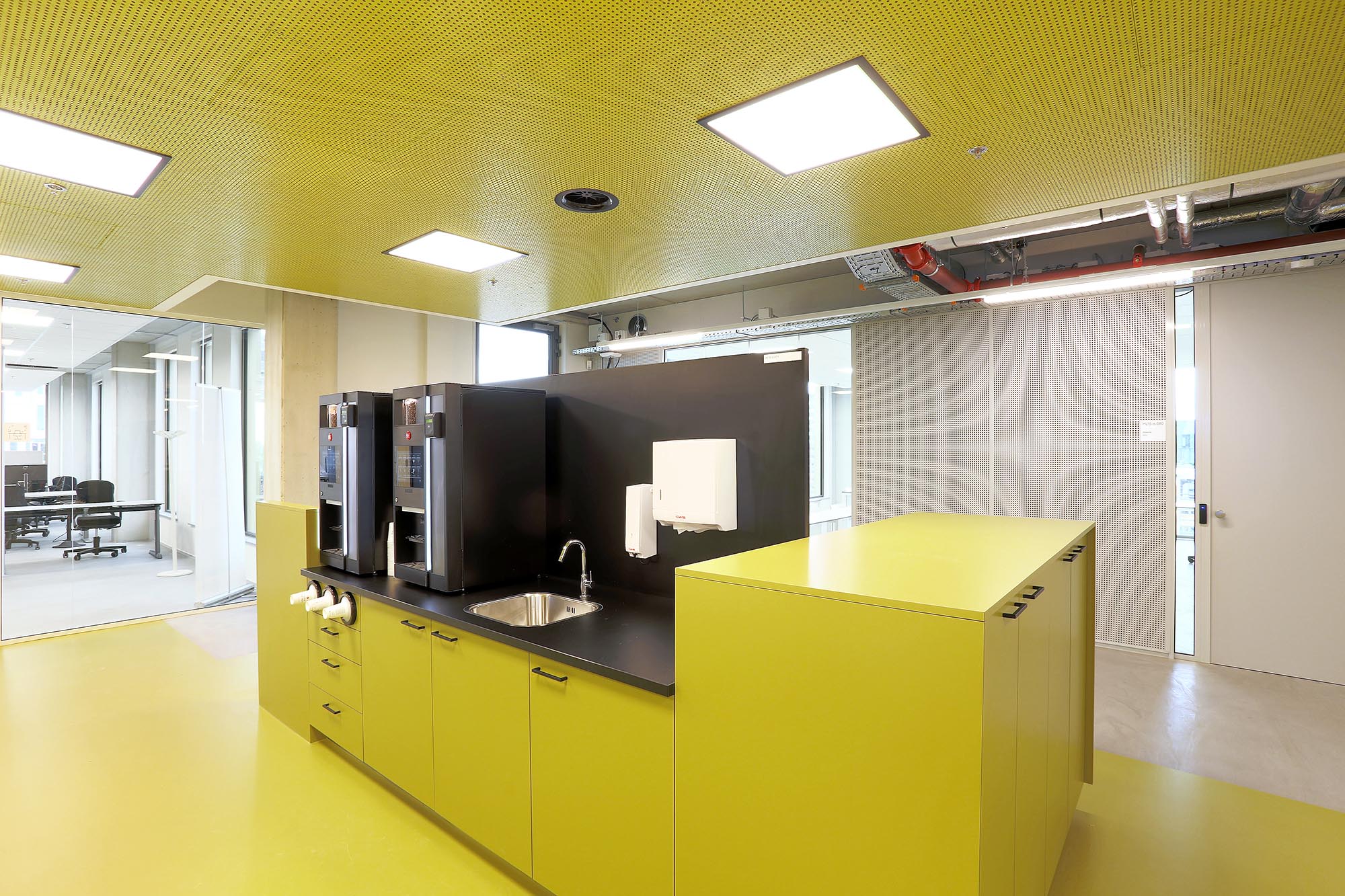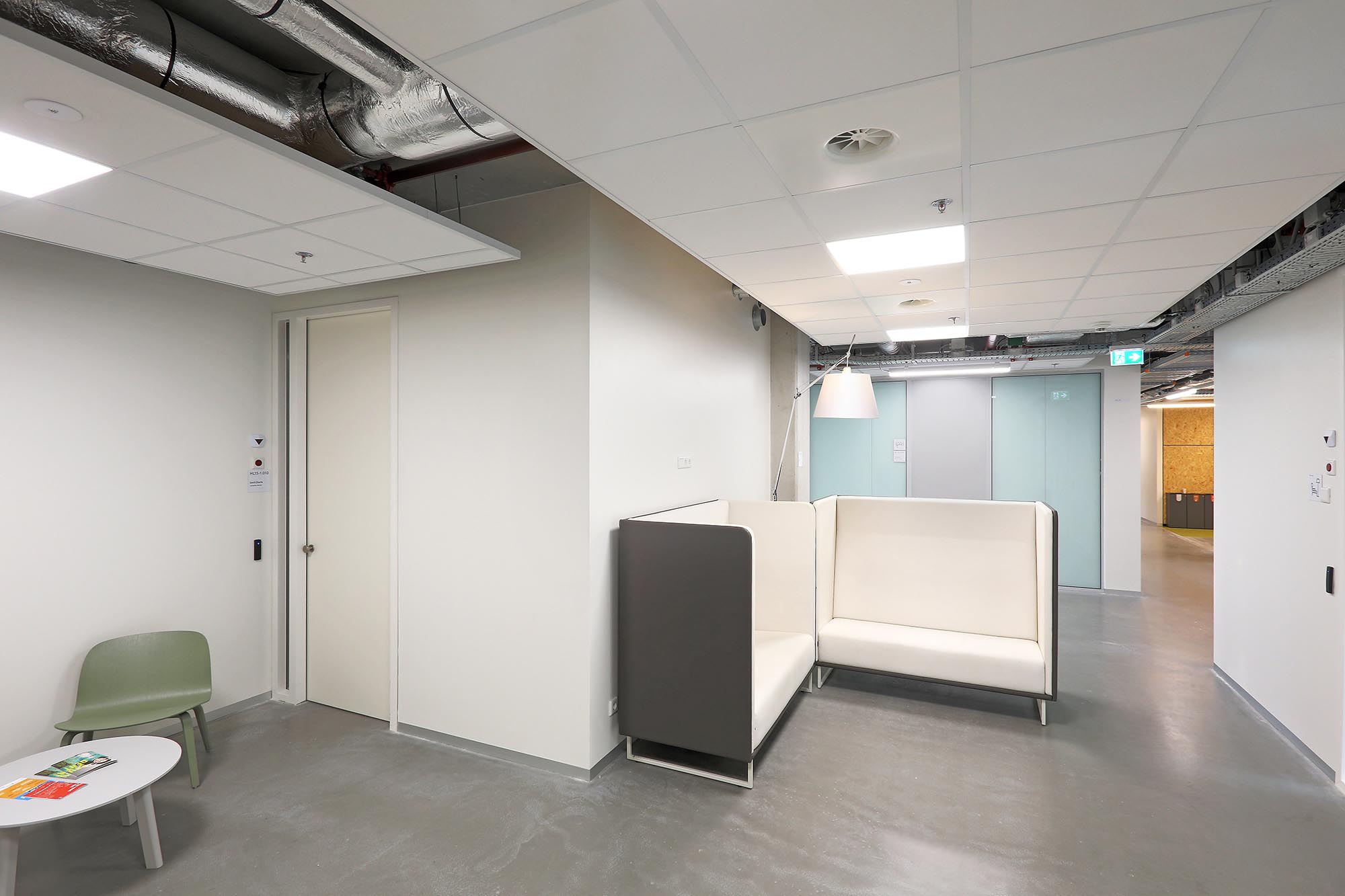 Met meer dan 11.000 studenten en bijna 1000 medewerkers die gebruik maken van de nieuwbouw, stelt dit hoge eisen aan de toe te passen materialen op het gebied van geluidsisolatie en akoestiek. Door de combinatie van geluidsisolerende glazen HGS wanden en geperforeerde akoestische wanden in het atrium en de gangen, is zowel transparantie als een prettig akoestisch klimaat gecreëerd. De concentratiewerkplekken op de gangen zijn maatwerkoplossingen, waarbij de gebruiker ongestoord kan werken in drukke verkeersruimten.