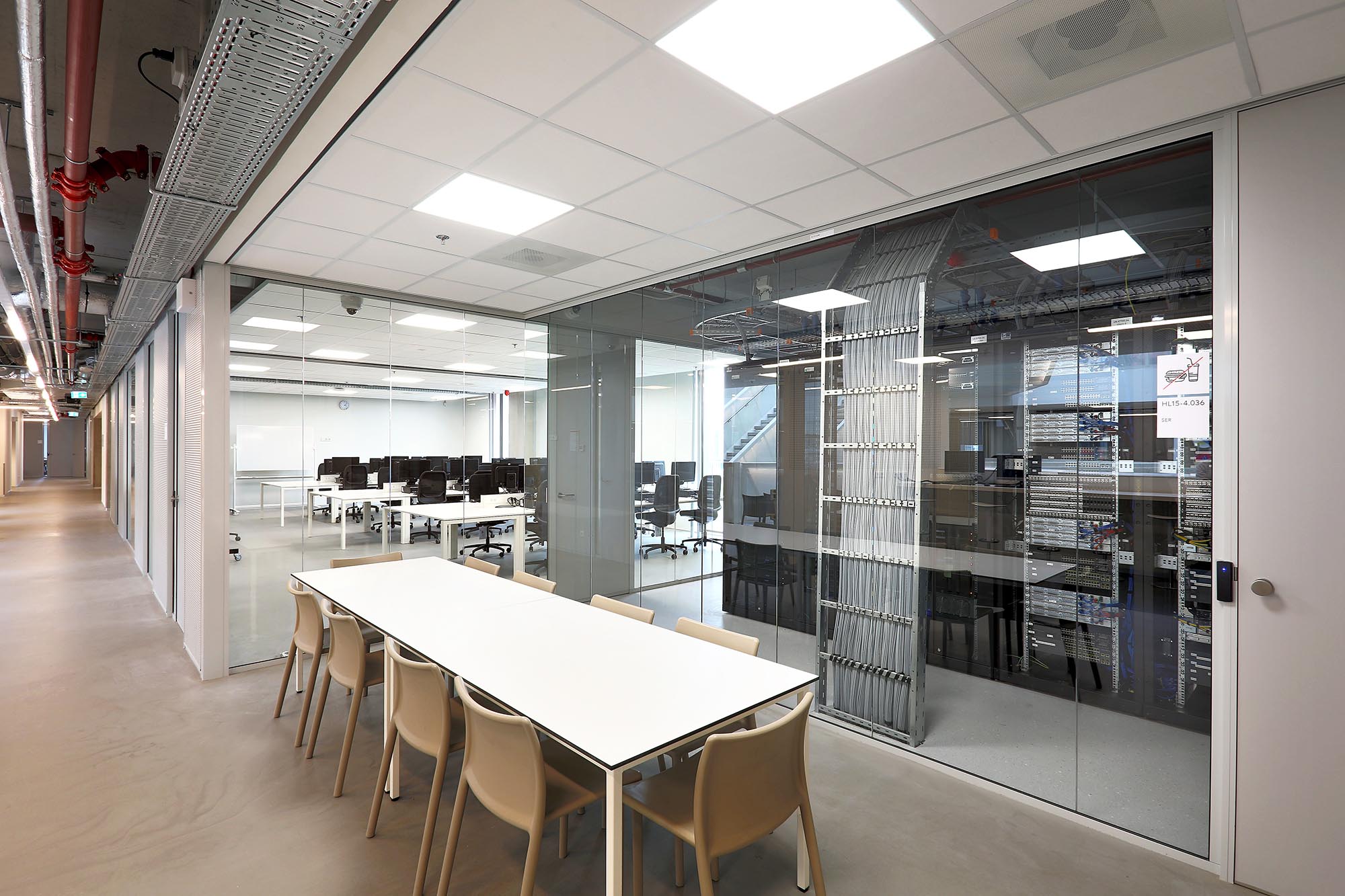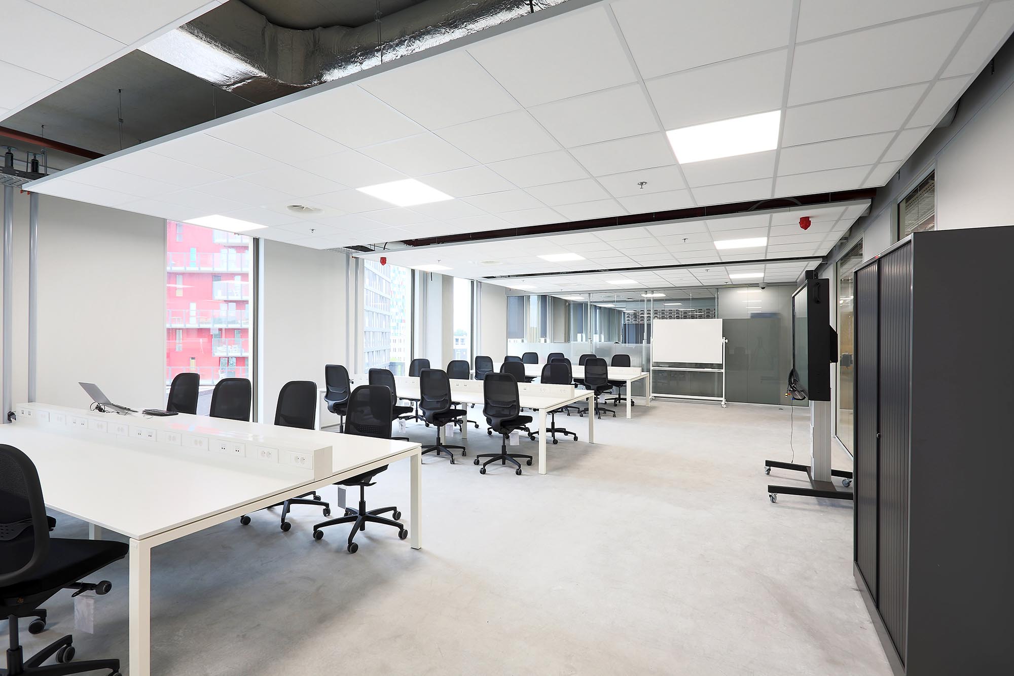De nieuwbouw betreft een UAV-GC project met een bruto vloeroppervlak van 23.950 m2. Wij zijn als afbouwer dan ook verantwoordelijk om het beoogde resultaat van de opdrachtgever in de praktijk te verwezelijken. De doorvalveiligheid van onze glazen wanden in het atrium en de geluidsisolatie en geluidsabsorptie van onze producten hebben wij moeten onderbouwen d.m.v. rapporten.