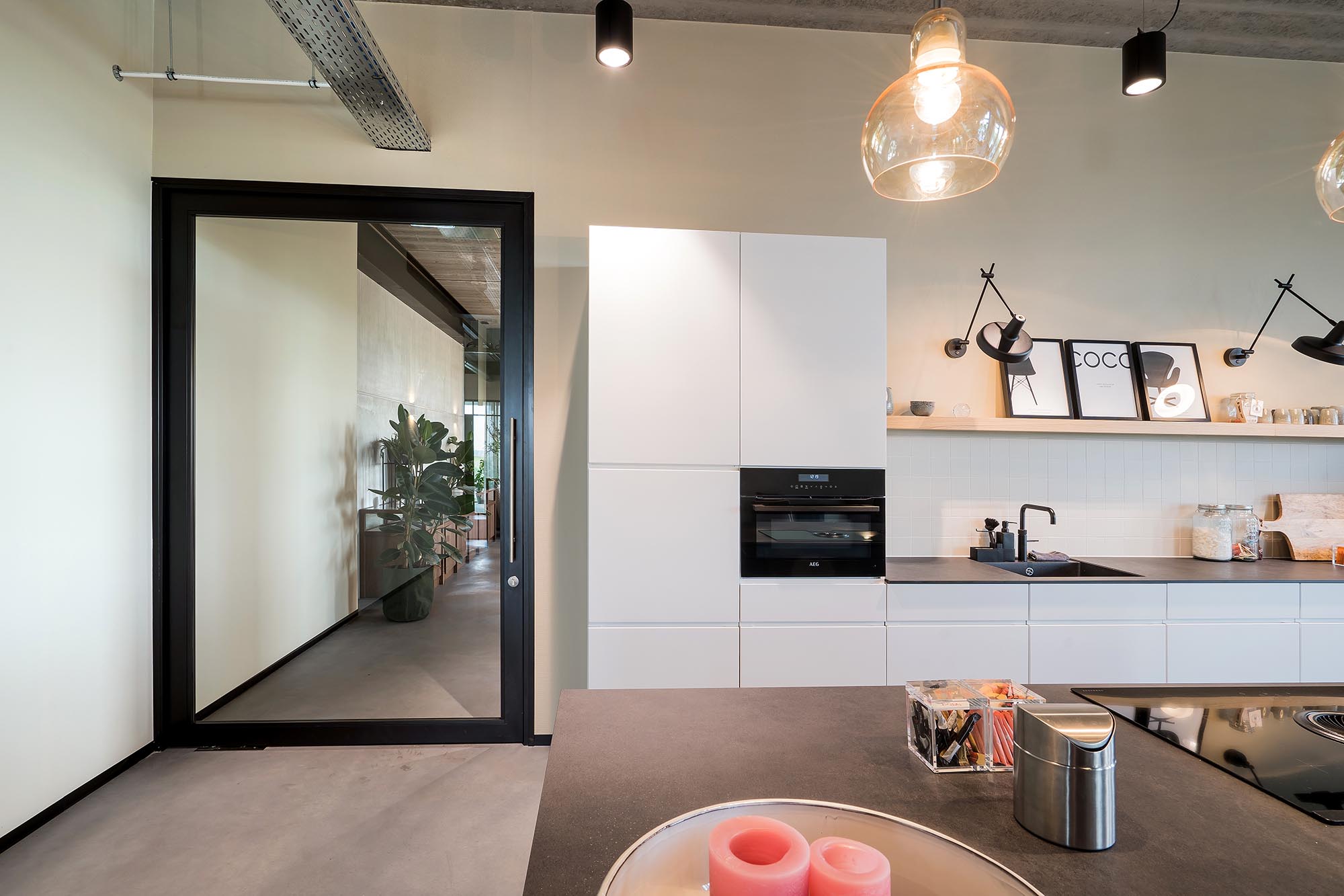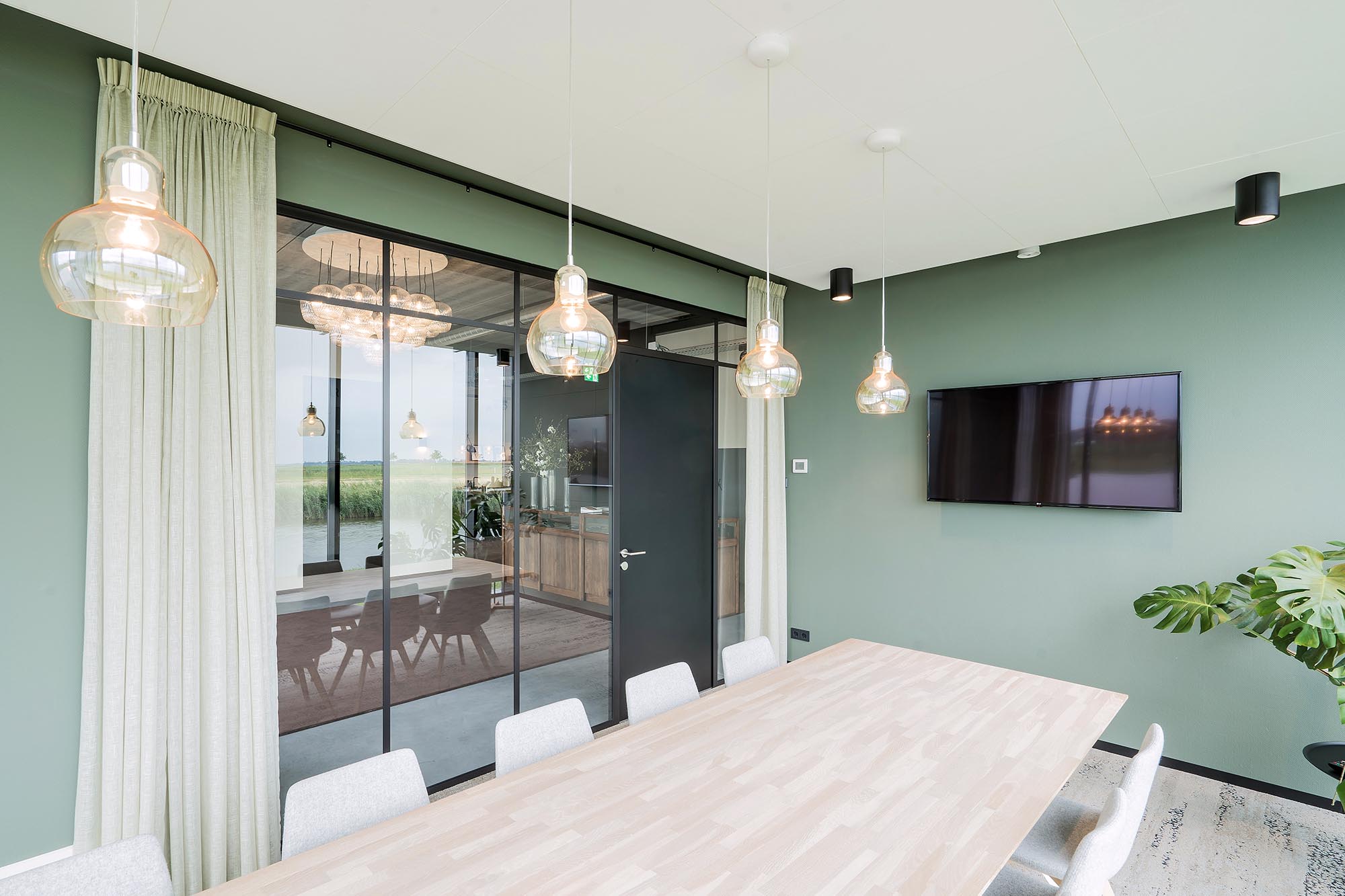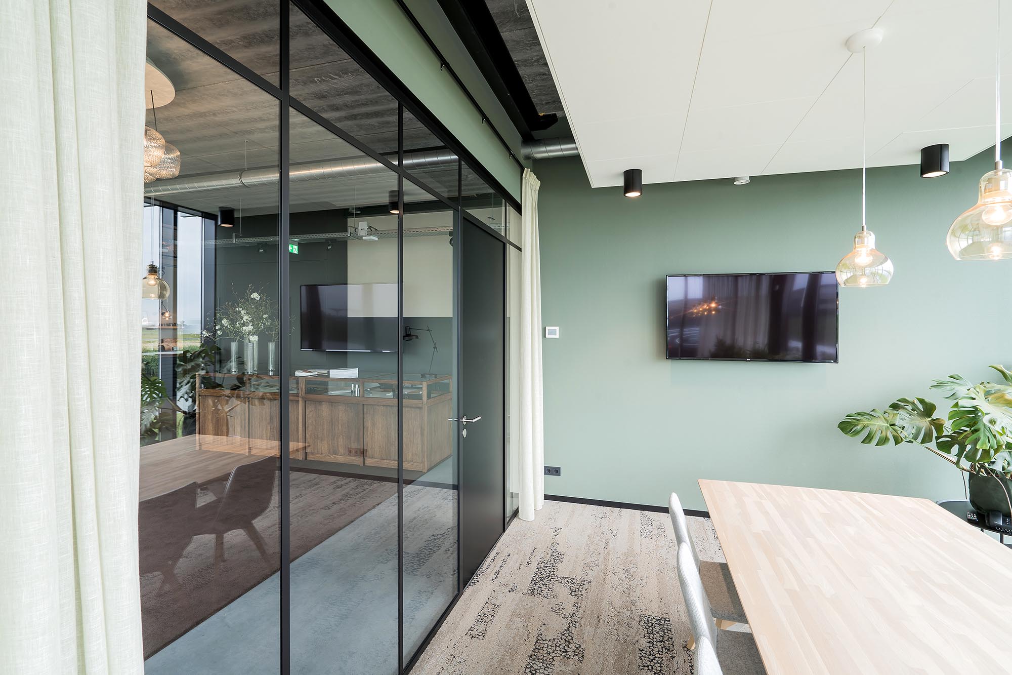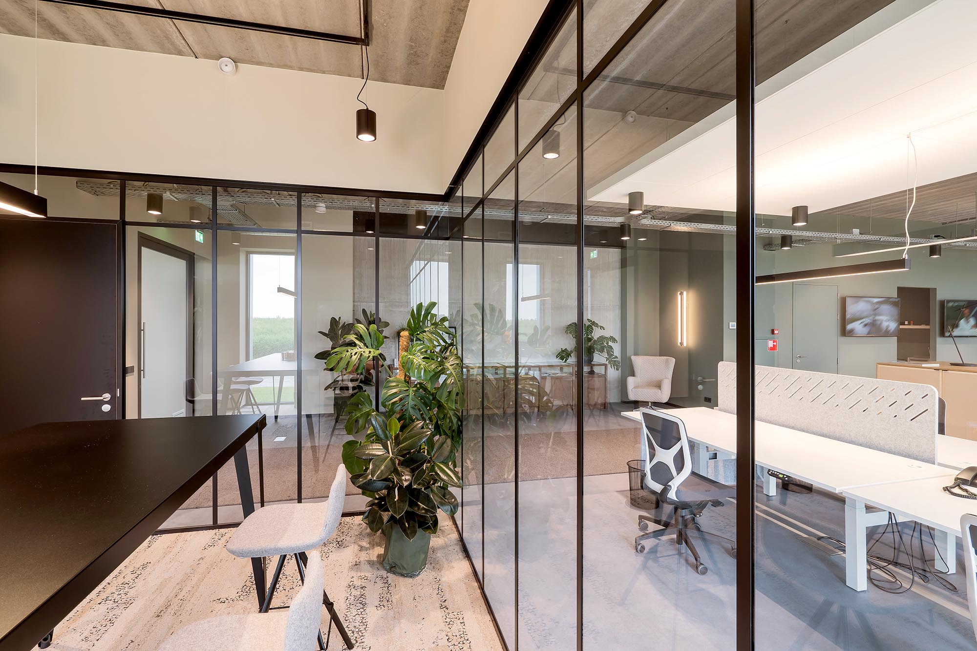 Naar ontwerp van Marjolein Bangma is er een mooie balans gevonden in toegepaste materialen, kleurgebruik en indeling. Er is gekozen voor onze Classic Frame systeemwand om de industriële look van het kantoor te realiseren. De Classic Frame is gebaseerd op het jaren ’20 stoeltjesprofiel. Bij dit kantoor is de Classic Frame ECO variant toegepast.