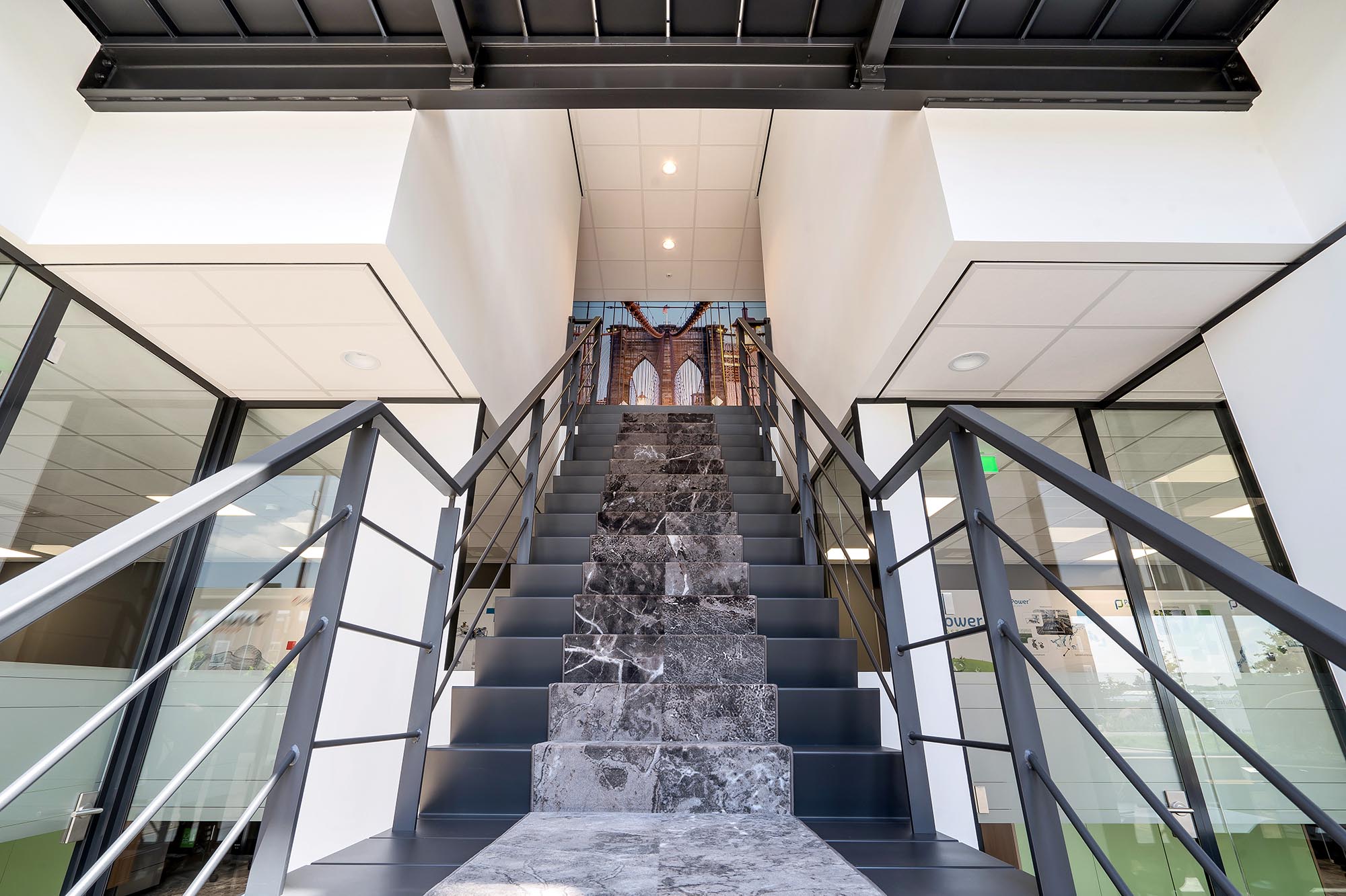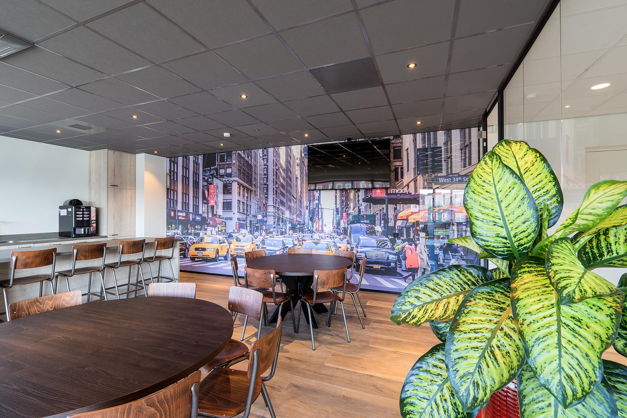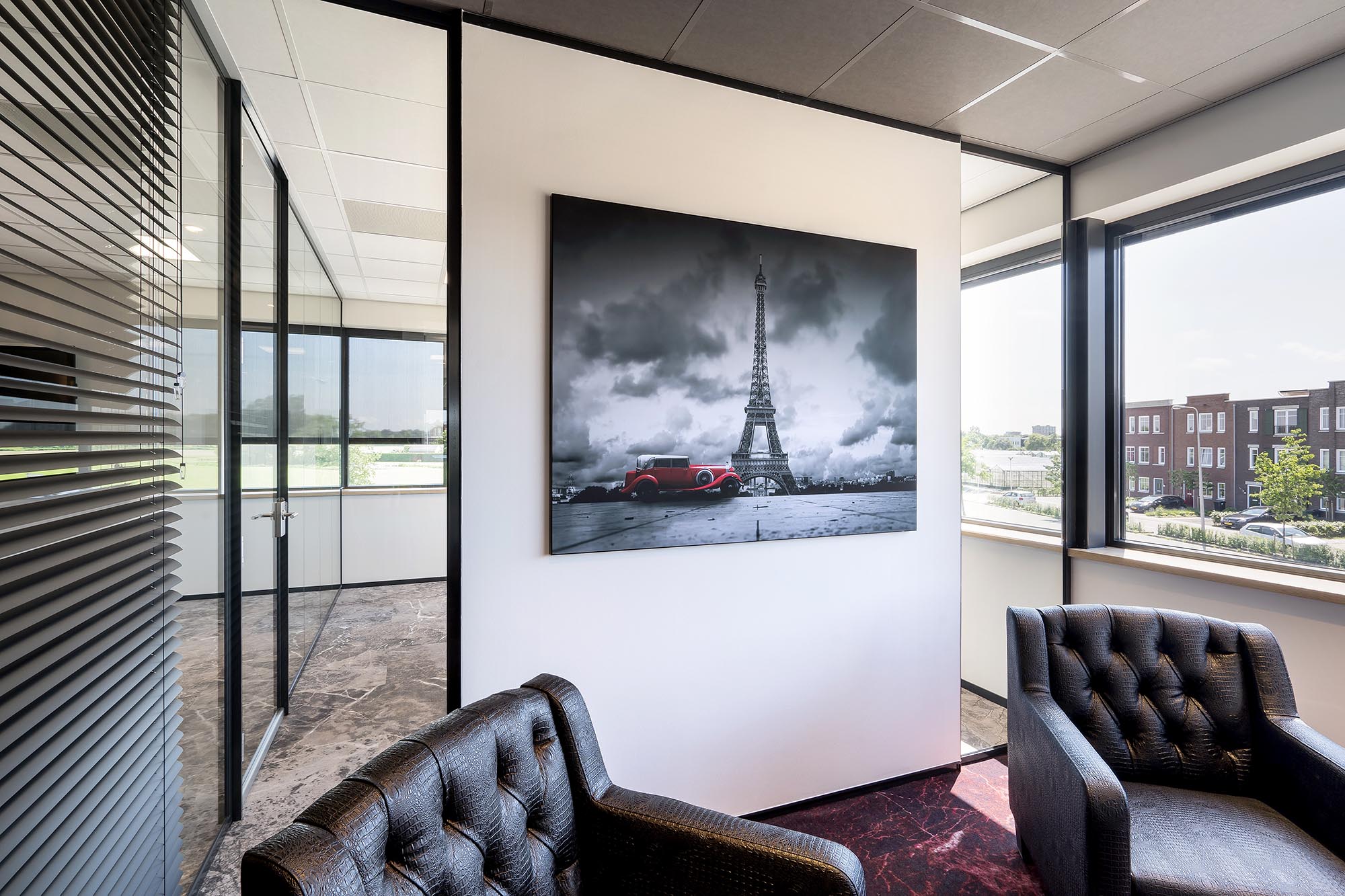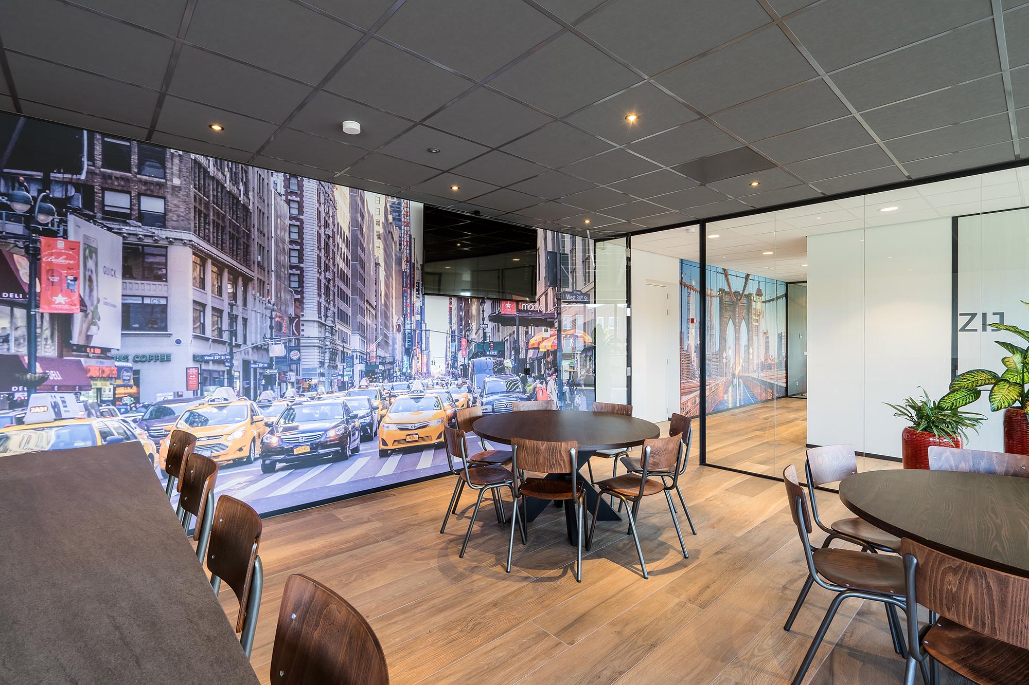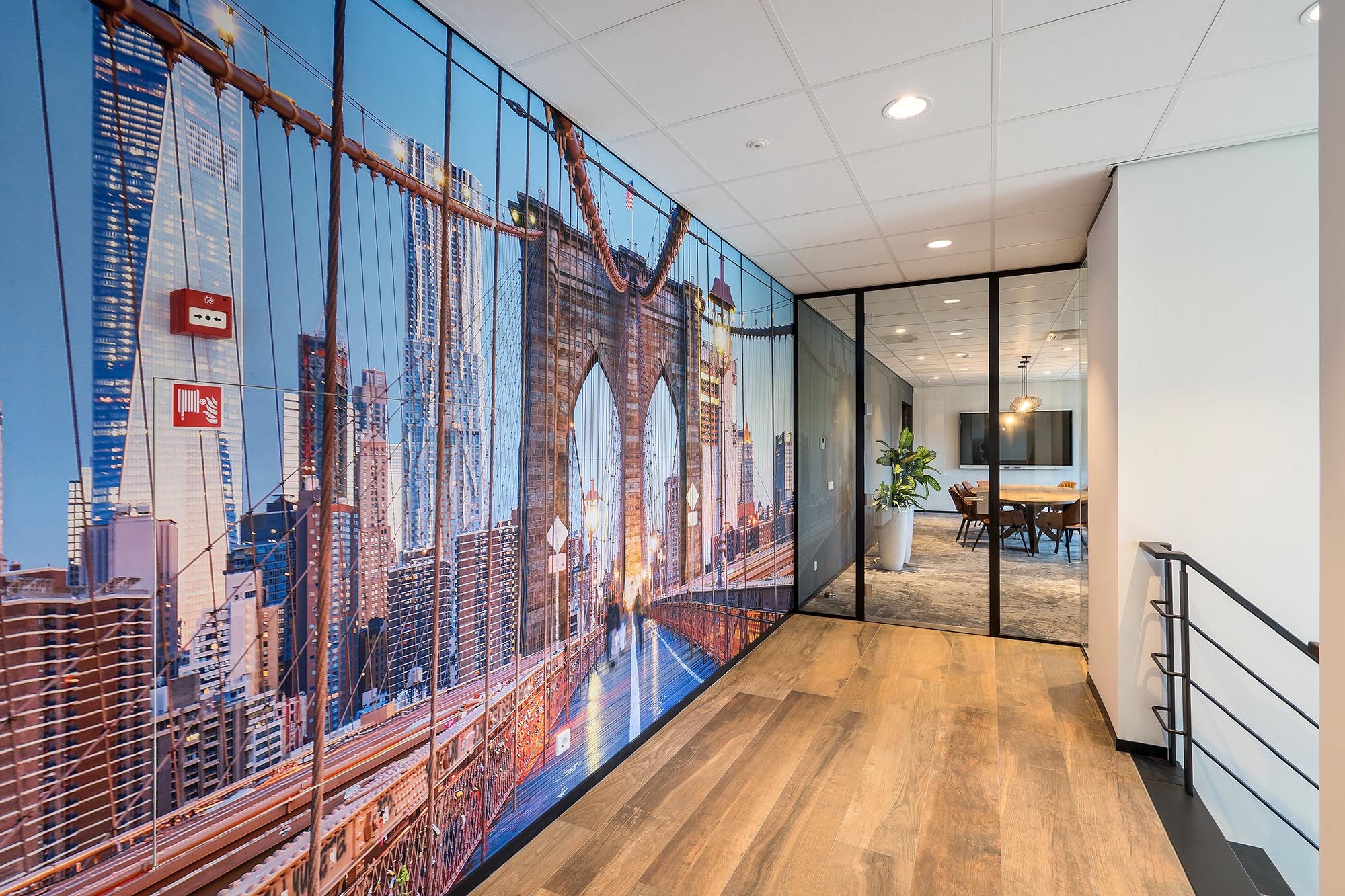De indeling van het kantoorgedeelte is een mix van gesloten en transparante wanden. Onze Metalstud de Luxe zorgt als gesloten wand voor extra privacy met een geluidsisolatiewaarde van Rw=50dB. Dit wordt vooral toegepast als tussenwand tussen kantoren. Om toch een doorkijk te behouden is ook onze TWIN, een dubbele glazen systeemwand toegepast met dezelfde geluidsisolatiewaarde: Rw=50dB.