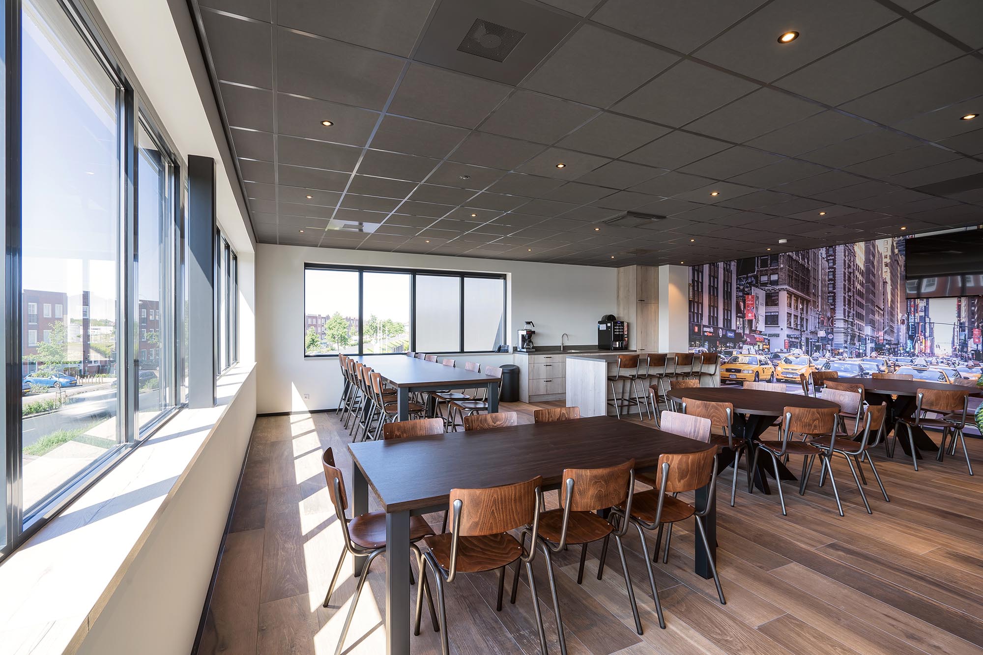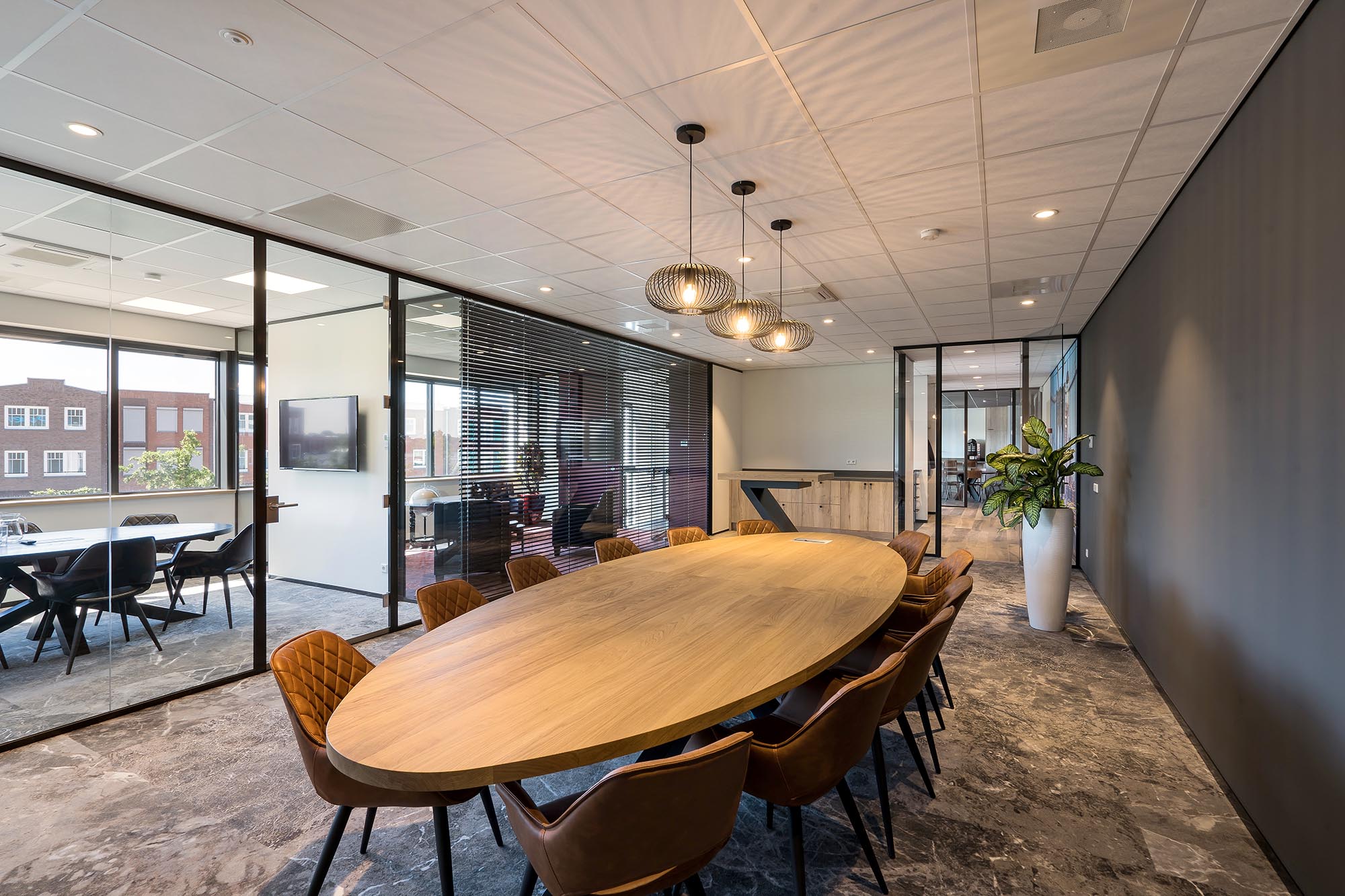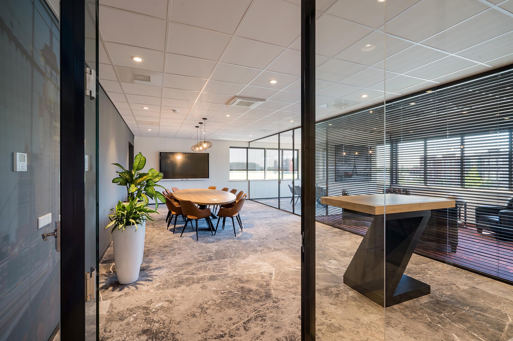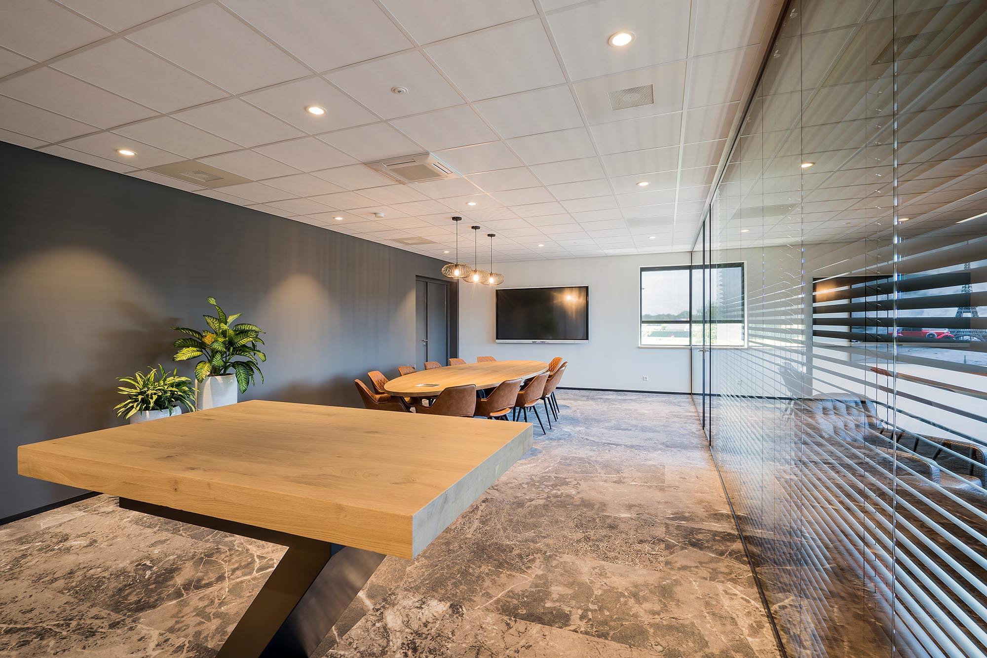 Voshol Interieurconcepten heeft voor een stijlvol, sfeervol maar toch ook praktisch ontwerp gezorgd. Met kantoorgedeeltes, een uitgebreide kantine, meerdere vergaderunits en een loungeplek heeft dit pand alles in zich.