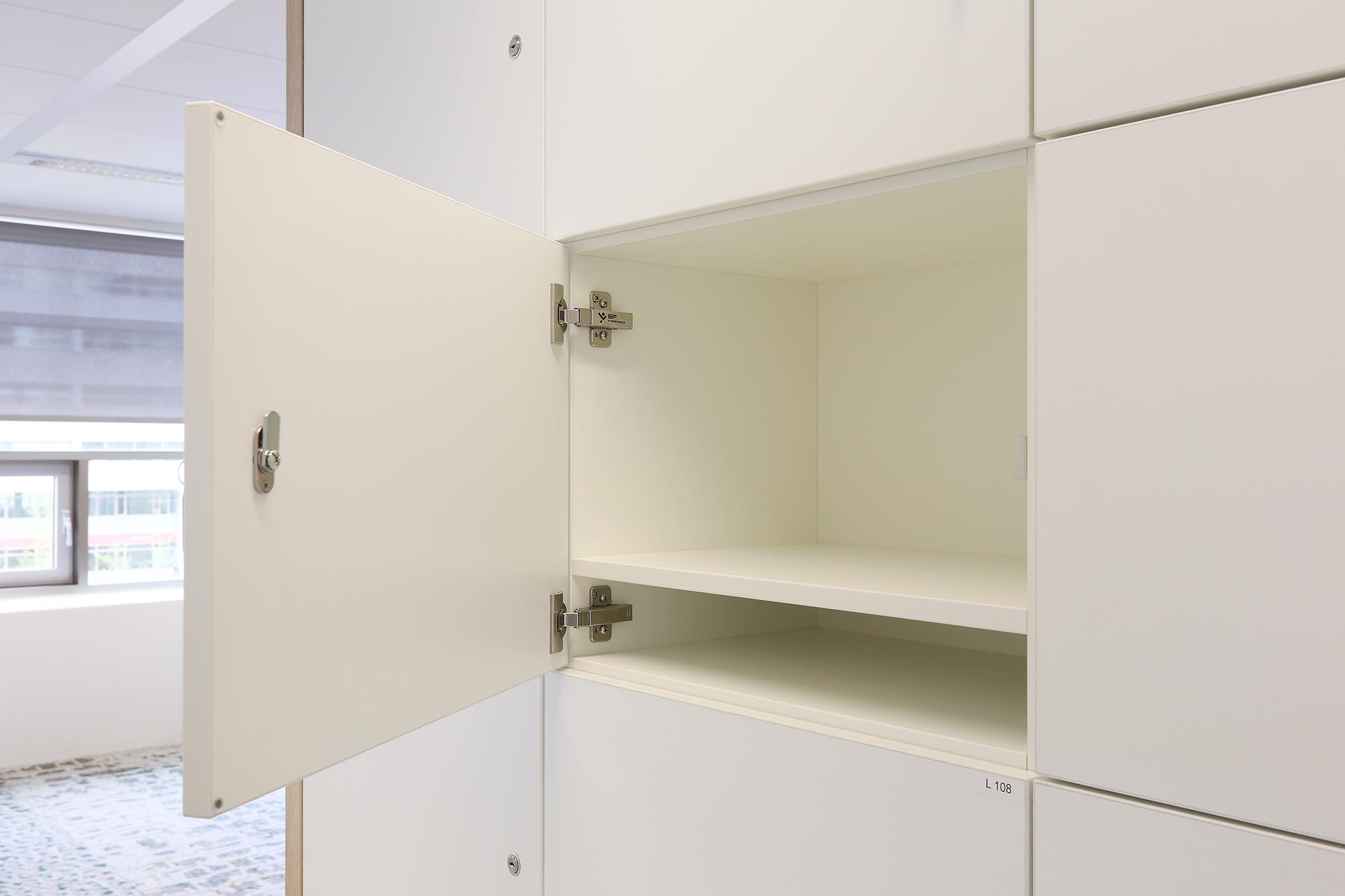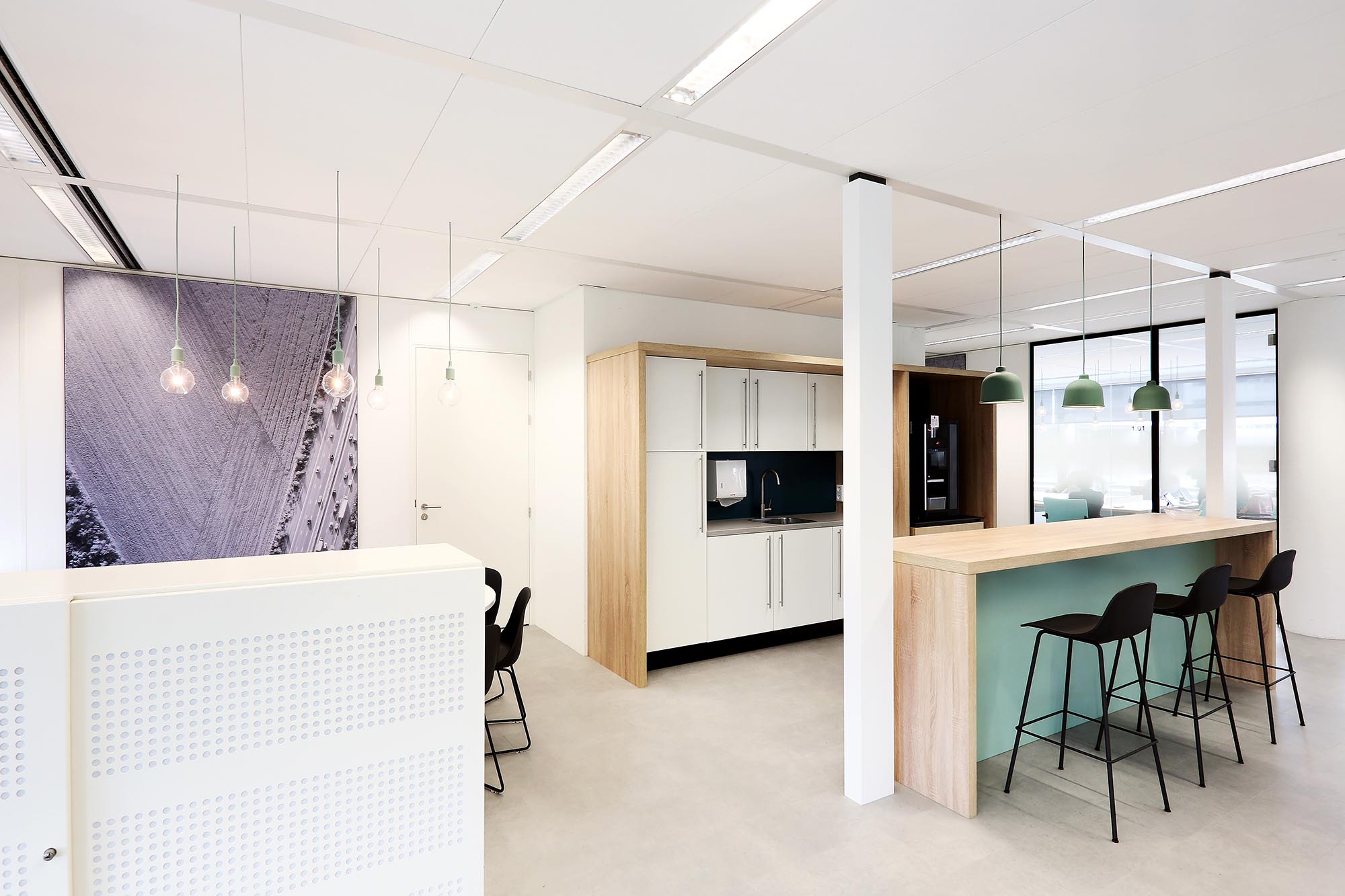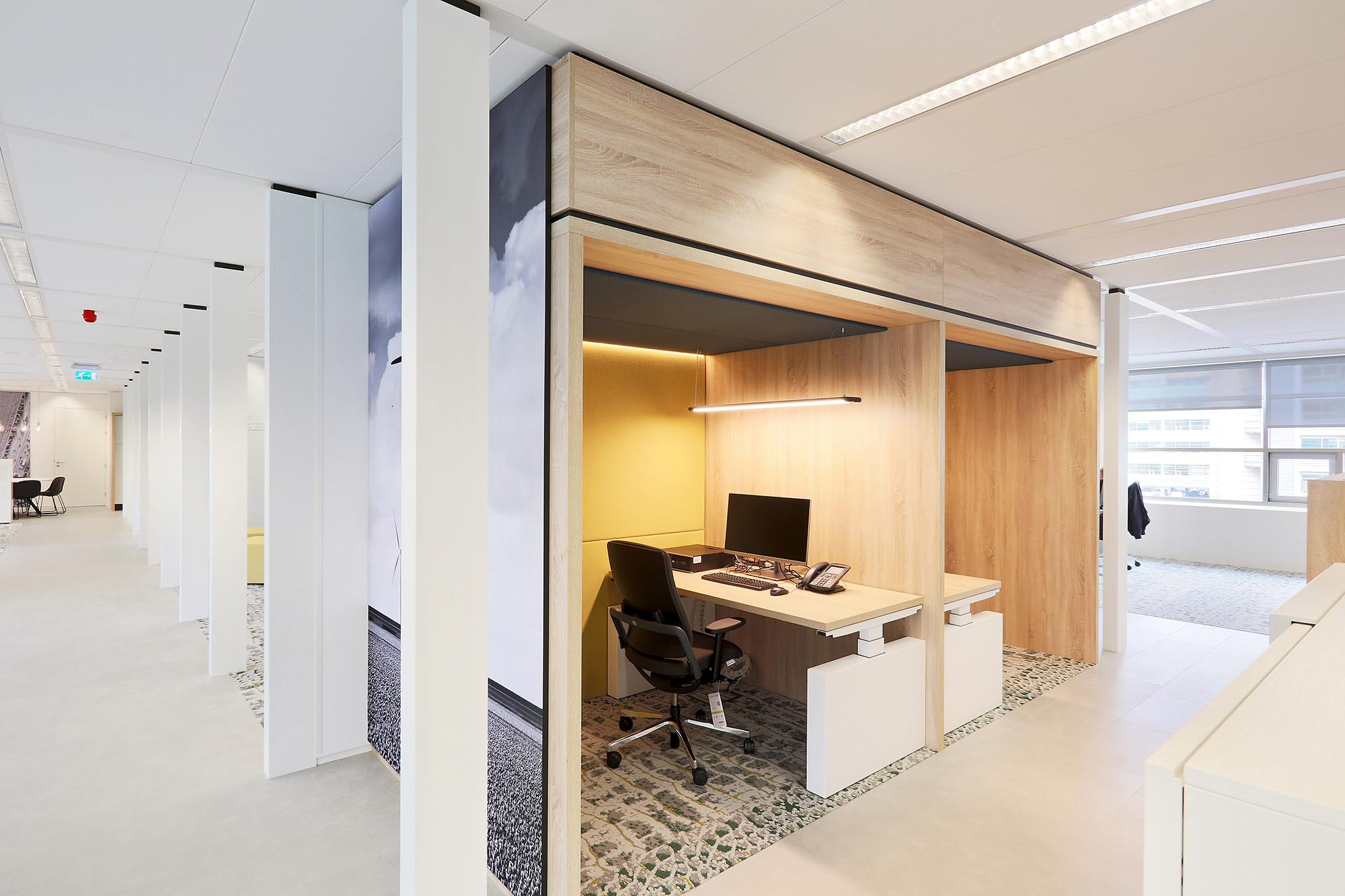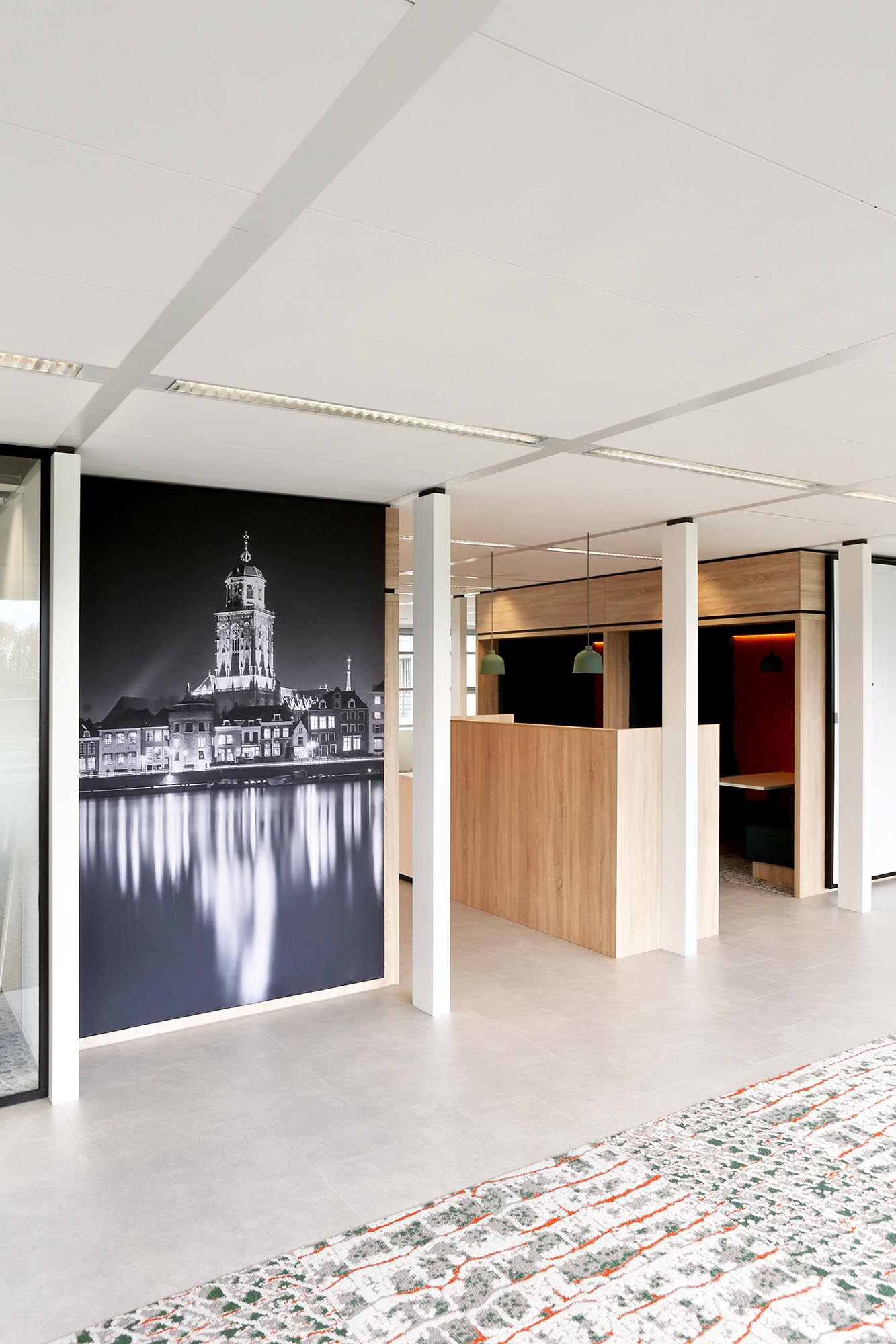 De kantoor-scheidende wanden zijn uitgevoerd als TC, grotendeels afgewerkt met whiteboard elementen. In het oog springend zijn de ruimtehoge visuals, die zorgen voor een warm accent. De vergaderruimten op de begane grond zijn eenvoudig flexibel in te delen door toepassing van Nüsing NewEco mobiele paneelwanden. Een optimaal gebruik van de beschikbare m².