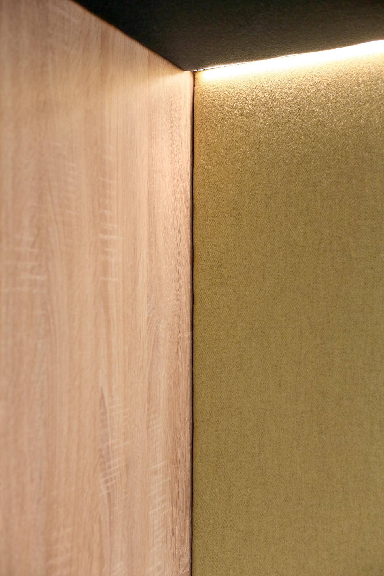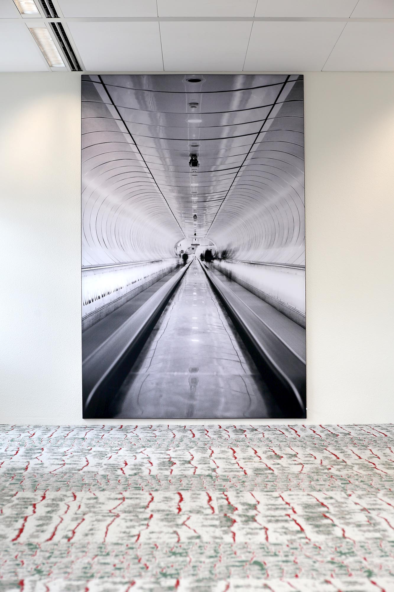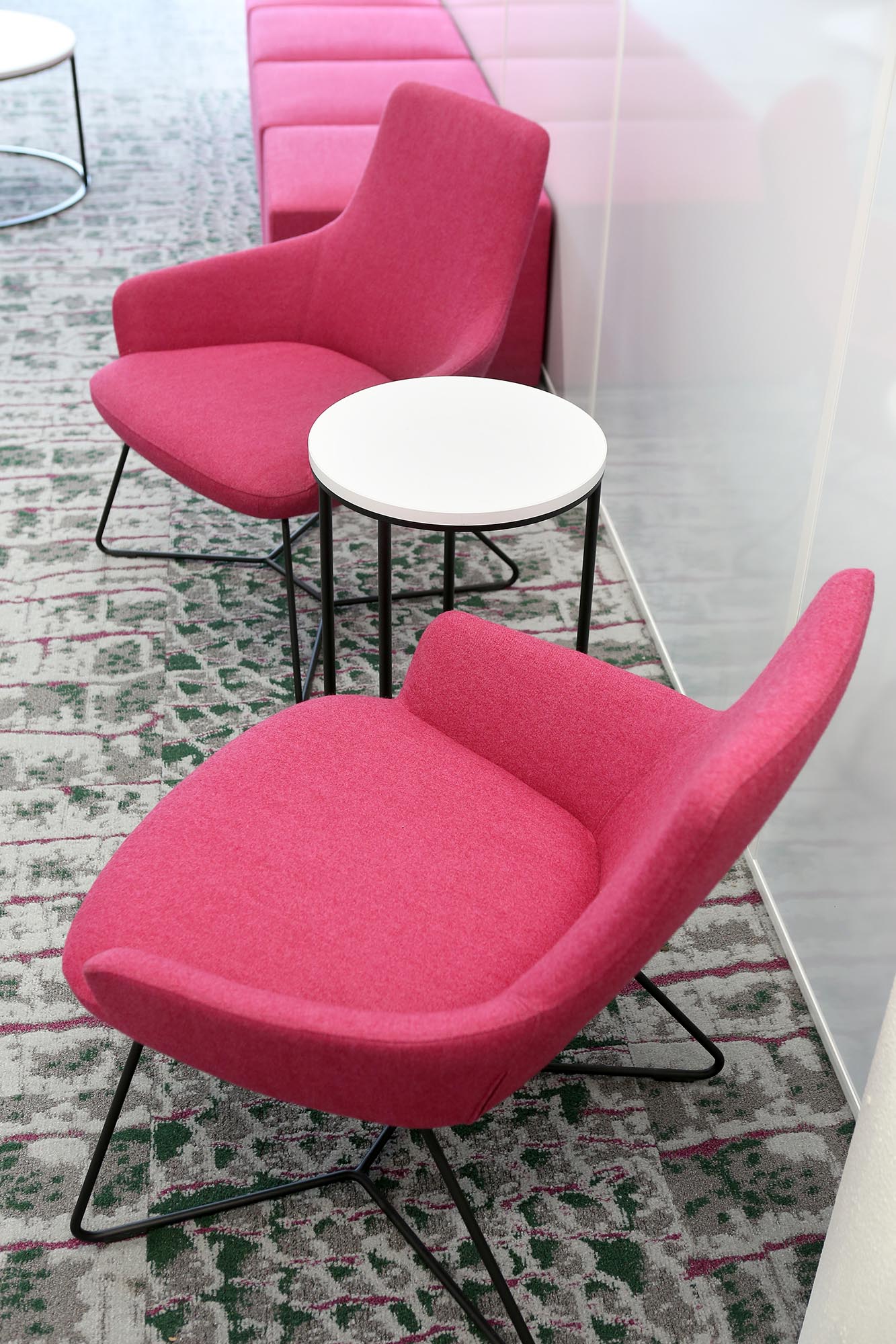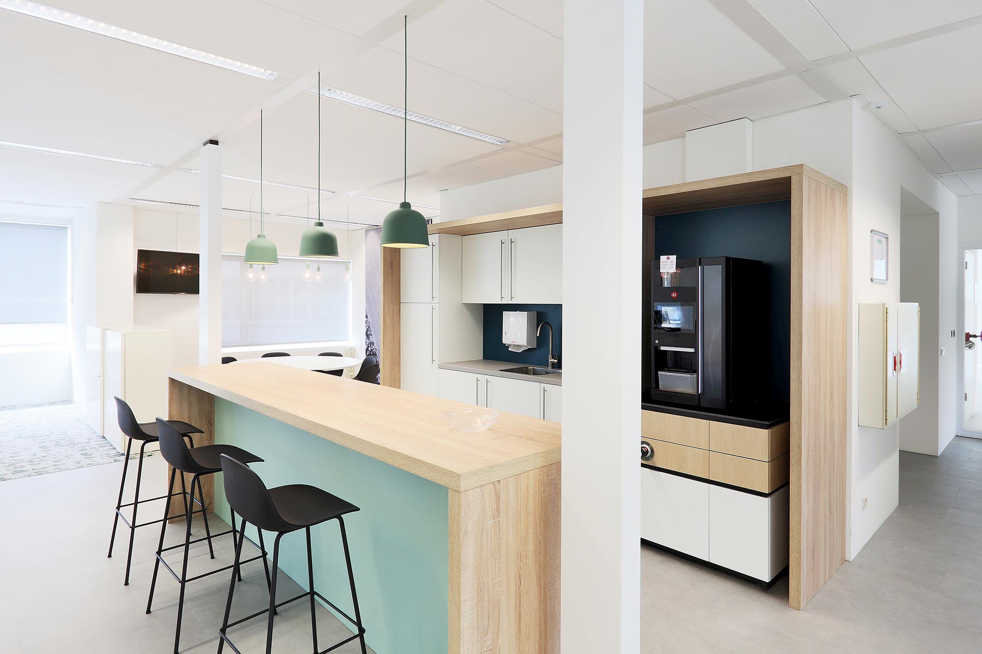 De kantoor-scheidende wanden zijn uitgevoerd als TC, grotendeels afgewerkt met whiteboard elementen. In het oog springend zijn de ruimtehoge visuals, die zorgen voor een warm accent. De vergaderruimten op de begane grond zijn eenvoudig flexibel in te delen door toepassing van Nüsing NewEco mobiele paneelwanden. Een optimaal gebruik van de beschikbare m².