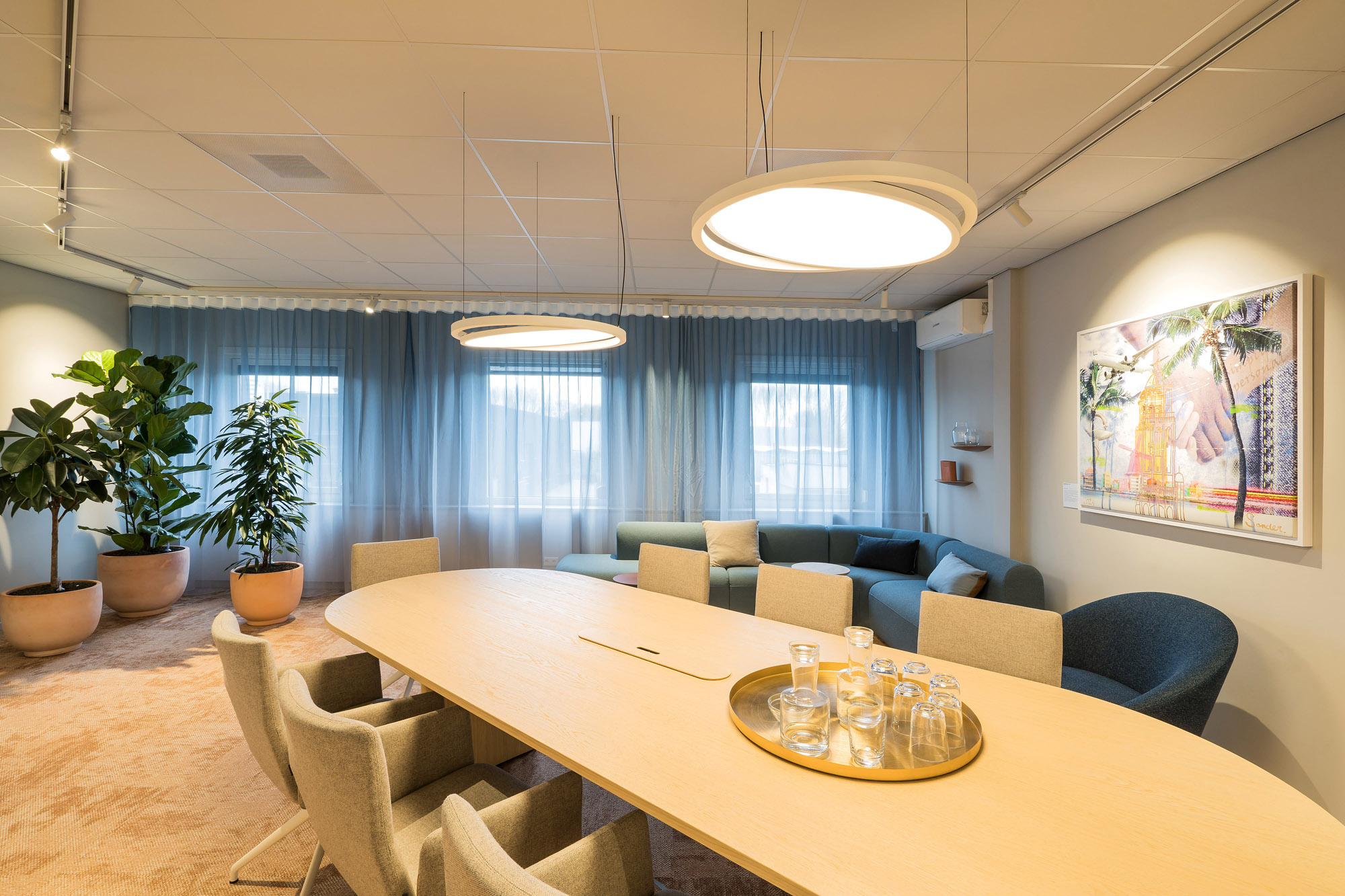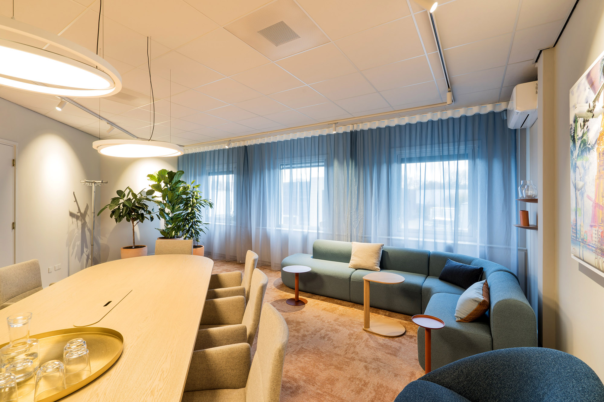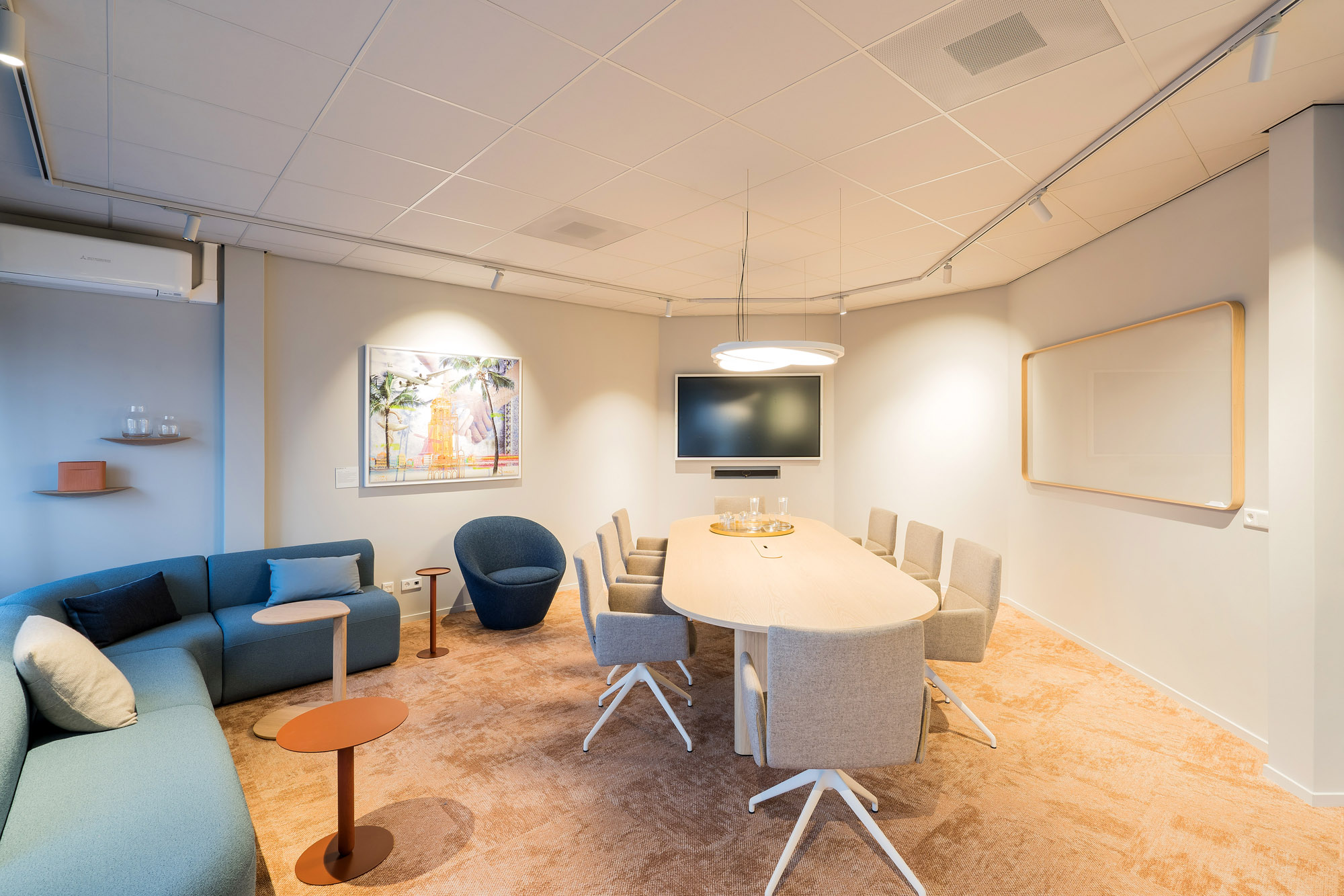 De boardroom is volledig vernieuwd. Hiervoor heeft Hal2 het complete ontwerp verzorgd. Er is een sfeervolle ruimte gecreëerd waar men in alle rust kan vergaderen en videocalls kan maken. Het karakter van de ruimte straalt een huiselijke en warme sfeer uit, perfect in lijn met de kernwaarde van Orange Pharma: simply personal.