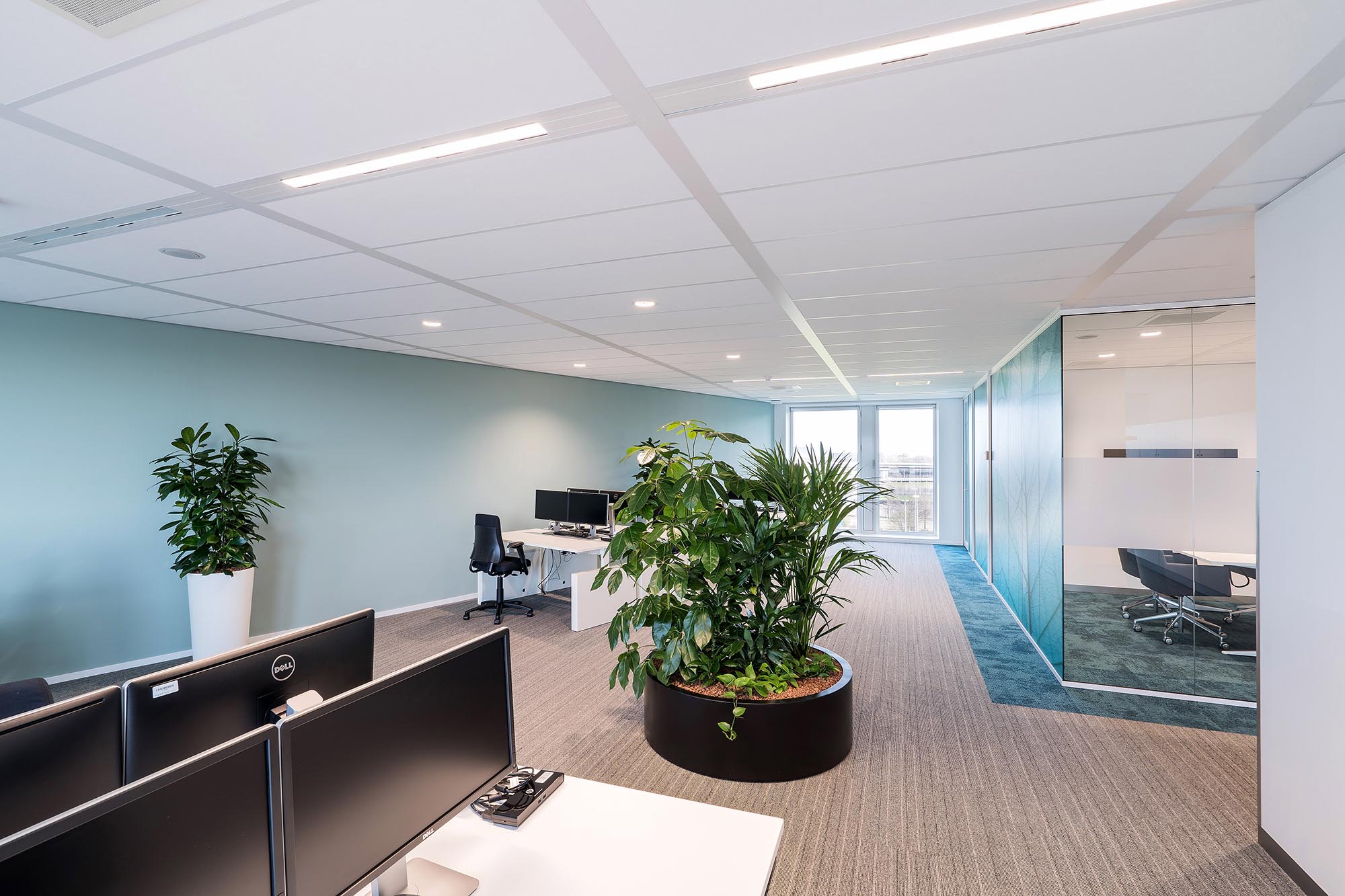 Het inrichten van de begane grond tot en met de 6e verdieping betrof ruim 4000 m2. De bestaande systeemplafonds, systeemwanden, maatwerk interieur en vloerbedekking is geïnventariseerd en hergebruikt, gerefurbished of ter recycling aangeboden. Een deel van de bestaande materialen is gebruikt om vergaderruimtes op de 1e verdieping te creëren. Voor de meubels is gekozen voor second life, een principe dat al jaren door de klant wordt gehanteerd. De coördinatie van de werkzaamheden is door Intermontage verzorgd en betrof o.a de vloerafwerking, binnenschilderwerk, glasfolie en signing.