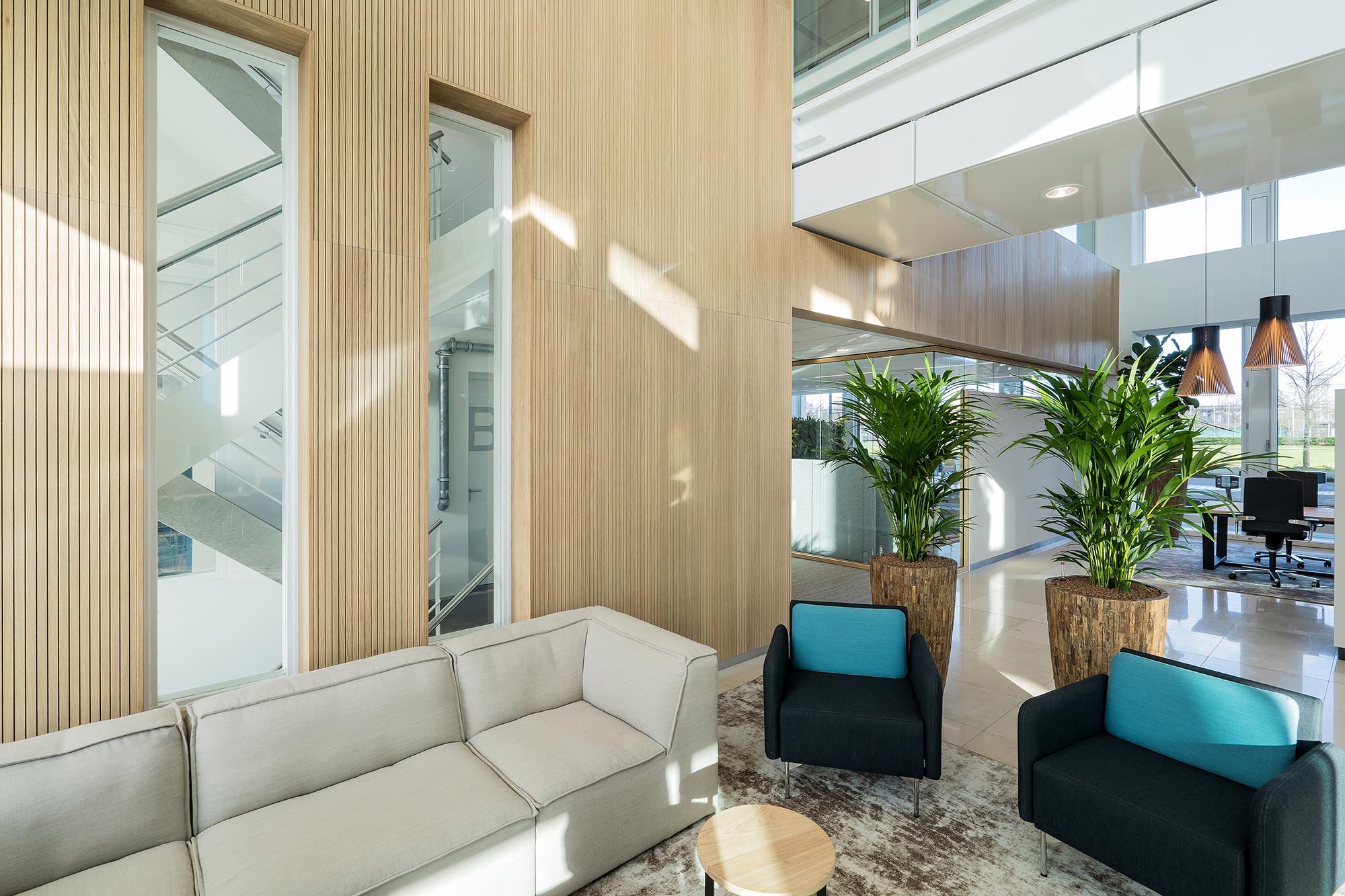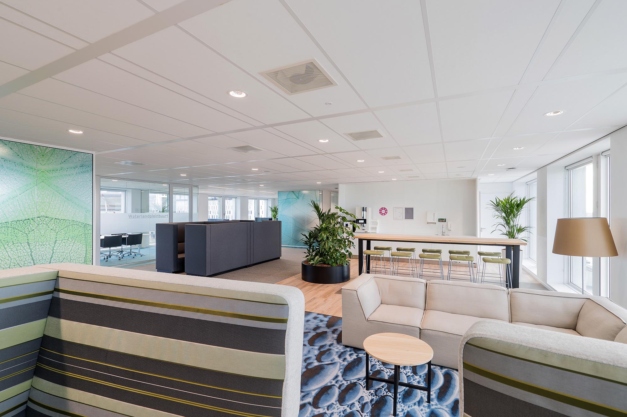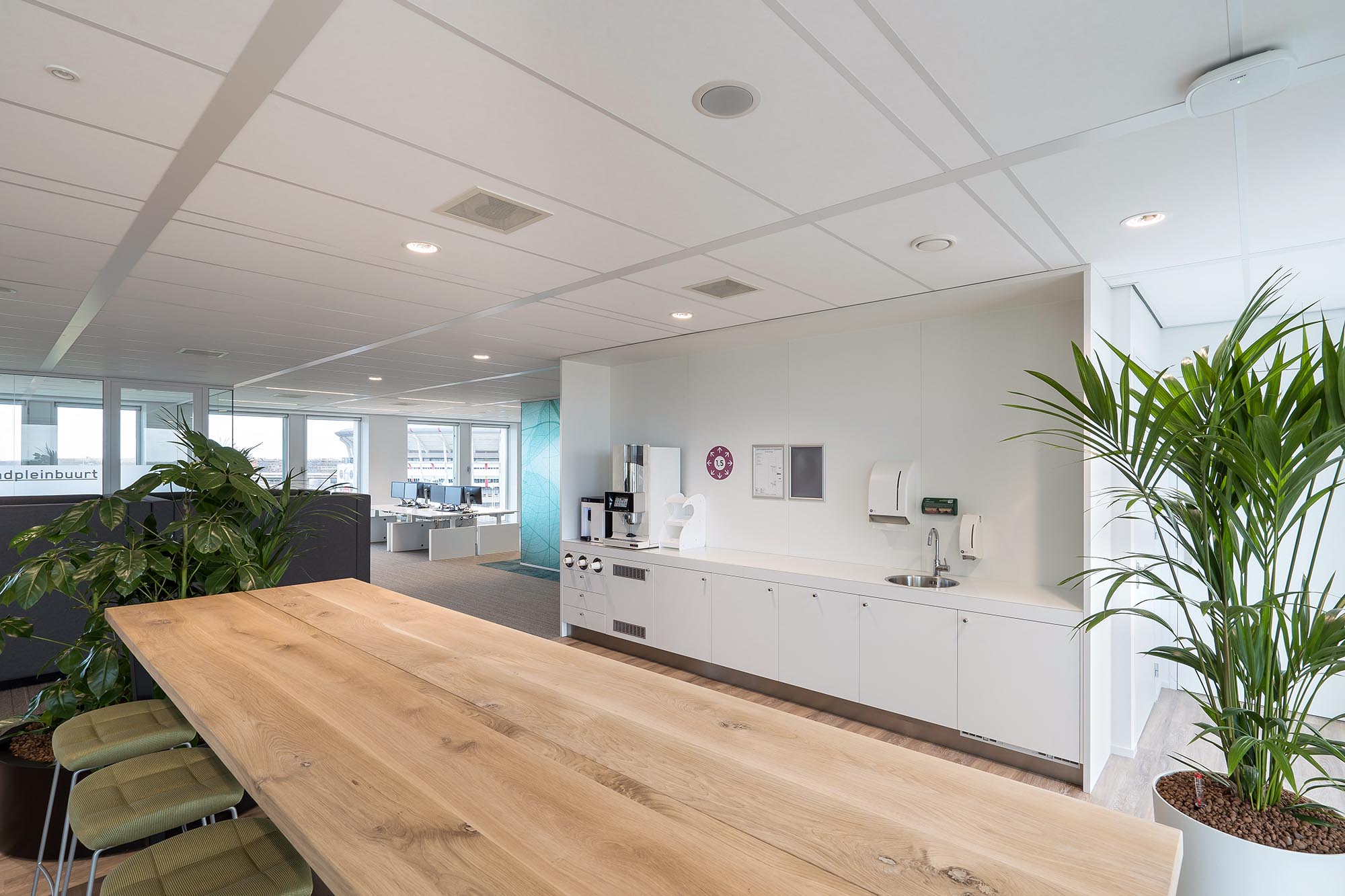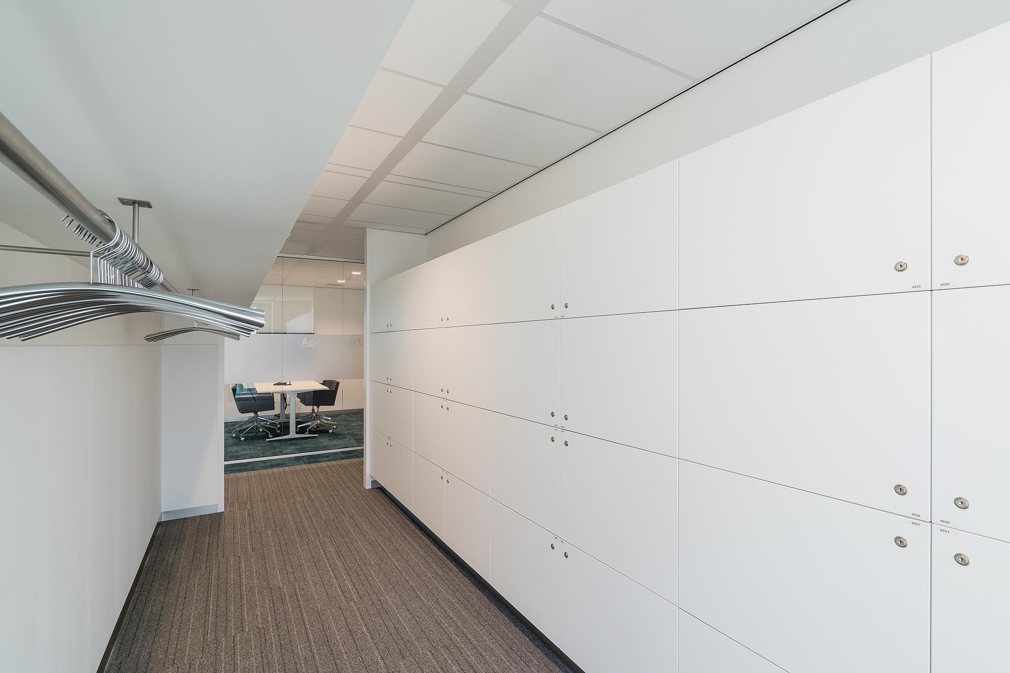 Verspreid over alle verdiepingen is maatwerk interieur bestaande uit onder andere pantry’s, akoestische panelen, second life lockerkasten, vrijstaande en in de glaswand geïntegreerde locker- en open vakkenkasten gerealiseerd. In het atrium werd Bruynzeel wandbekleding toegepast, waardoor een fantastische ambiance is ontstaan.