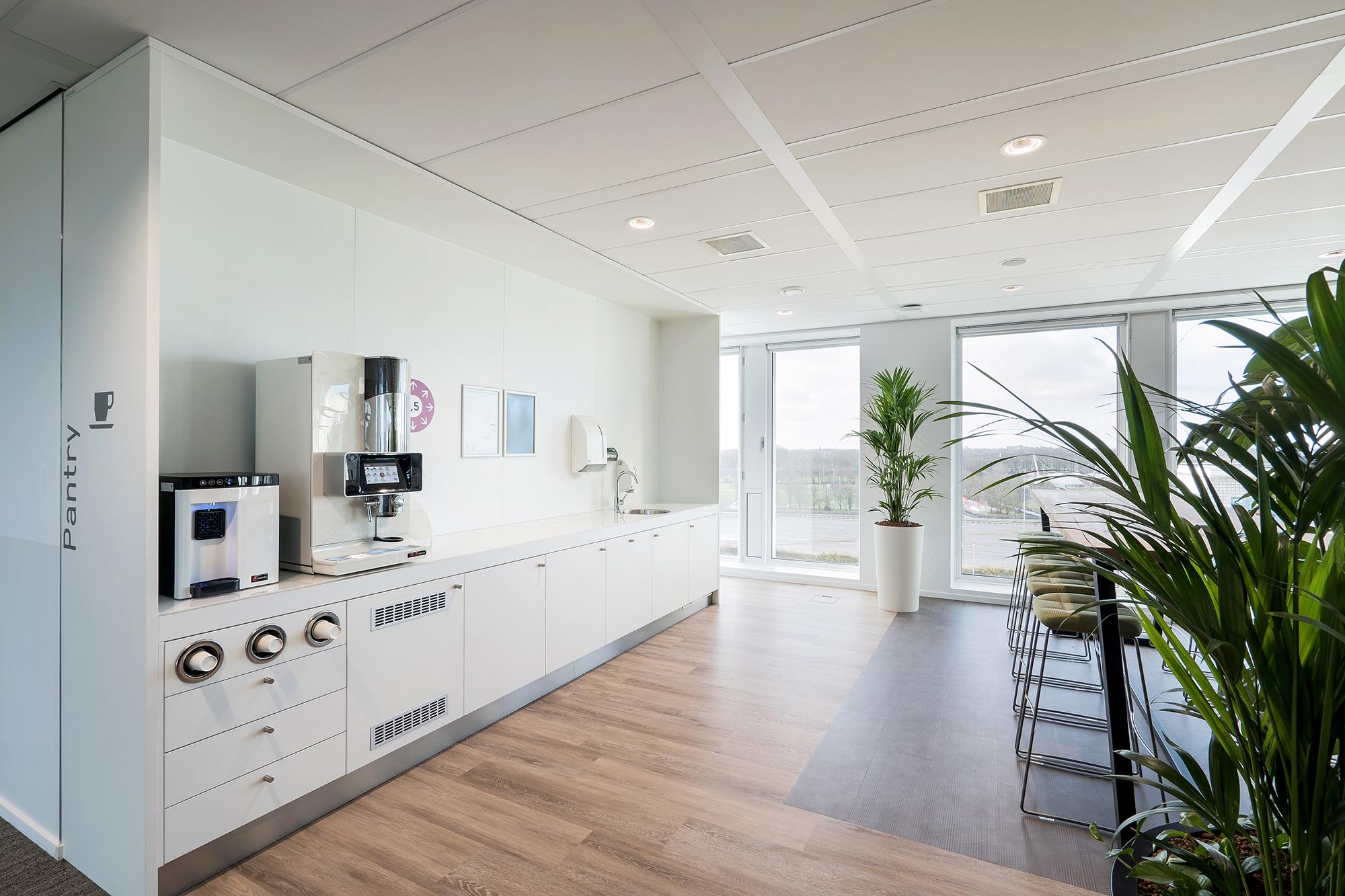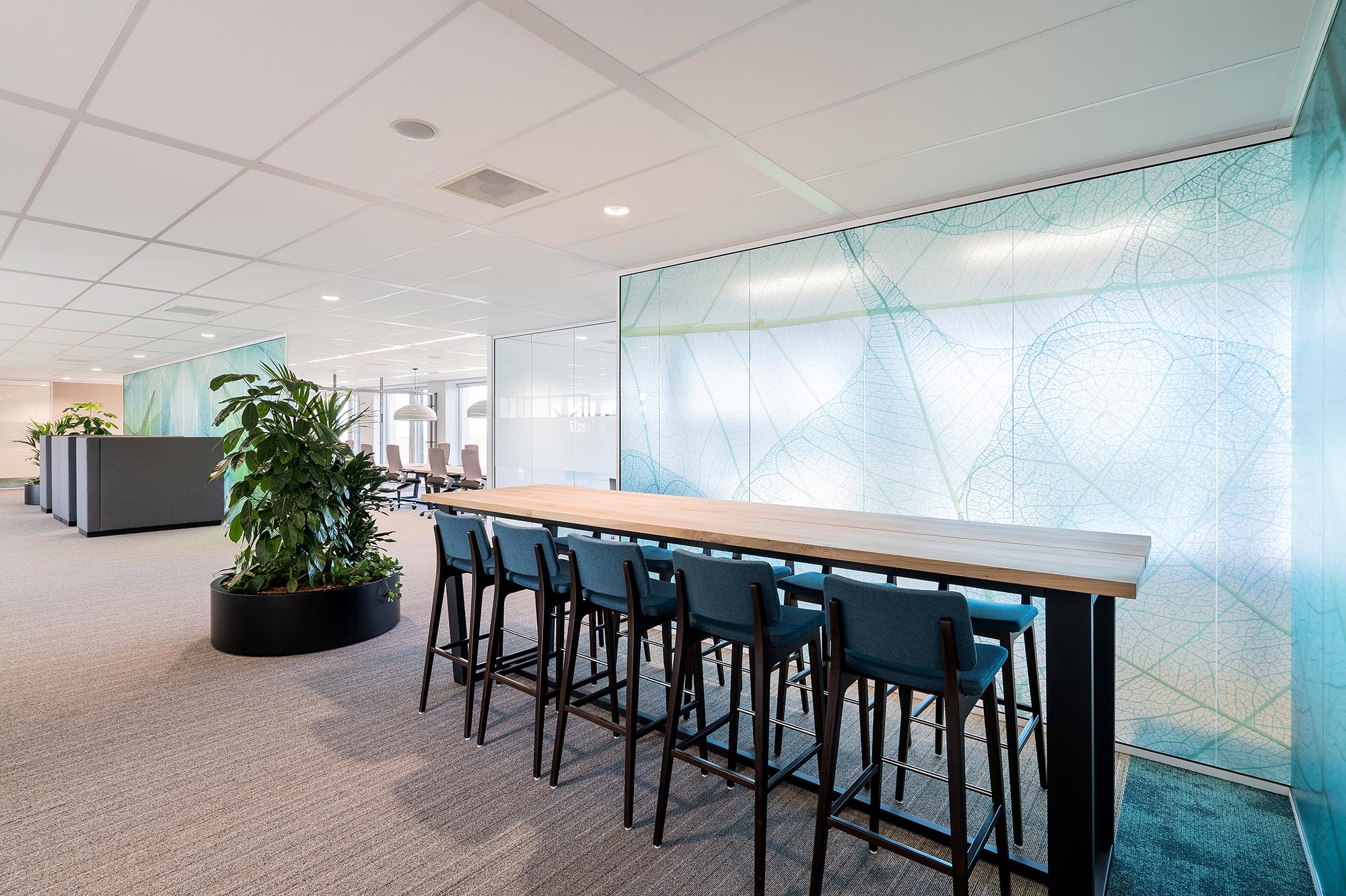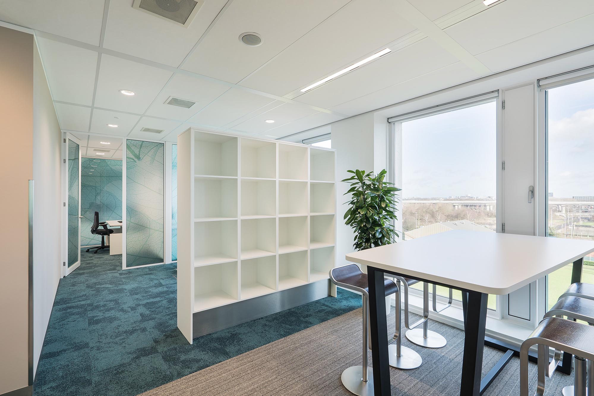 Verspreid over alle verdiepingen is maatwerk interieur bestaande uit onder andere pantry’s, akoestische panelen, second life lockerkasten, vrijstaande en in de glaswand geïntegreerde locker- en open vakkenkasten gerealiseerd. In het atrium werd Bruynzeel wandbekleding toegepast, waardoor een fantastische ambiance is ontstaan.