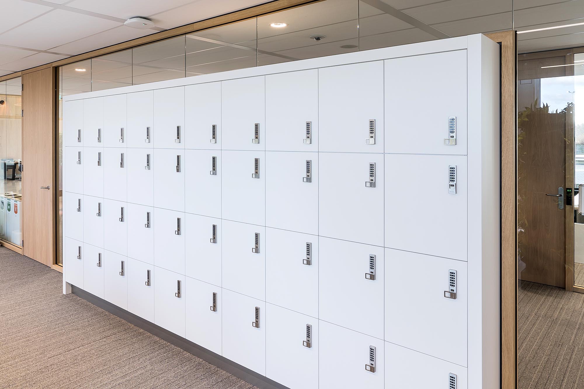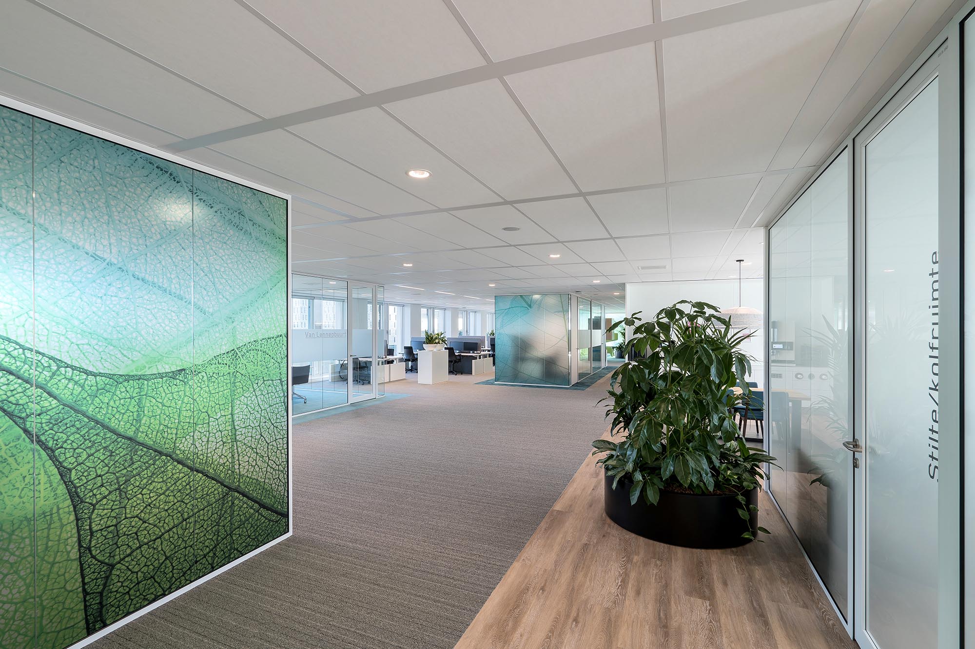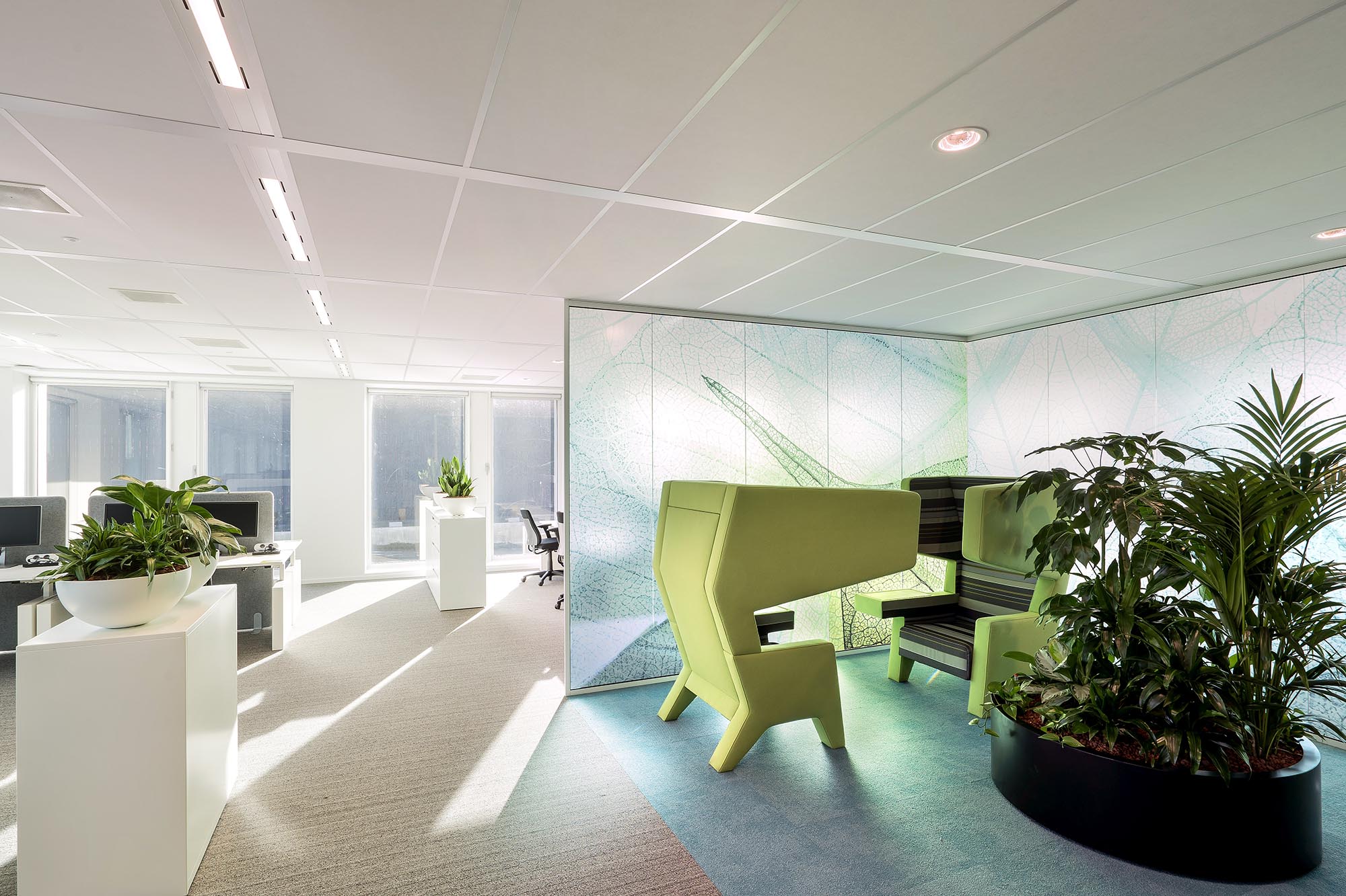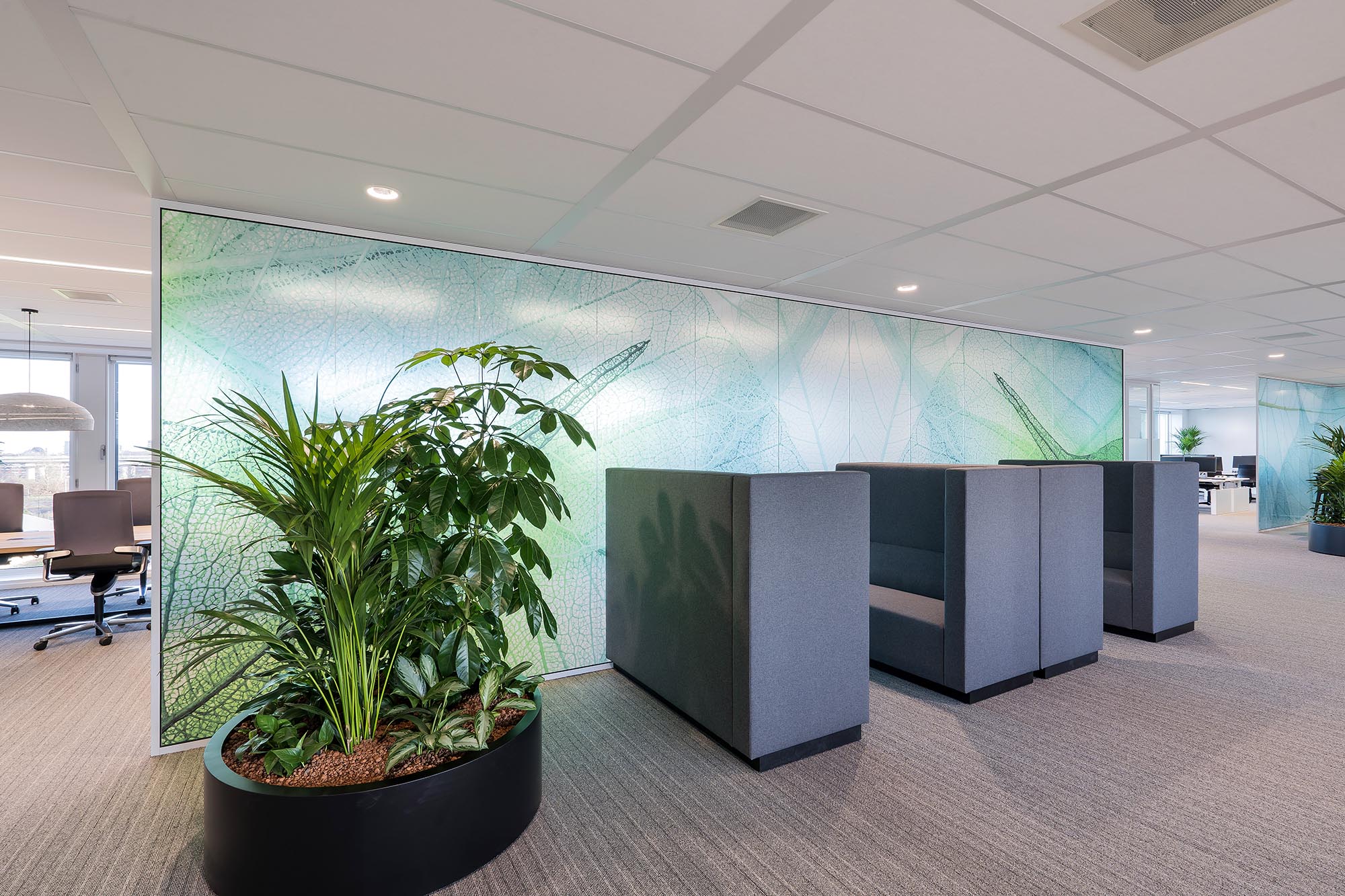 Verspreid over alle verdiepingen is maatwerk interieur bestaande uit onder andere pantry’s, akoestische panelen, second life lockerkasten, vrijstaande en in de glaswand geïntegreerde locker- en open vakkenkasten gerealiseerd. In het atrium werd Bruynzeel wandbekleding toegepast, waardoor een fantastische ambiance is ontstaan.