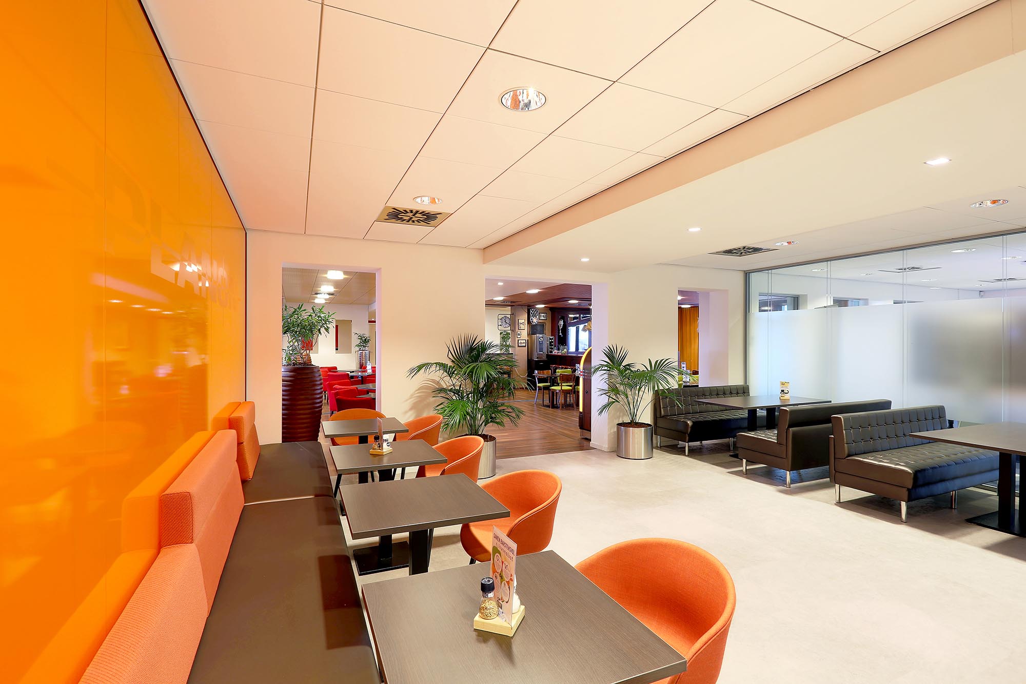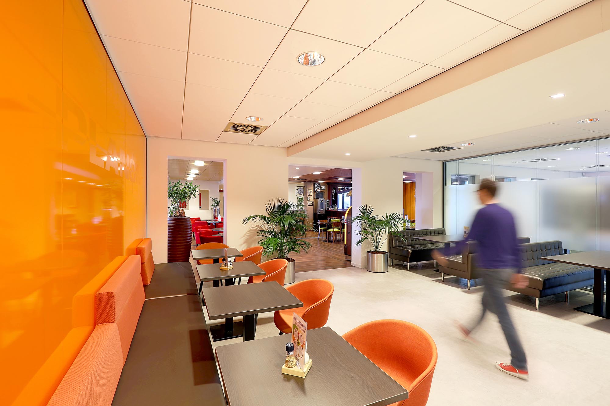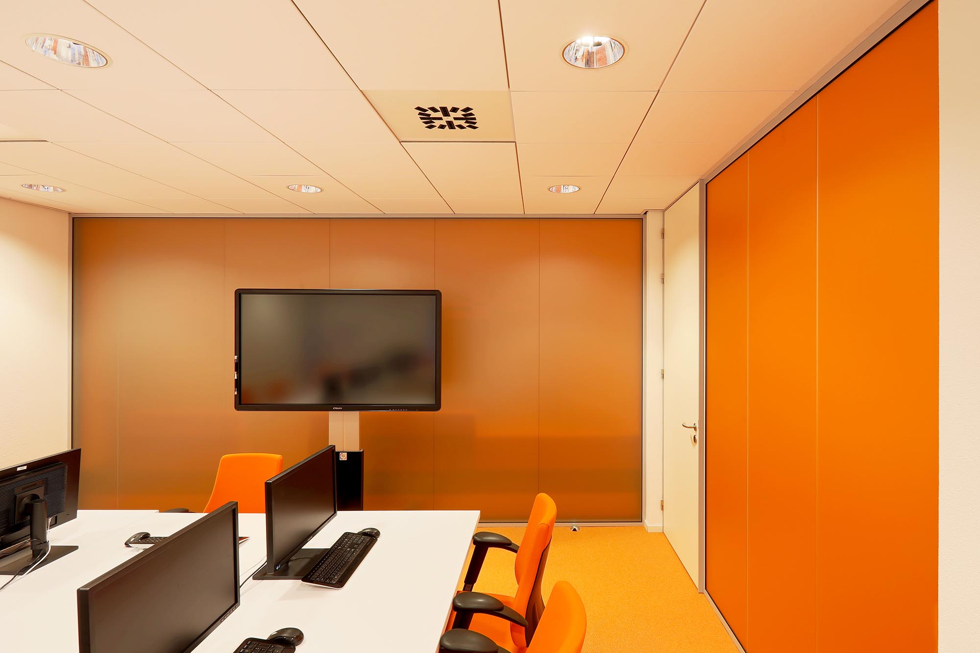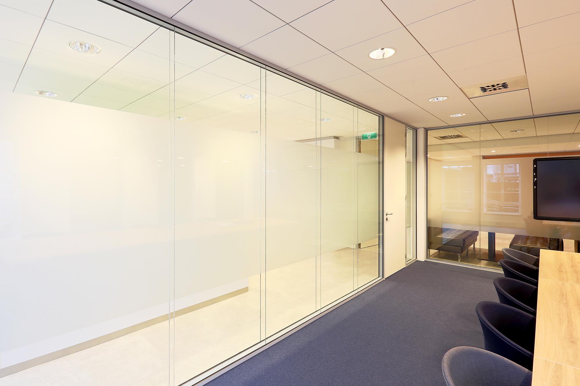 Voor de cursusruimten en boardroom zijn zeer speciale glazen systeemwanden toegepast. Onze TWIN wand heeft met haar dubbele glaspanelen een hoge geluidwerendheid van Rw=50 dB.